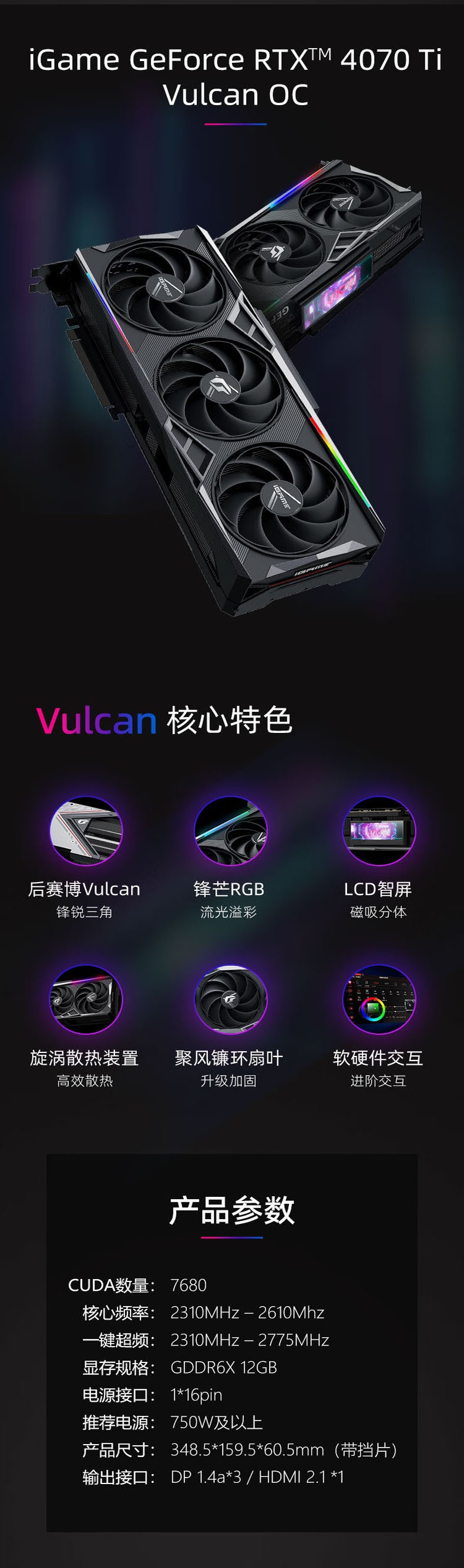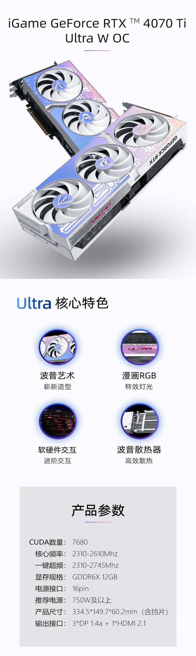다채로운 RTX 4070Ti Ultra Fire God 브랜드의 새로운 e-스포츠 게임 데스크톱 컴퓨터 독립 디스플레이에 적용 가능