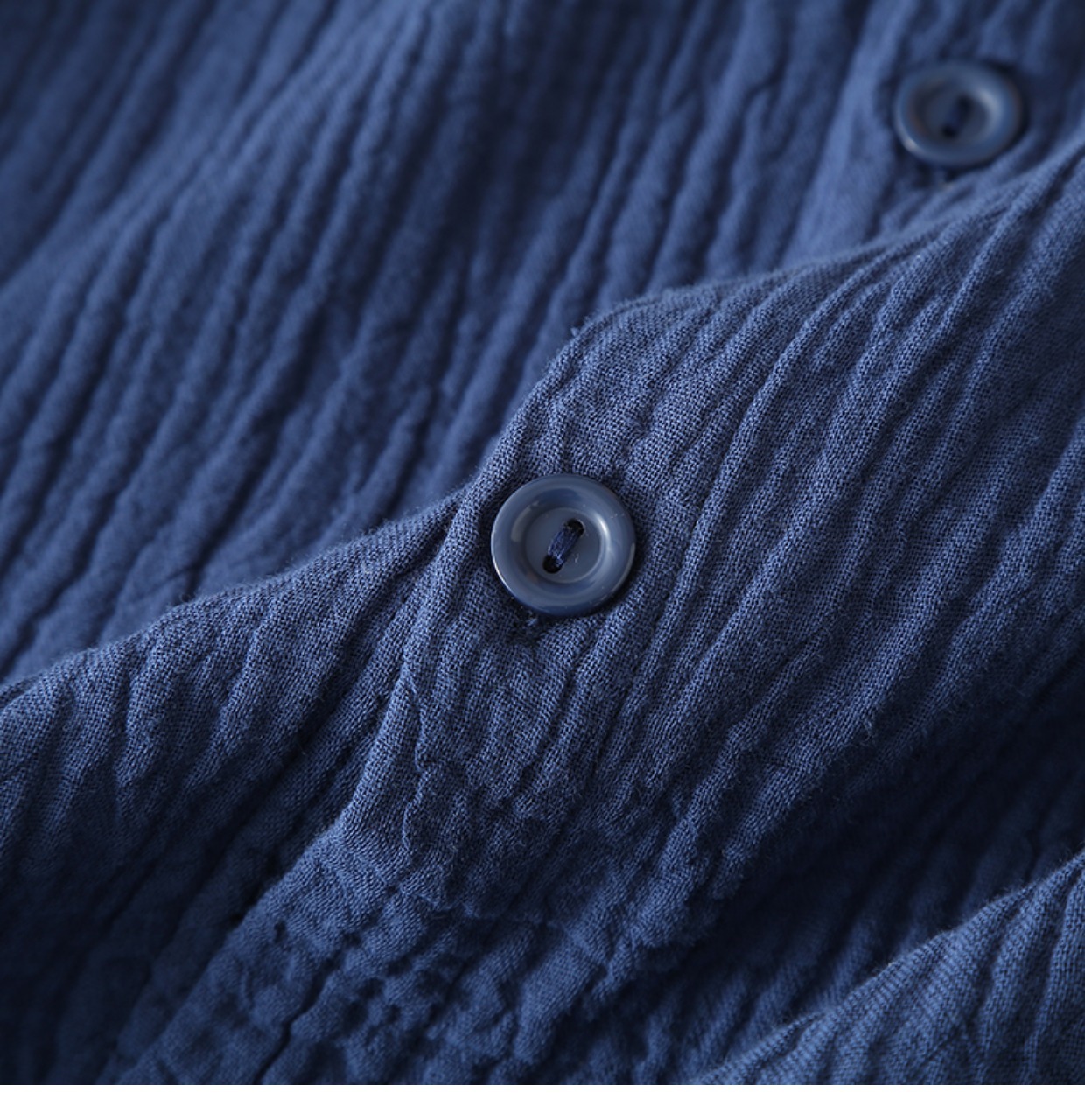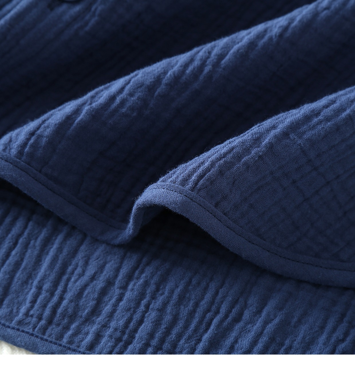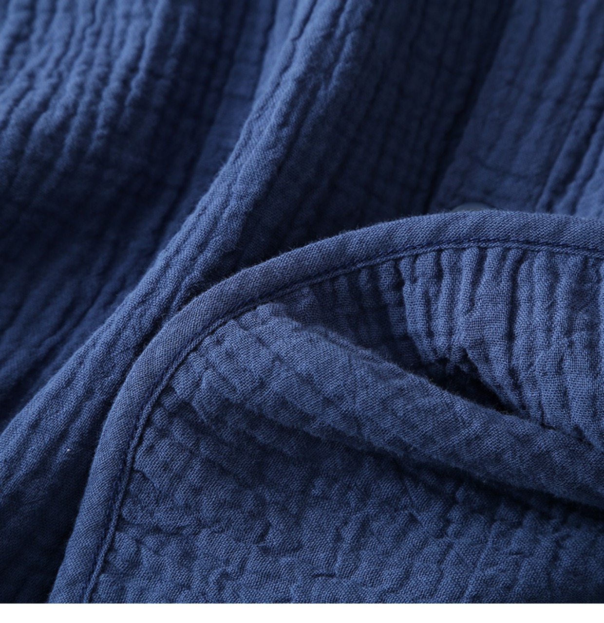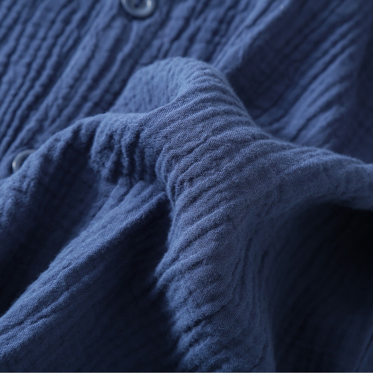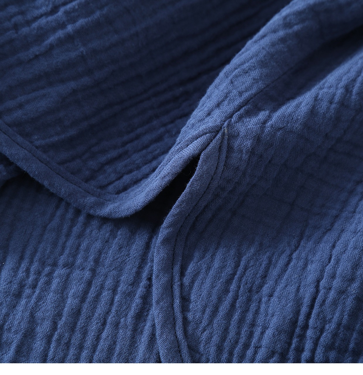 남자의 얇은 여름 순면 가정 옷 세트 거즈 반팔 바지 잠옷 간단한 일본 격자 무늬 플러스 사이즈