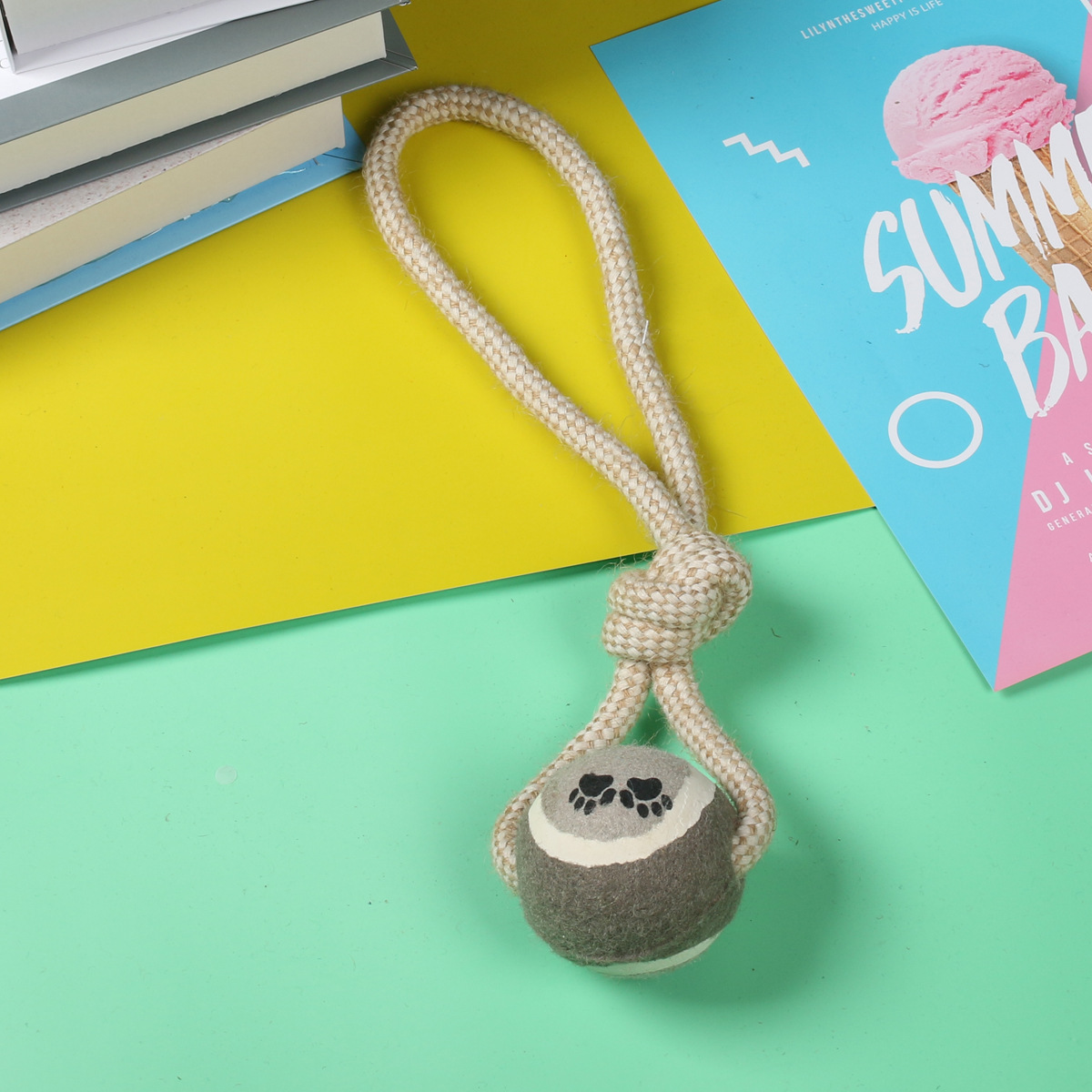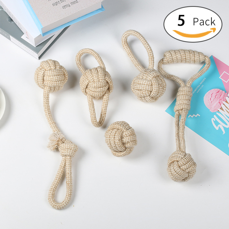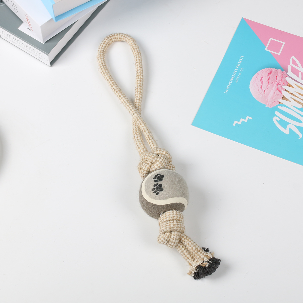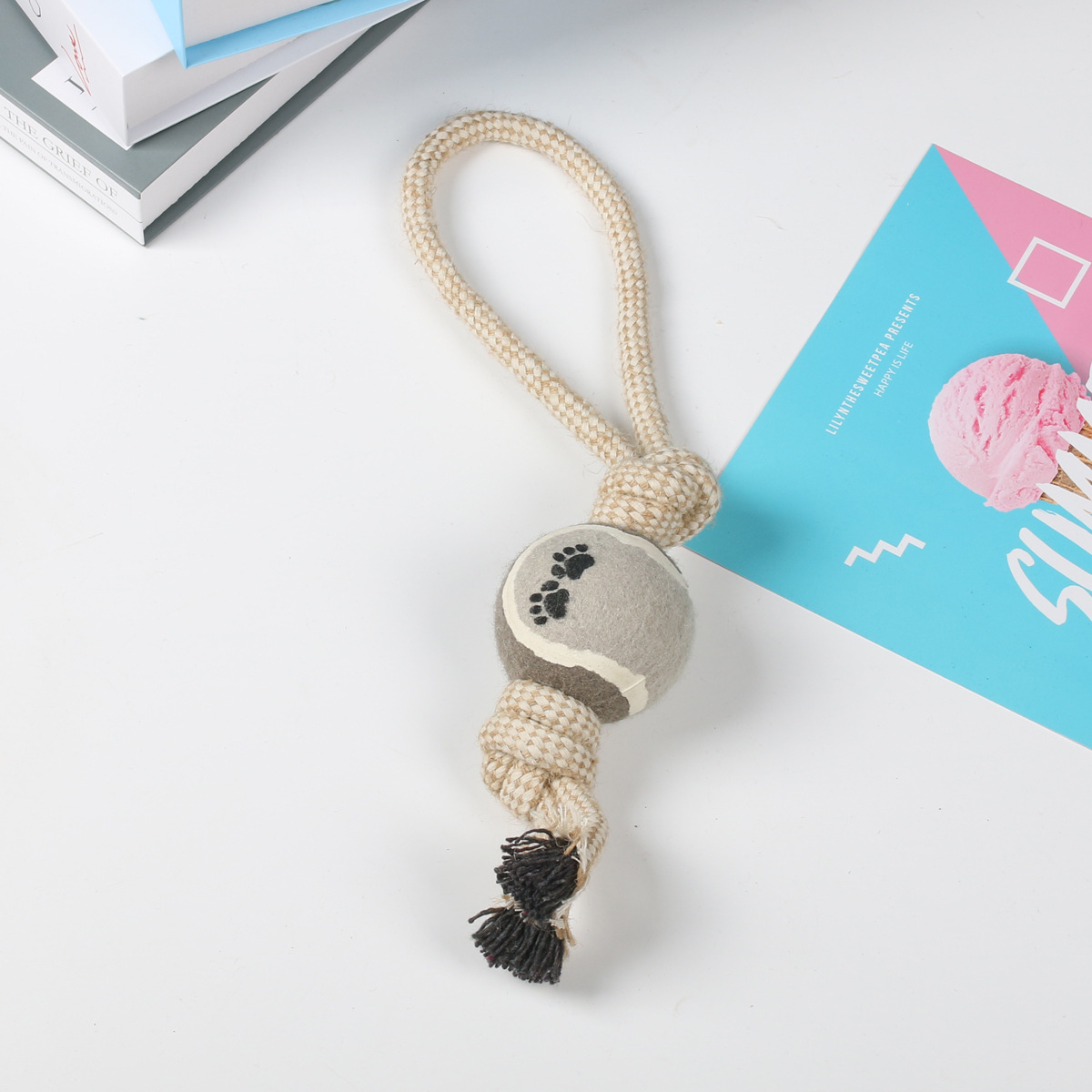 국경을 넘는 애완동물 장난감 제조업체 도매 대마 면 로프 테니스 공 휴대용 강아지 장난감 세트 치아갈이용 강아지 로프 매듭 공