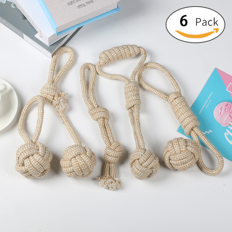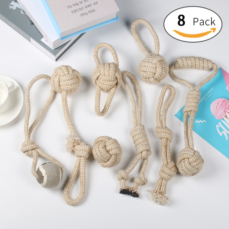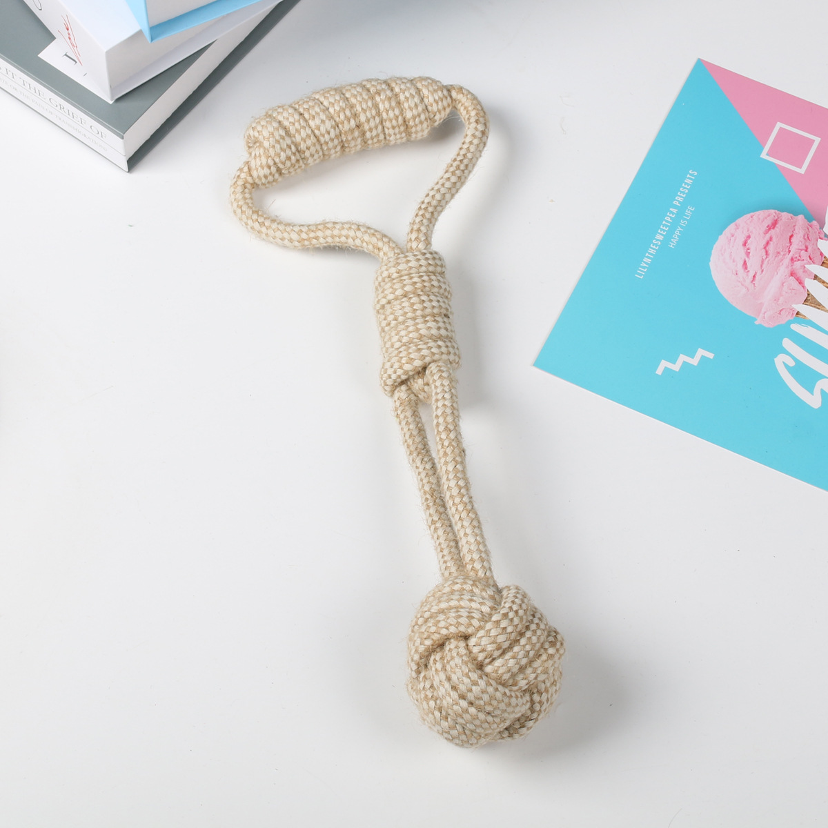 국경을 넘는 애완동물 장난감 제조업체 도매 대마 면 로프 테니스 공 휴대용 강아지 장난감 세트 치아갈이용 강아지 로프 매듭 공스토어 가기