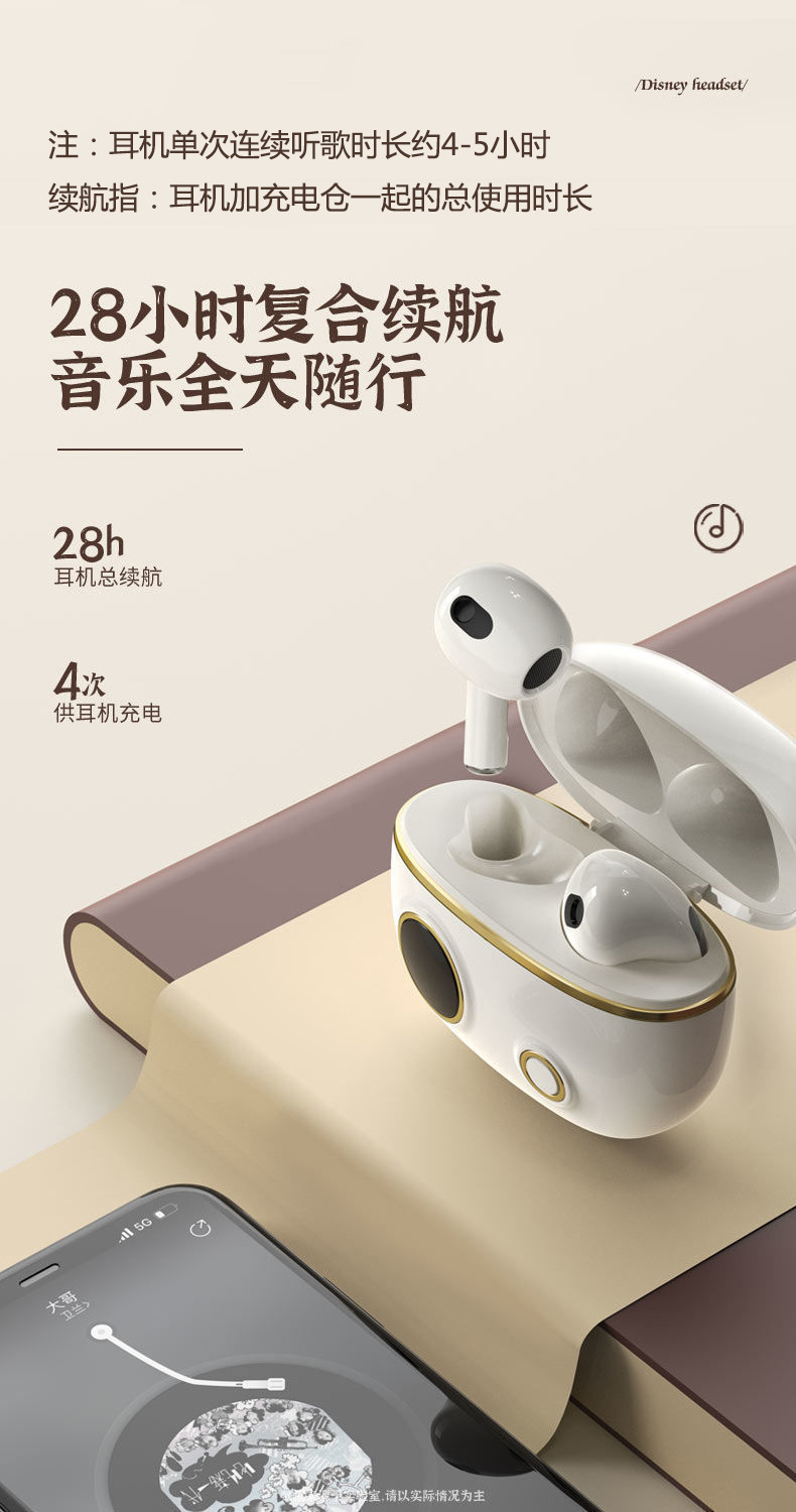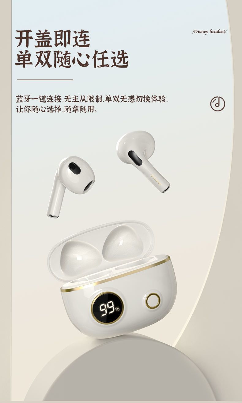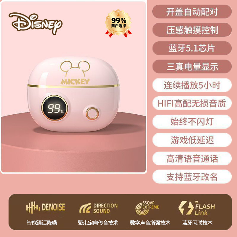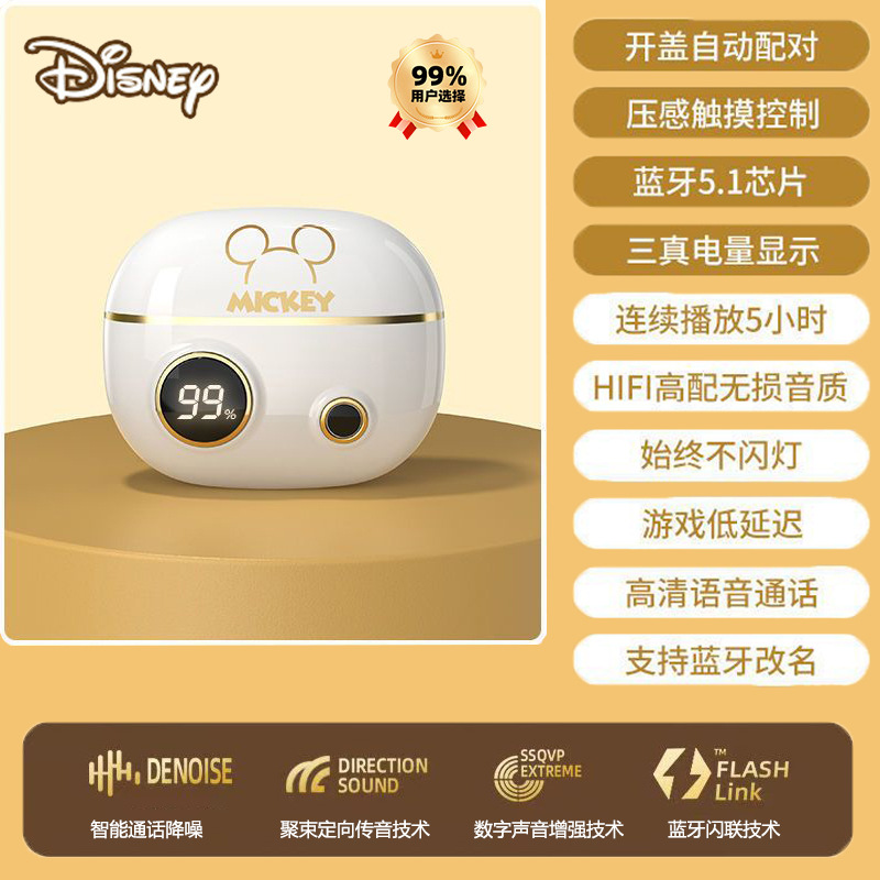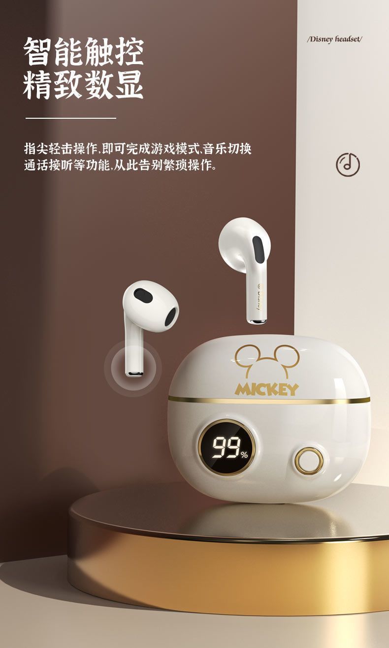 정품 디즈니 공동 브랜드 무선 블루투스 이어폰, 인이어 터치 컨트롤, 호환 가능, 플랫폼 무관, 안드로이드 이어폰, 재고 있음