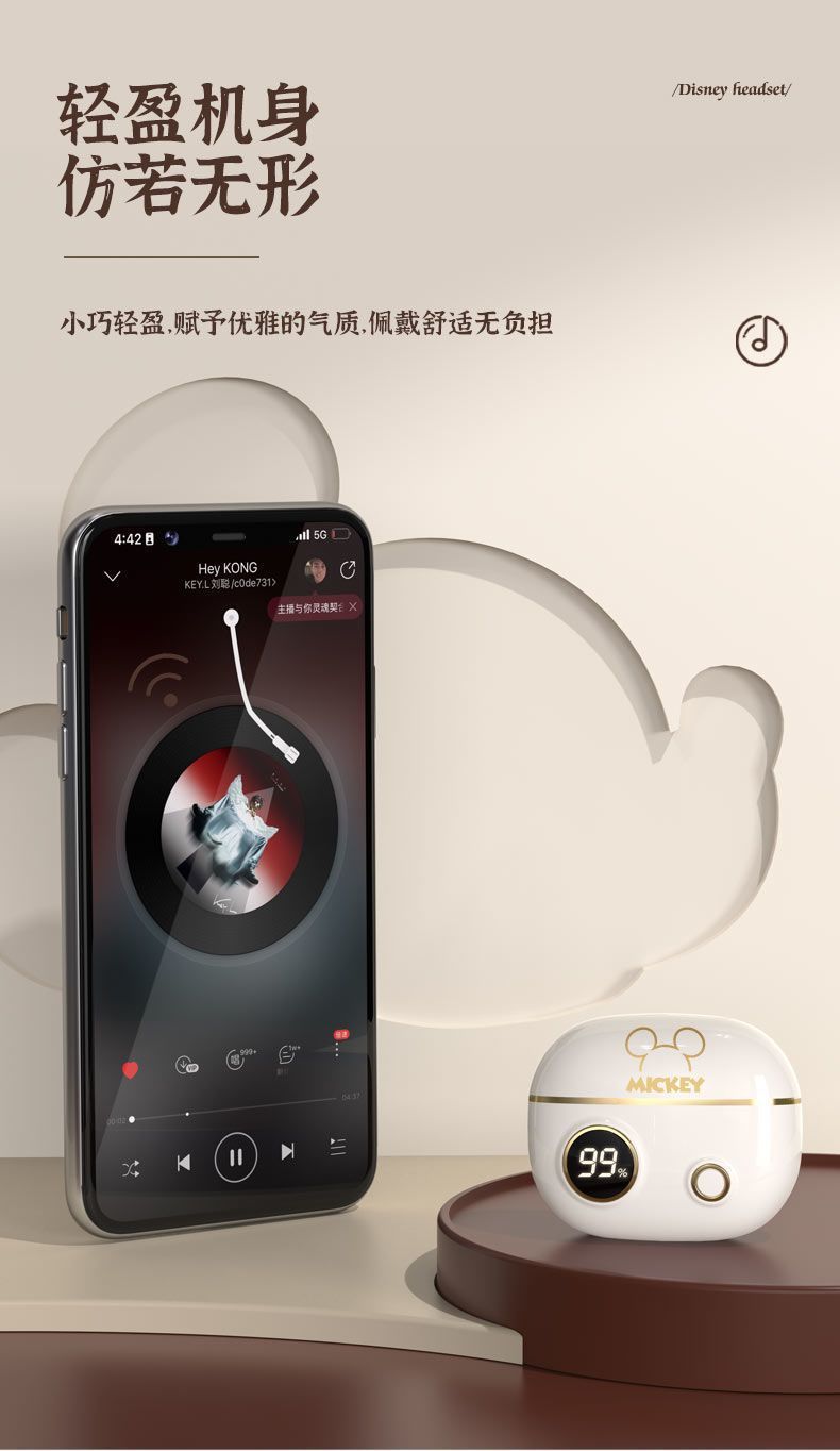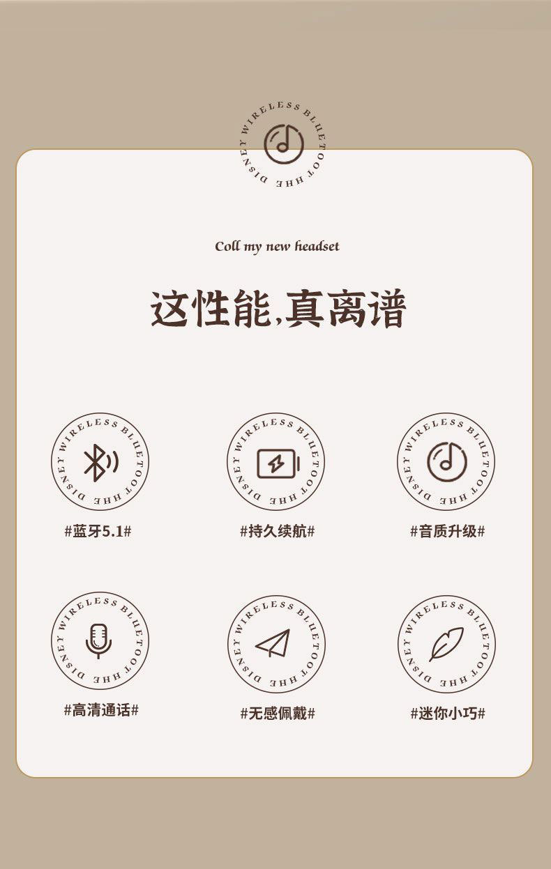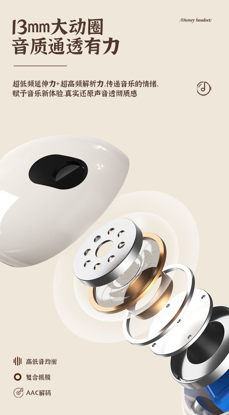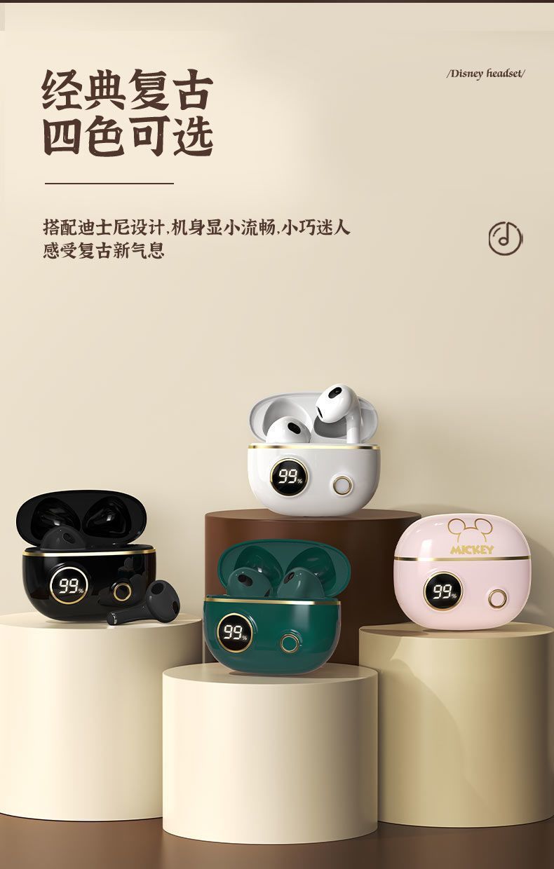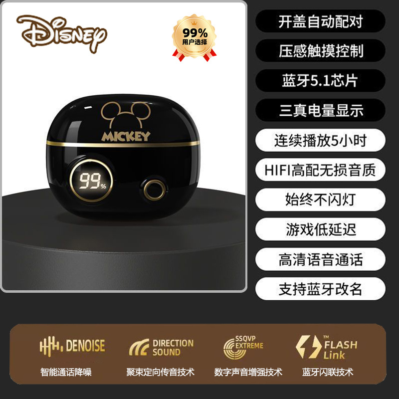 정품 디즈니 공동 브랜드 무선 블루투스 이어폰, 인이어 터치 컨트롤, 호환 가능, 플랫폼 무관, 안드로이드 이어폰, 재고 있음
