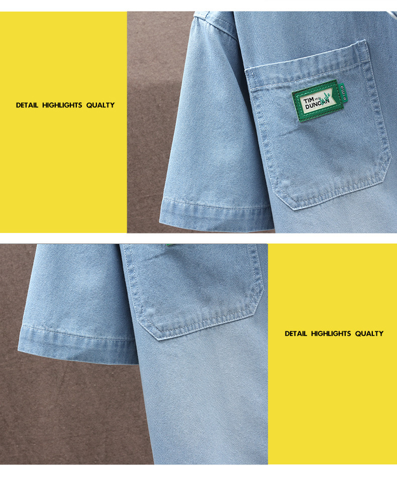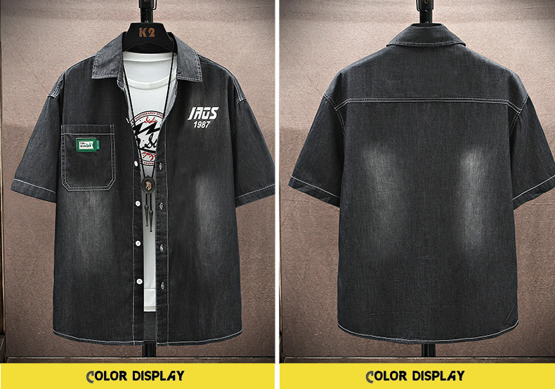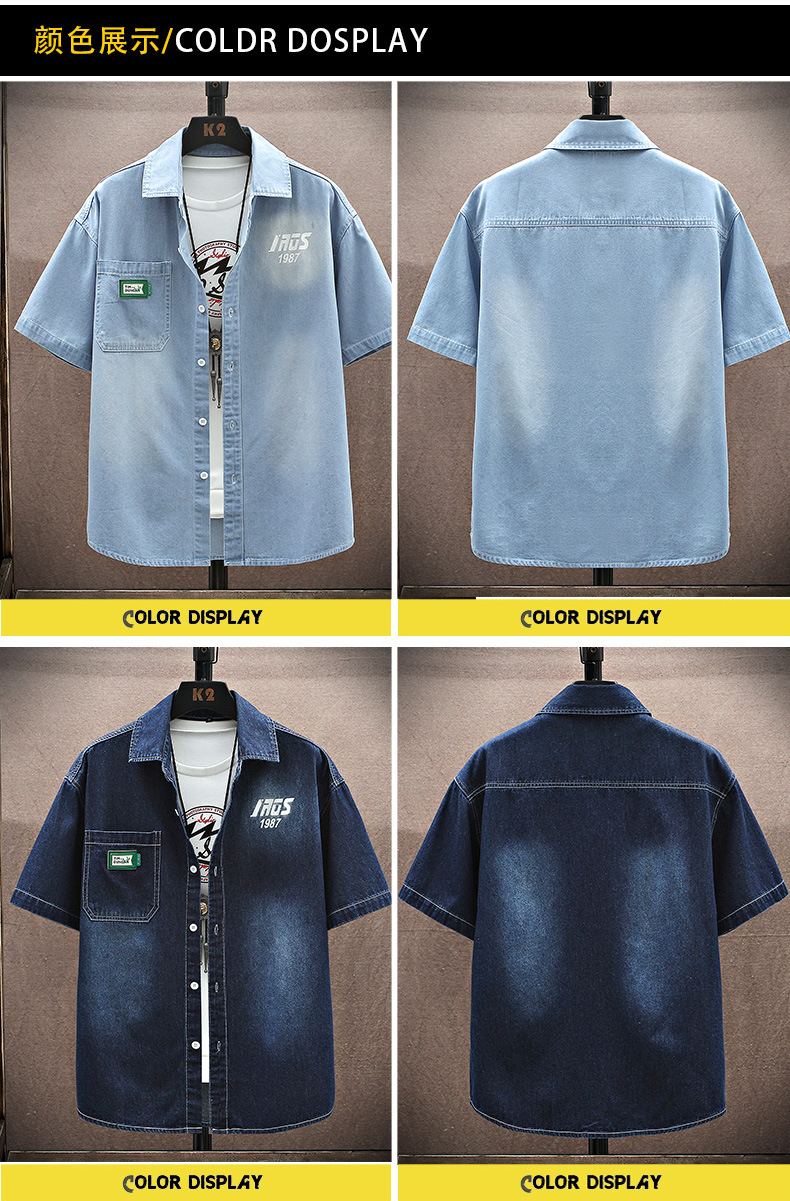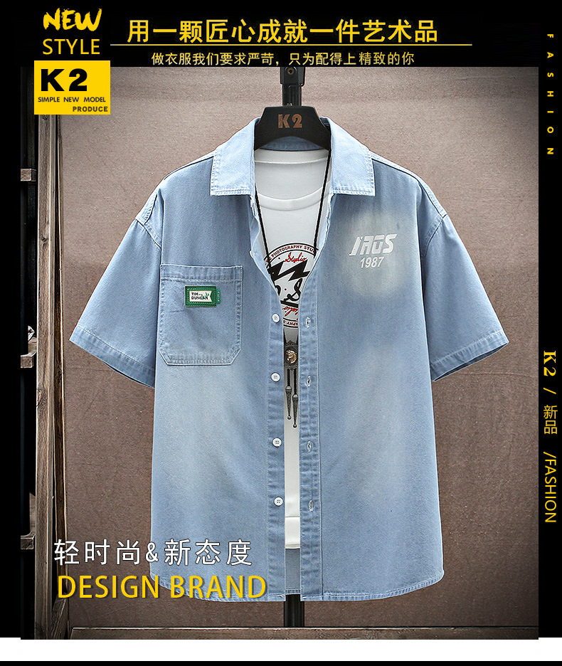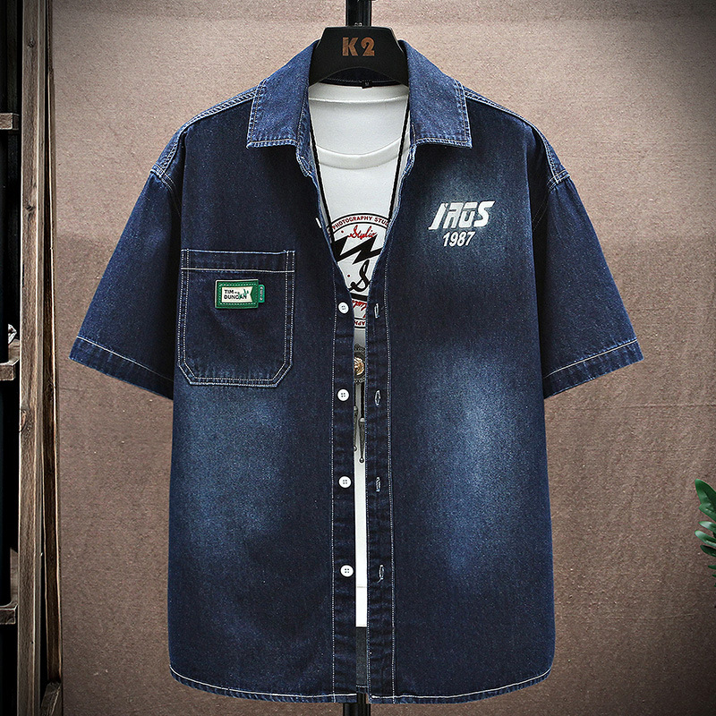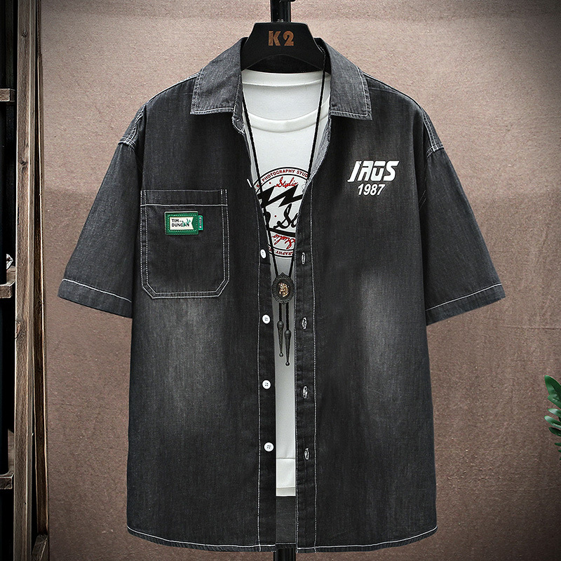 남성용 대외 무역 데님 반팔 셔츠 2025 여름 청소년 남성용 탑 재킷 ins 일본식 다용도 셔츠 남성용스토어 가기