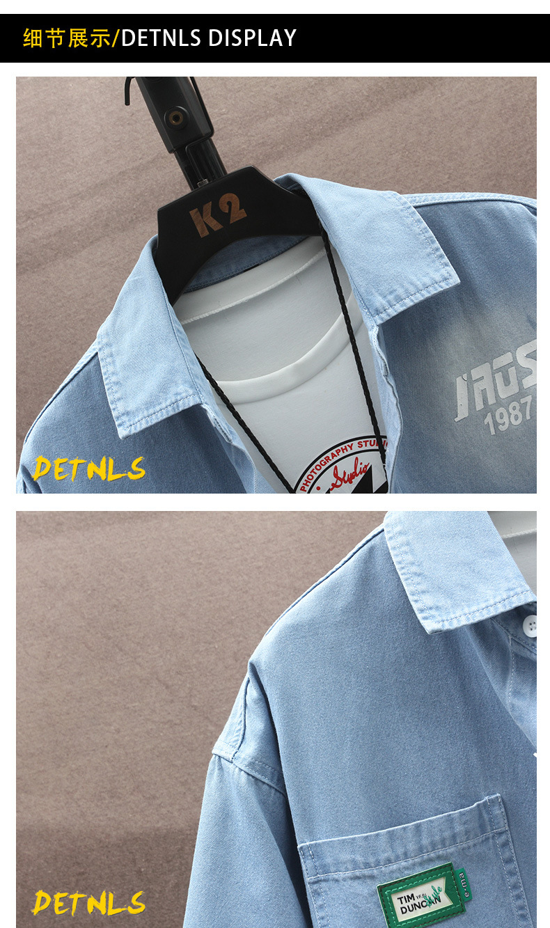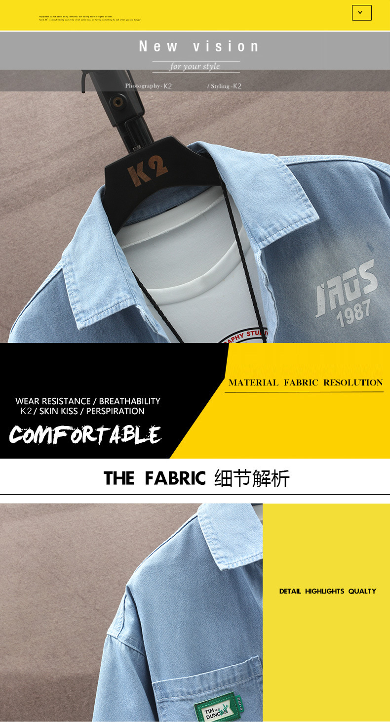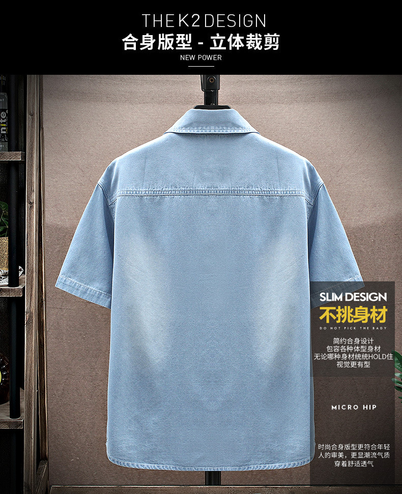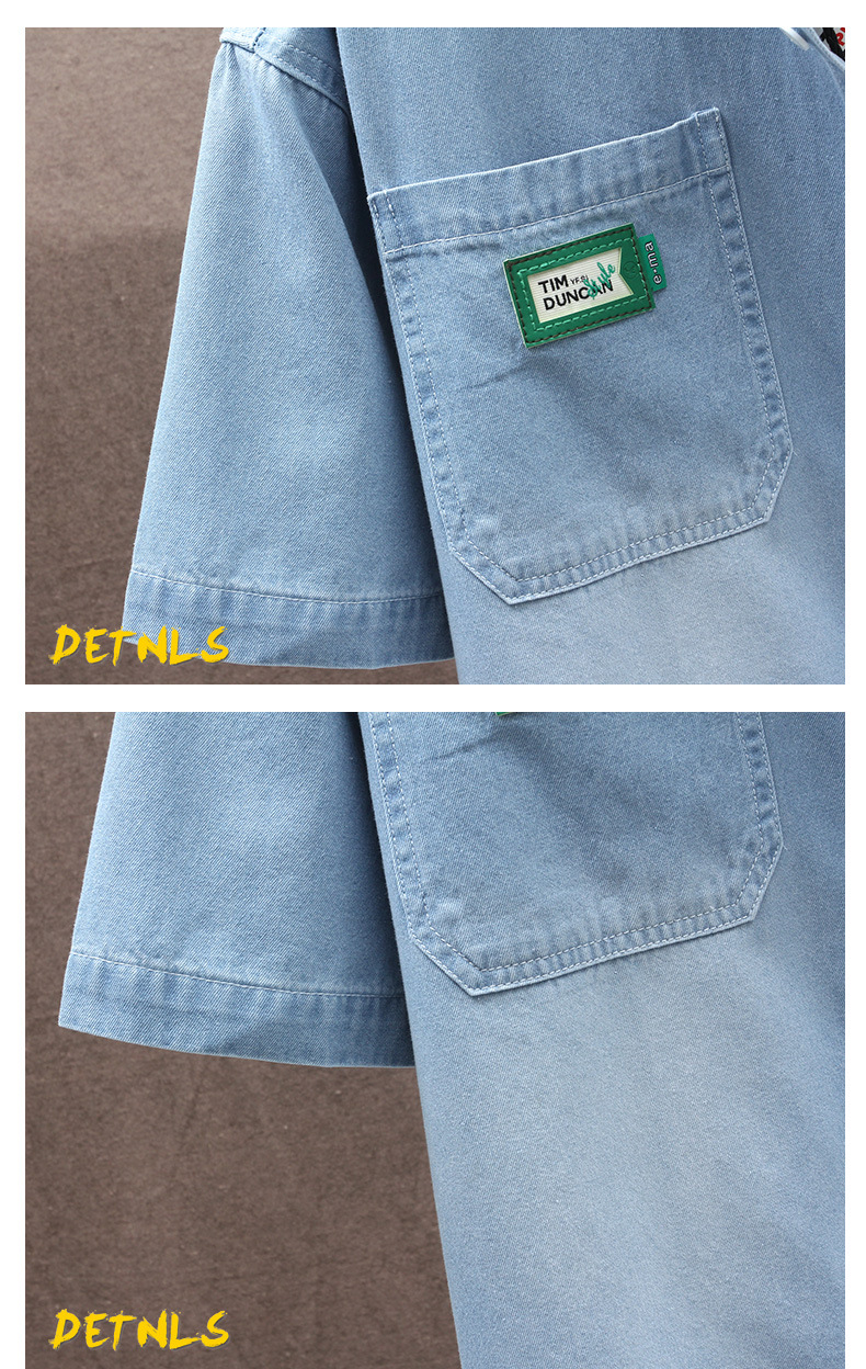 남성용 대외 무역 데님 반팔 셔츠 2025 여름 청소년 남성용 탑 재킷 ins 일본식 다용도 셔츠 남성용스토어 가기