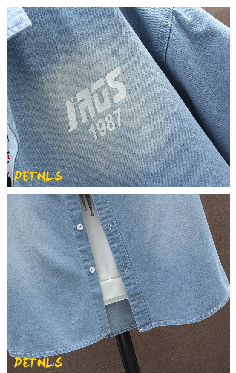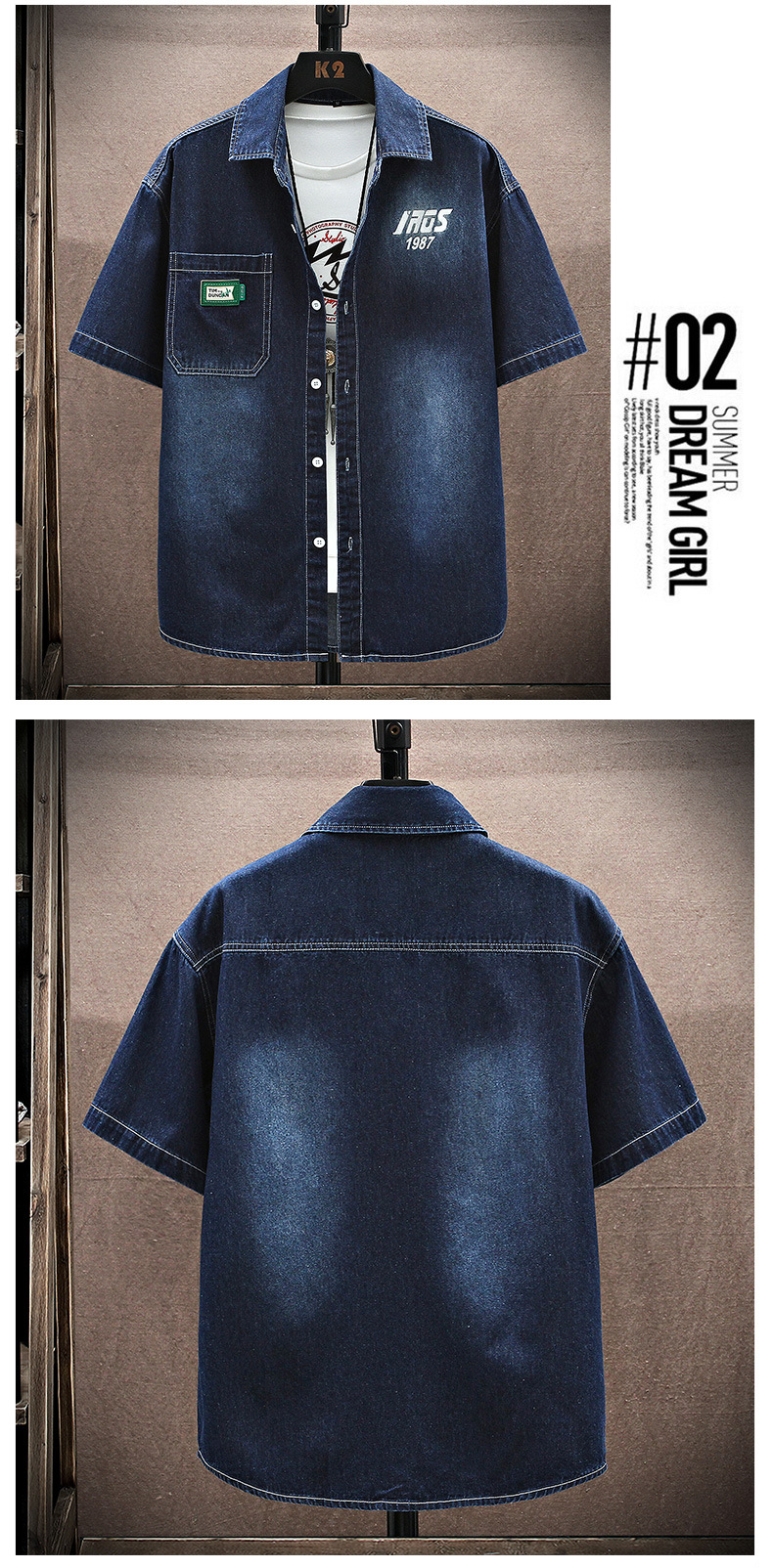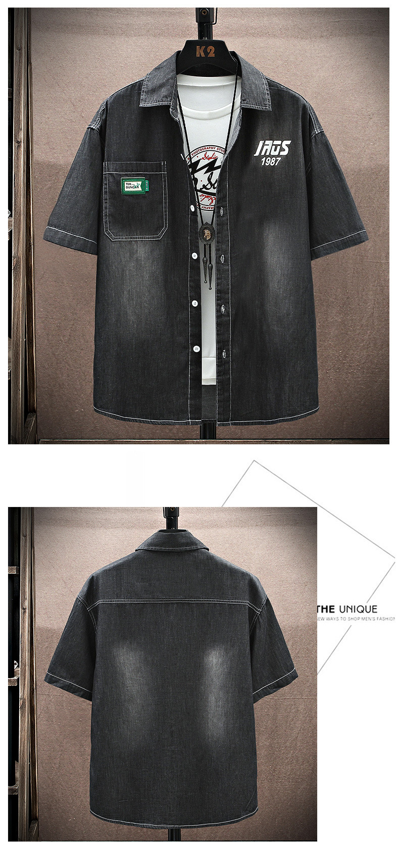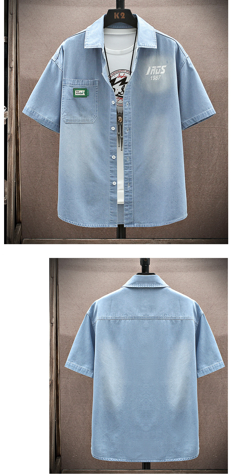 남성용 대외 무역 데님 반팔 셔츠 2025 여름 청소년 남성용 탑 재킷 ins 일본식 다용도 셔츠 남성용스토어 가기