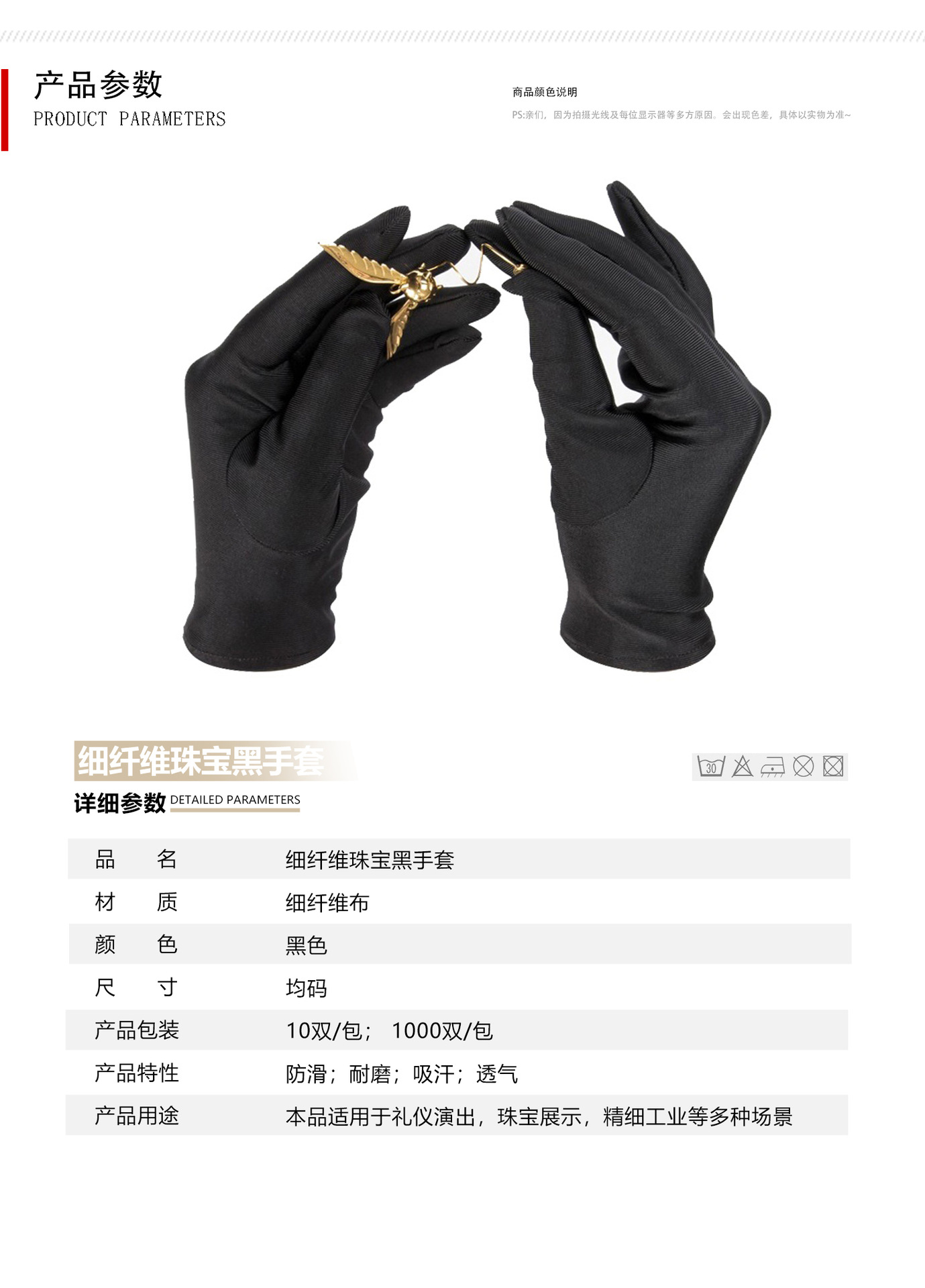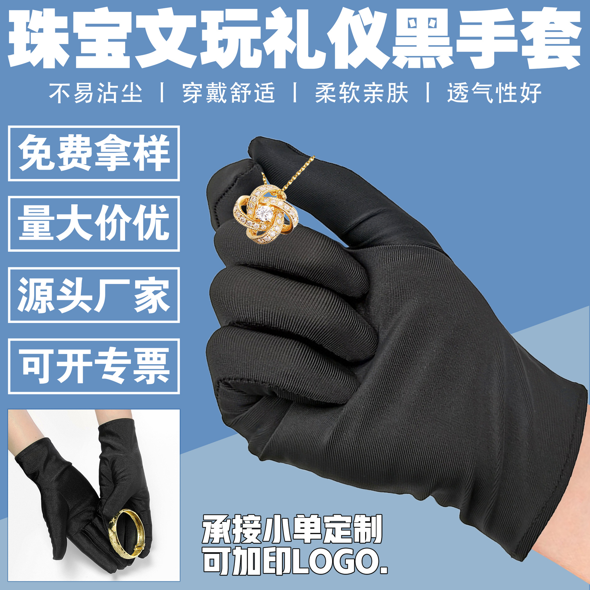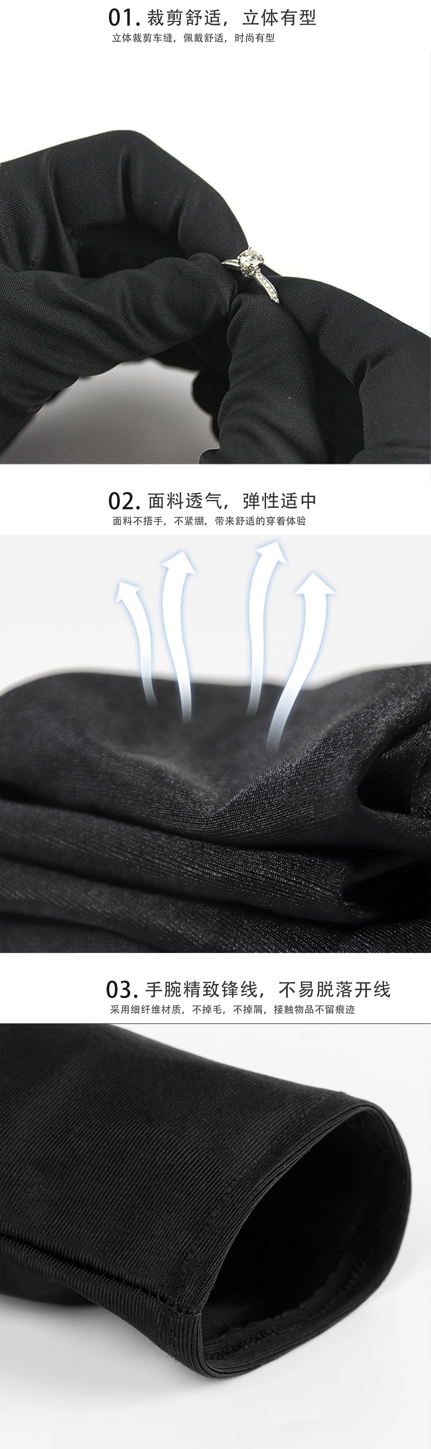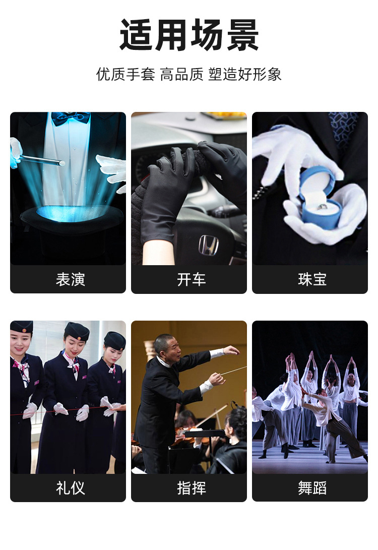 공장 직판 도매 검정 예식 장갑 변색 없음 실크처럼 부드러운 섬유 보석 보호 성인용스토어 가기