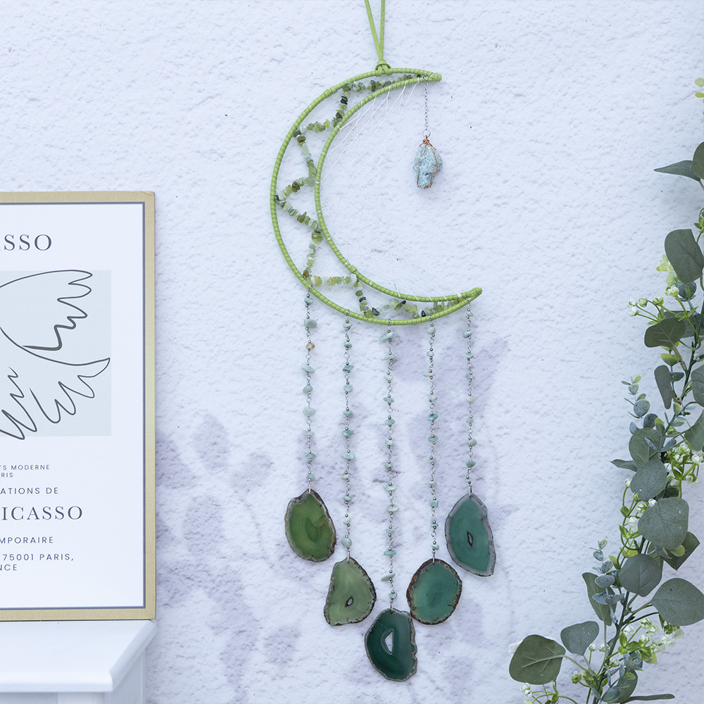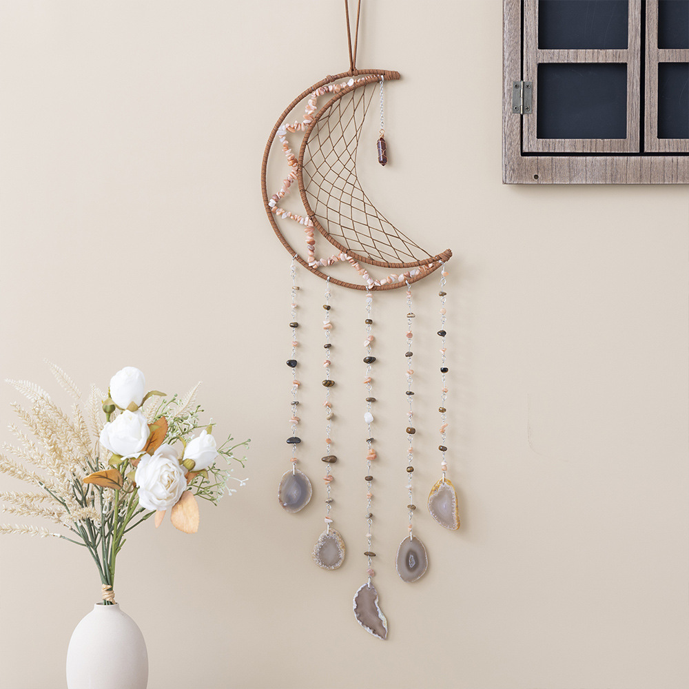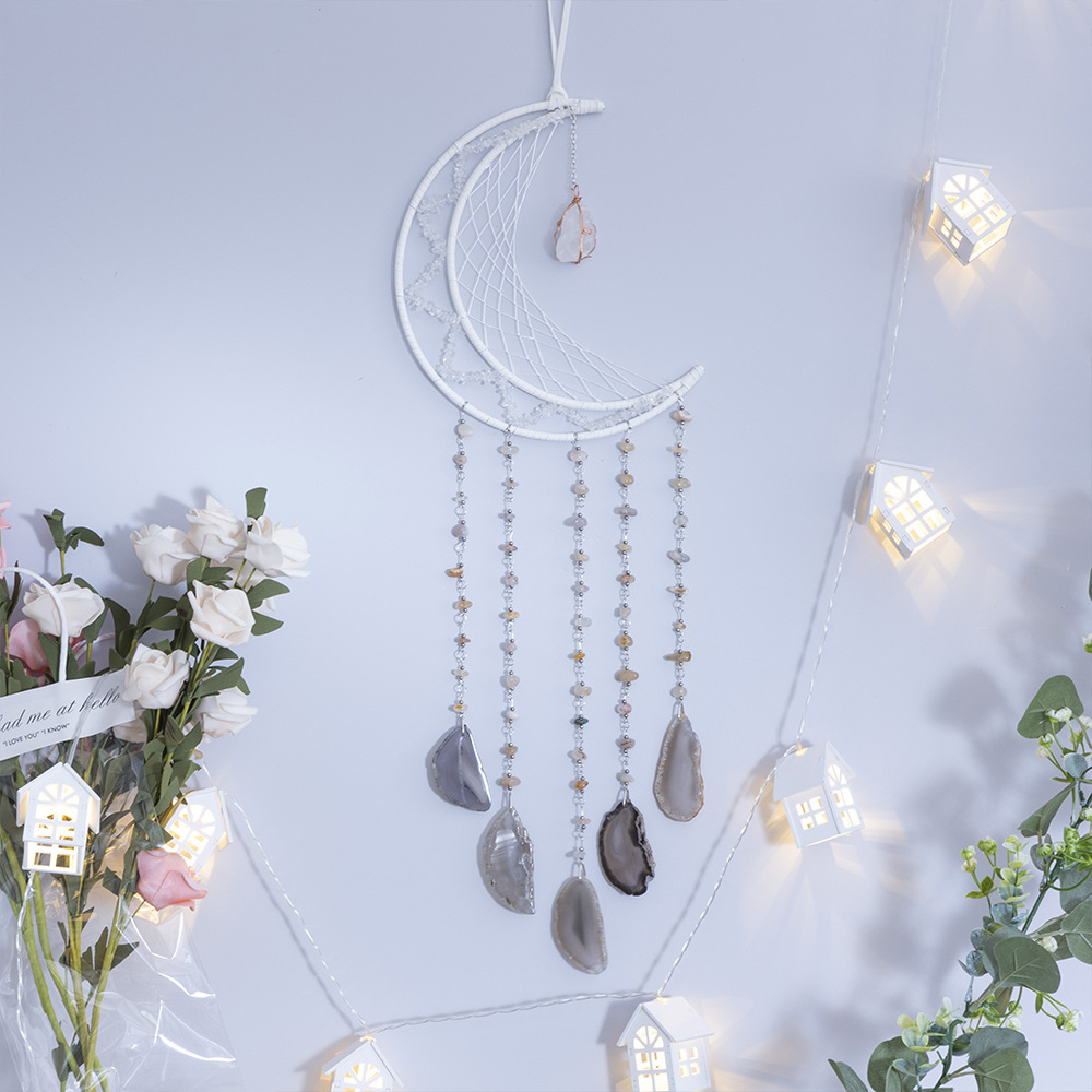 소스 제조업체 아마존 천연석 분말 동글 마노 조각 바람 차임 보석 선물 공유 그물 가죽 로프