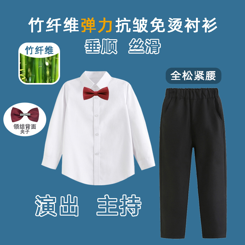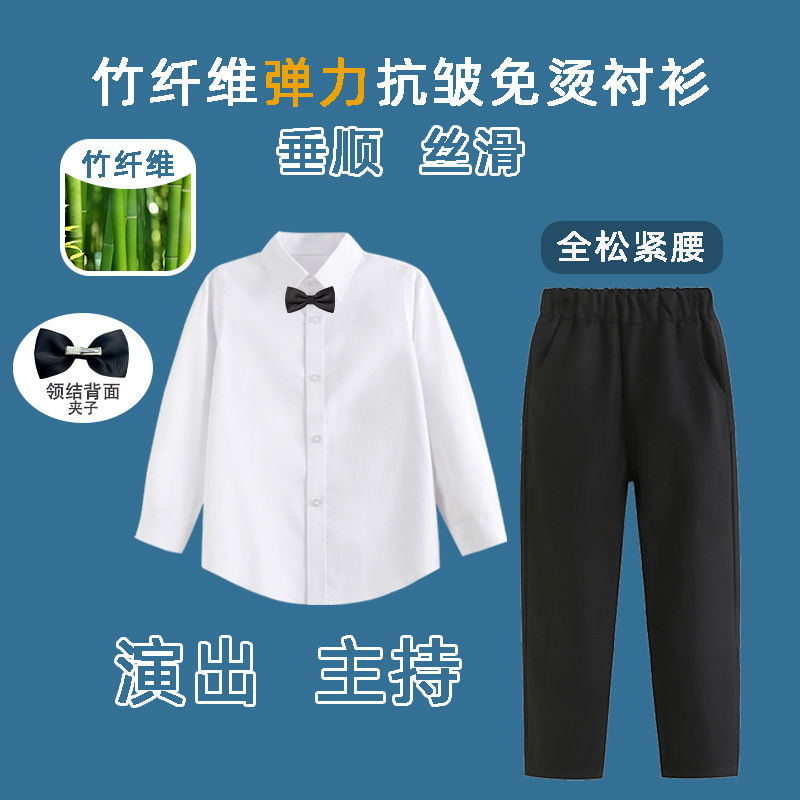 • 더블 라인 대나무 섬유 긴팔 셔츠 + TR 바지 블랙 + 블랙 나비 넥타이
