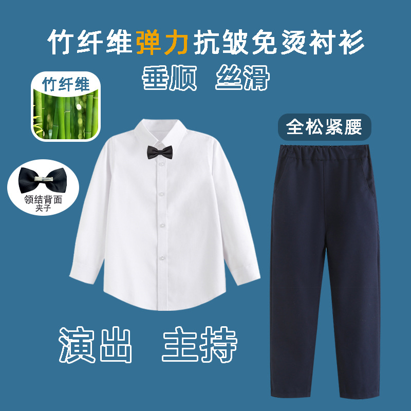 • 더블 라인 대나무 섬유 긴팔 셔츠 + TR 바지 네이비 블루 + 블랙 나비 넥타이
