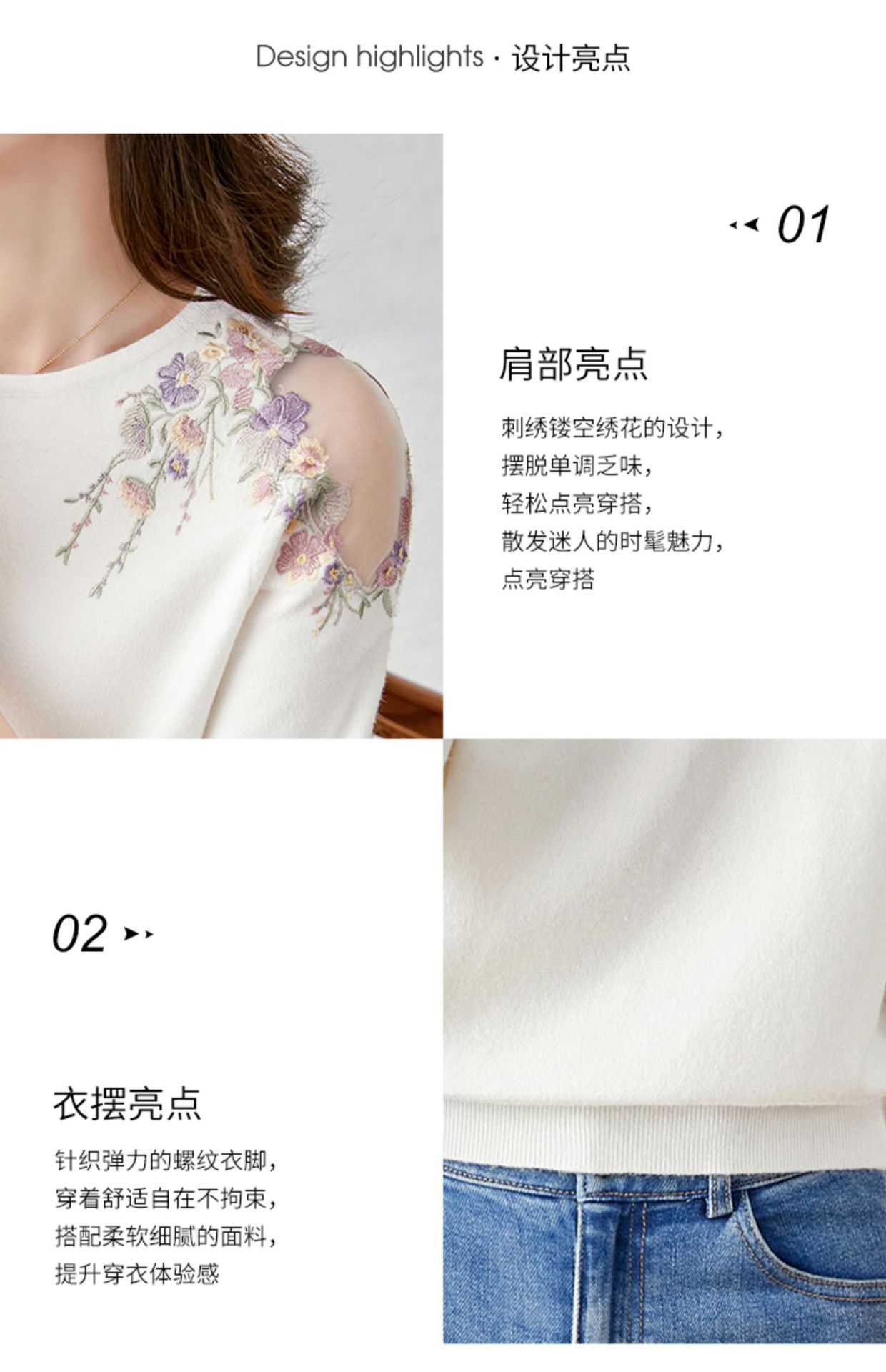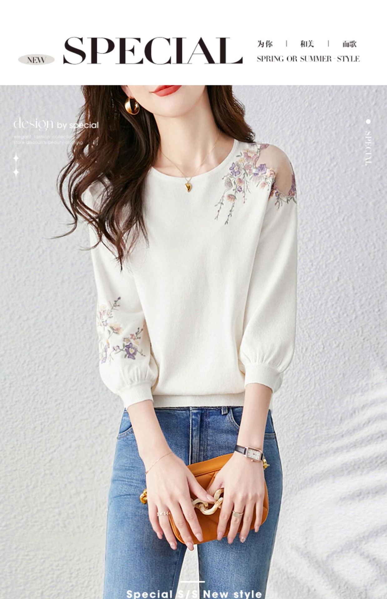 중공 스웨터 2023 봄 새로운 달콤한 신선한 꽃 슬리밍 라운드 넥 풀오버 여성 하프 슬리브 탑스토어 가기