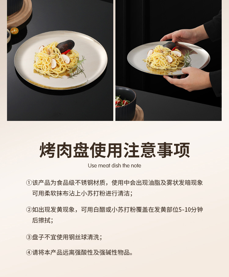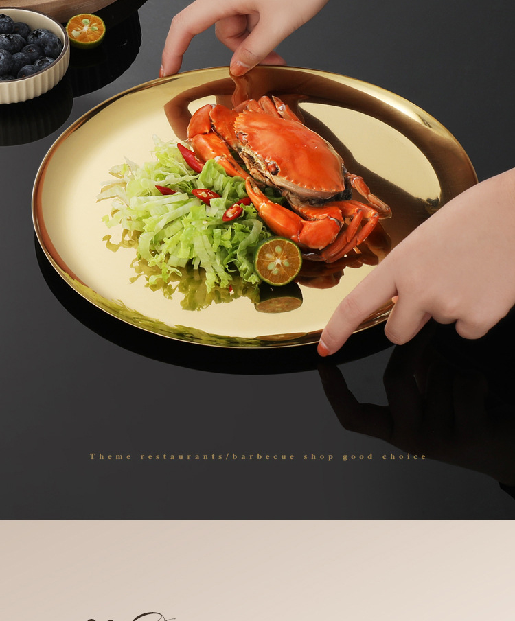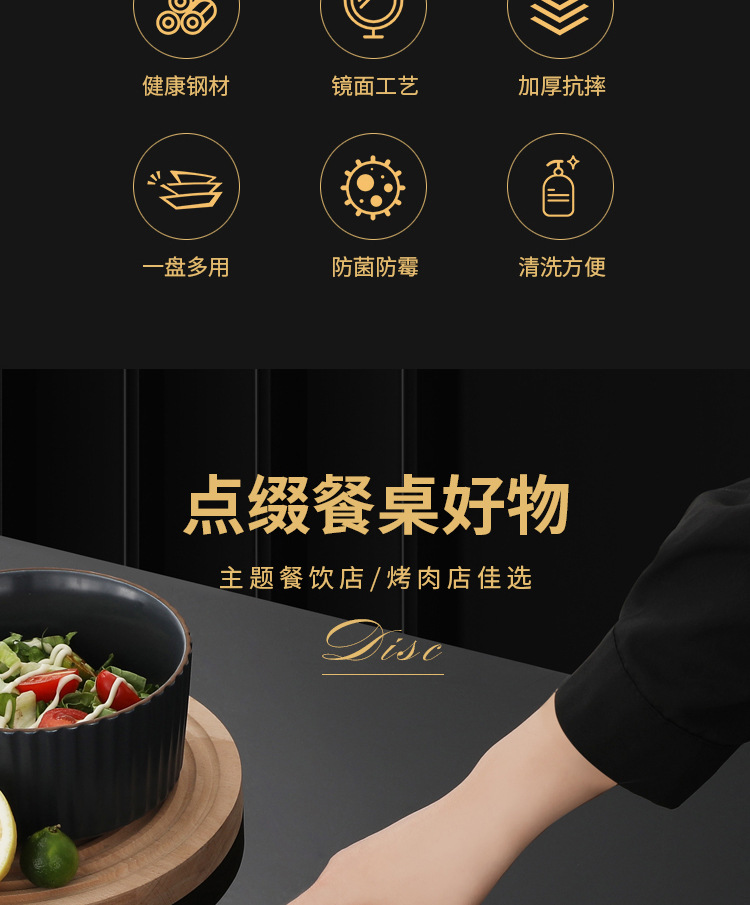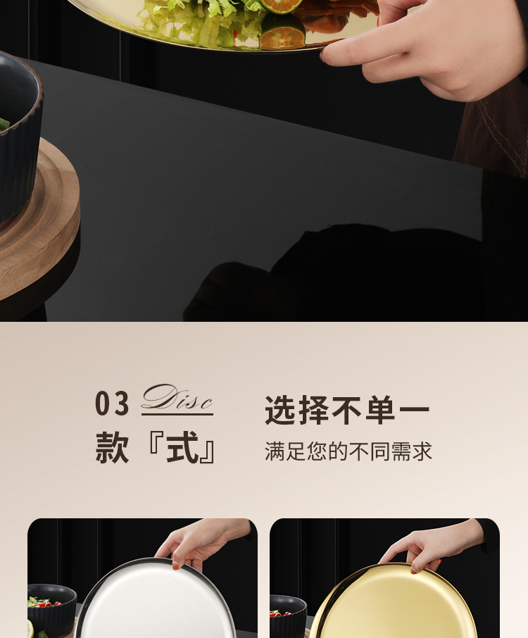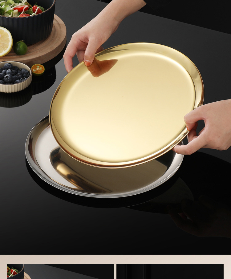 304 한국식 바베큐 접시 스테인레스 스틸 디스크 골든 트레이 과일 접시 케이크 접시 뼈 접시 접시 가벼운 플랫 플레이트스토어 가기