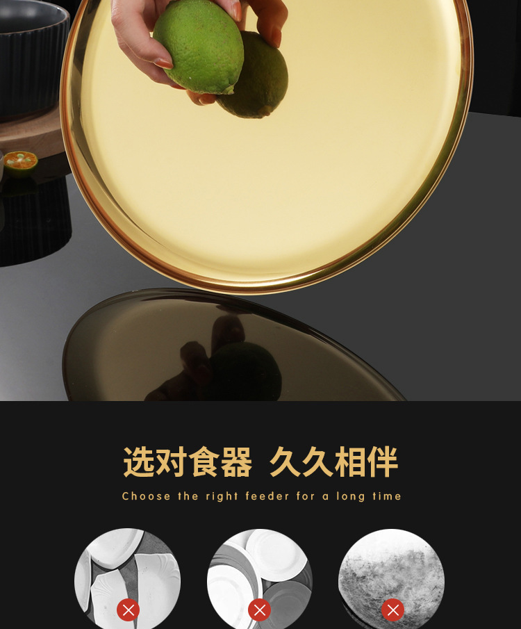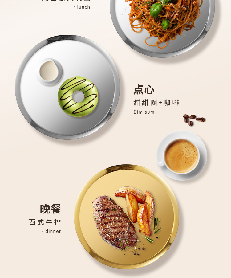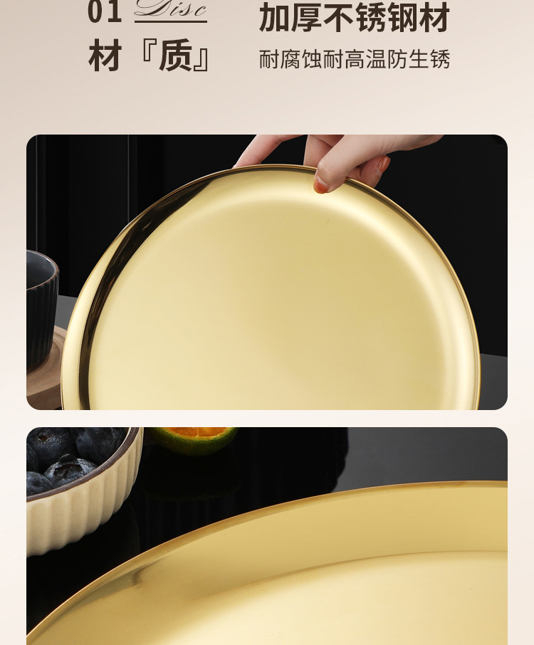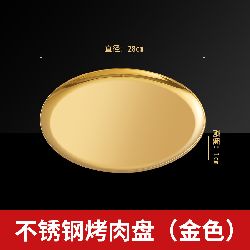 304 한국식 바베큐 접시 스테인레스 스틸 디스크 골든 트레이 과일 접시 케이크 접시 뼈 접시 접시 가벼운 플랫 플레이트
