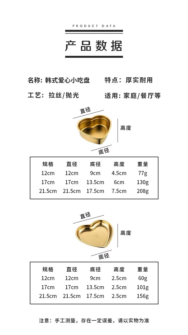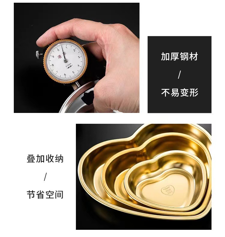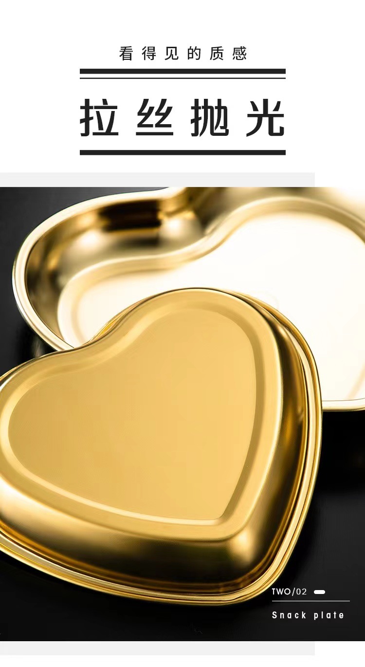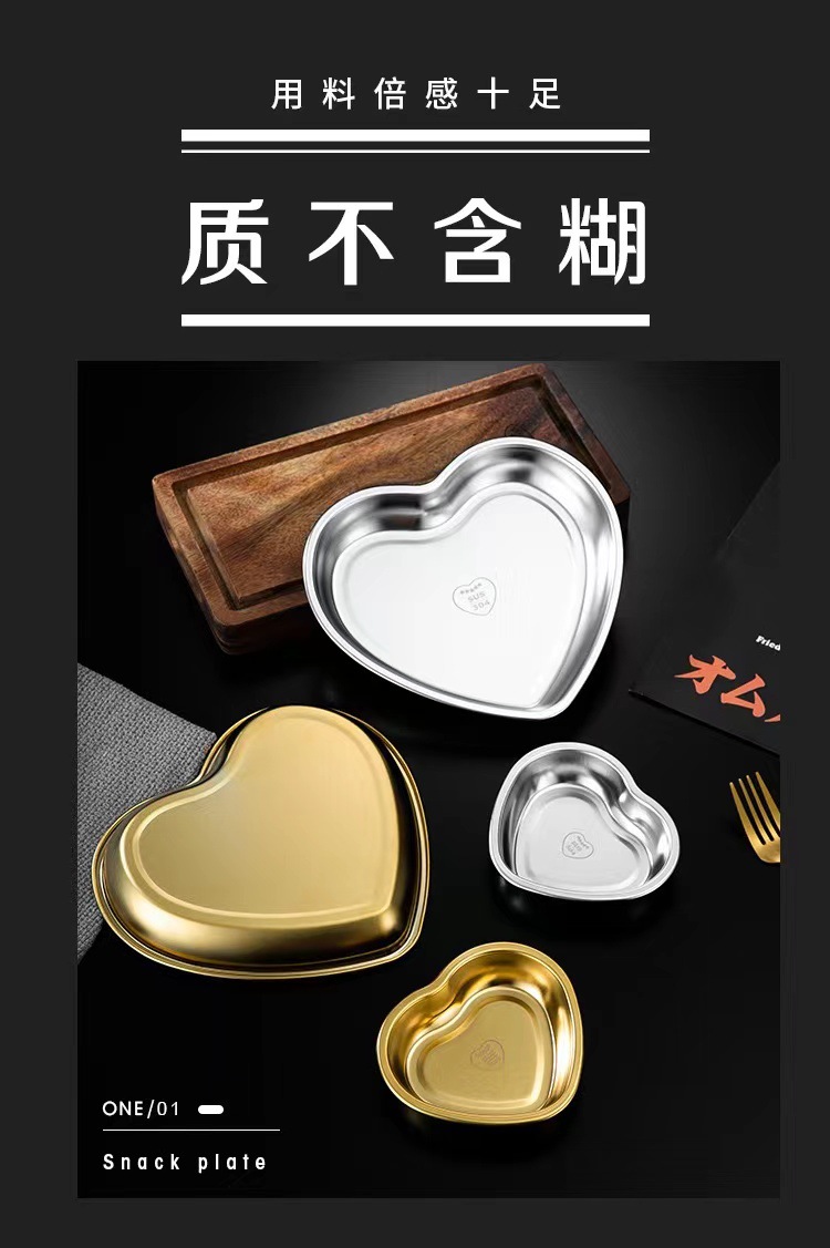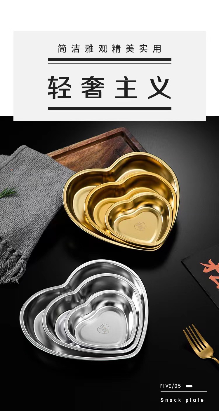 304 스테인레스 스틸 한국 사랑 하트 모양의 접시 수프 분지 스낵 플레이트 금속 디저트 스낵 과일 접시 크리에이티브 트레이