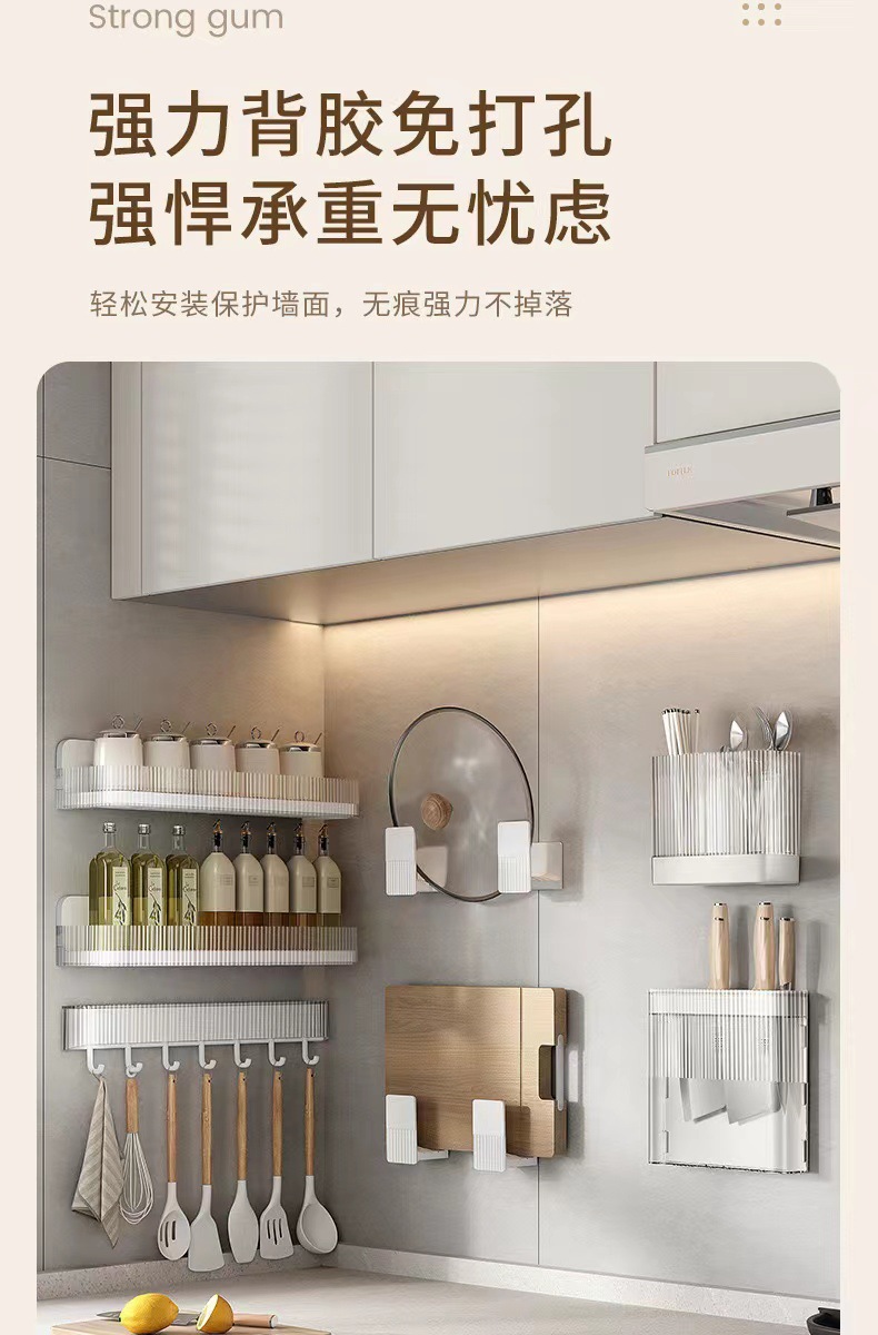 주방 수납 랙 펀치 프리 벽걸이 나이프 홀더 조미료 용품 Daquan 후크 젓가락 케이지 냄비 커버 랙 세트