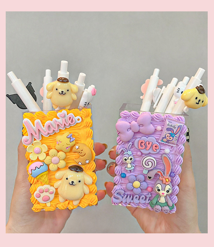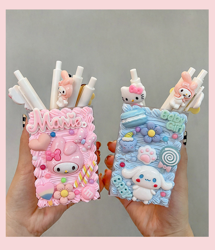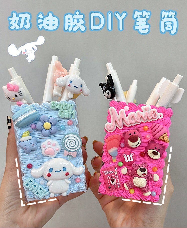 크림 젤 DIY 펜 홀더 학생 수제 재료 가방 수제 만화 보관함 귀여운 데스크탑 보관 배럴 장식품