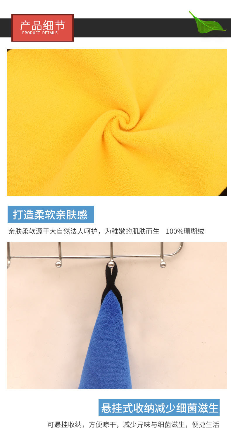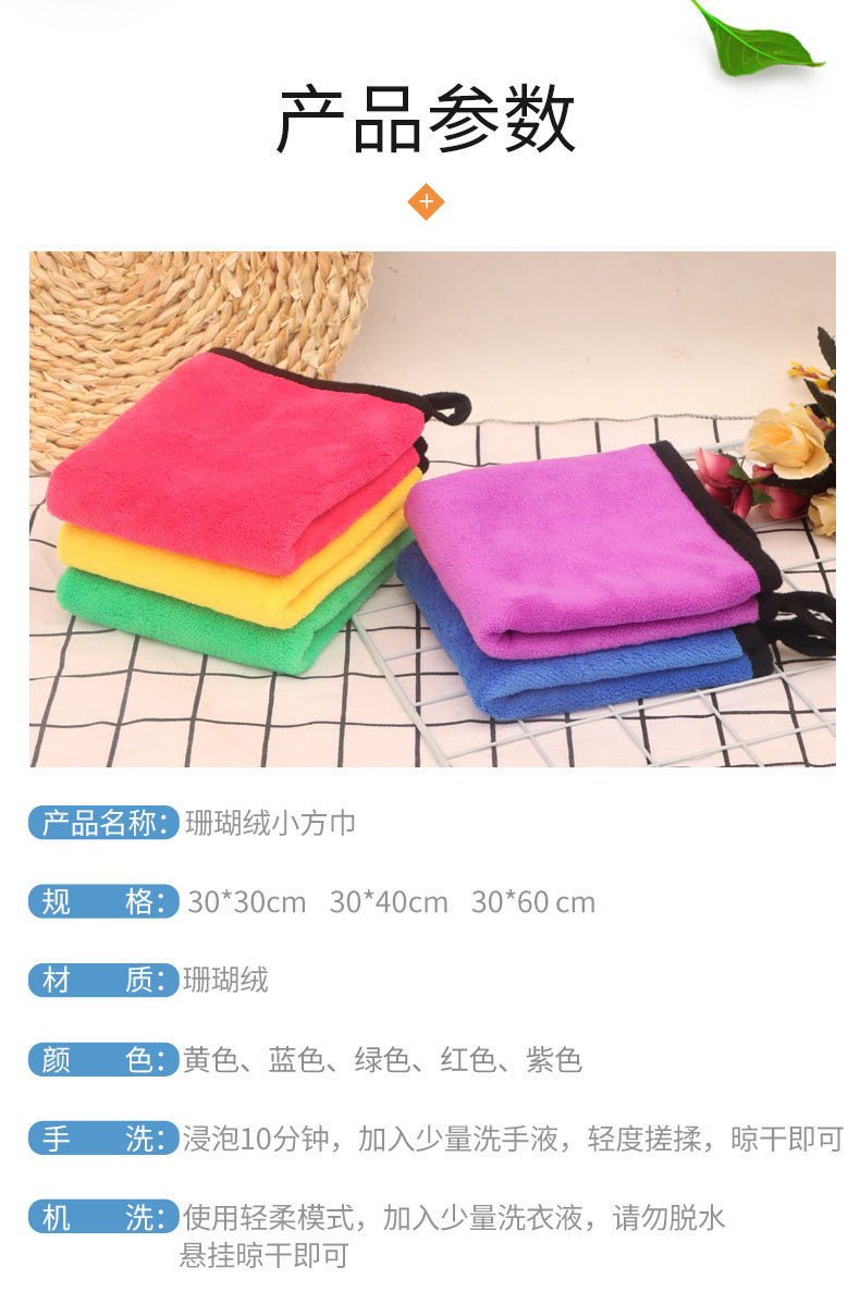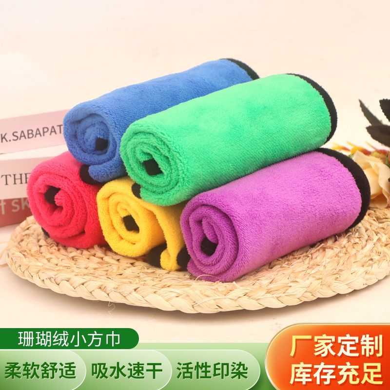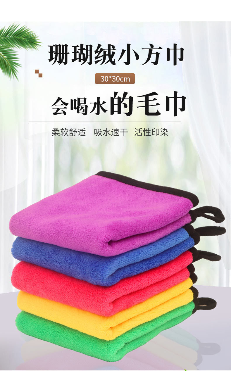 매달린 산호 양털 소형 사각 타월 도매 슈퍼마켓 청소 타월 보풀이없는 흡수성 주방 청소 천