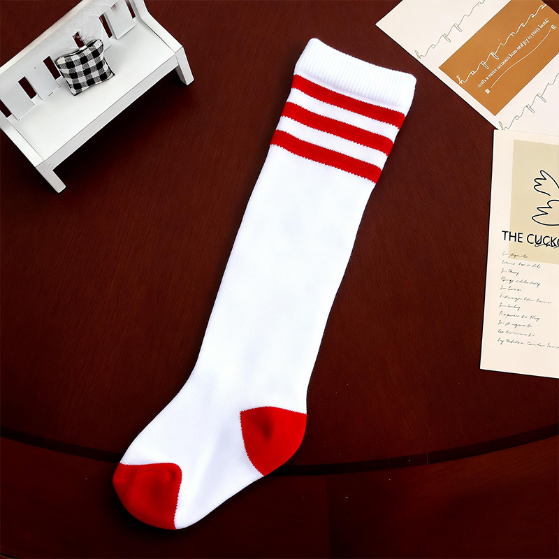 여름용 얇은 무릎 위까지 오는 아동 양말 0-3세 삼선 긴 양말 축구 양말 메쉬 아기 모기 방지 양말 트렌디