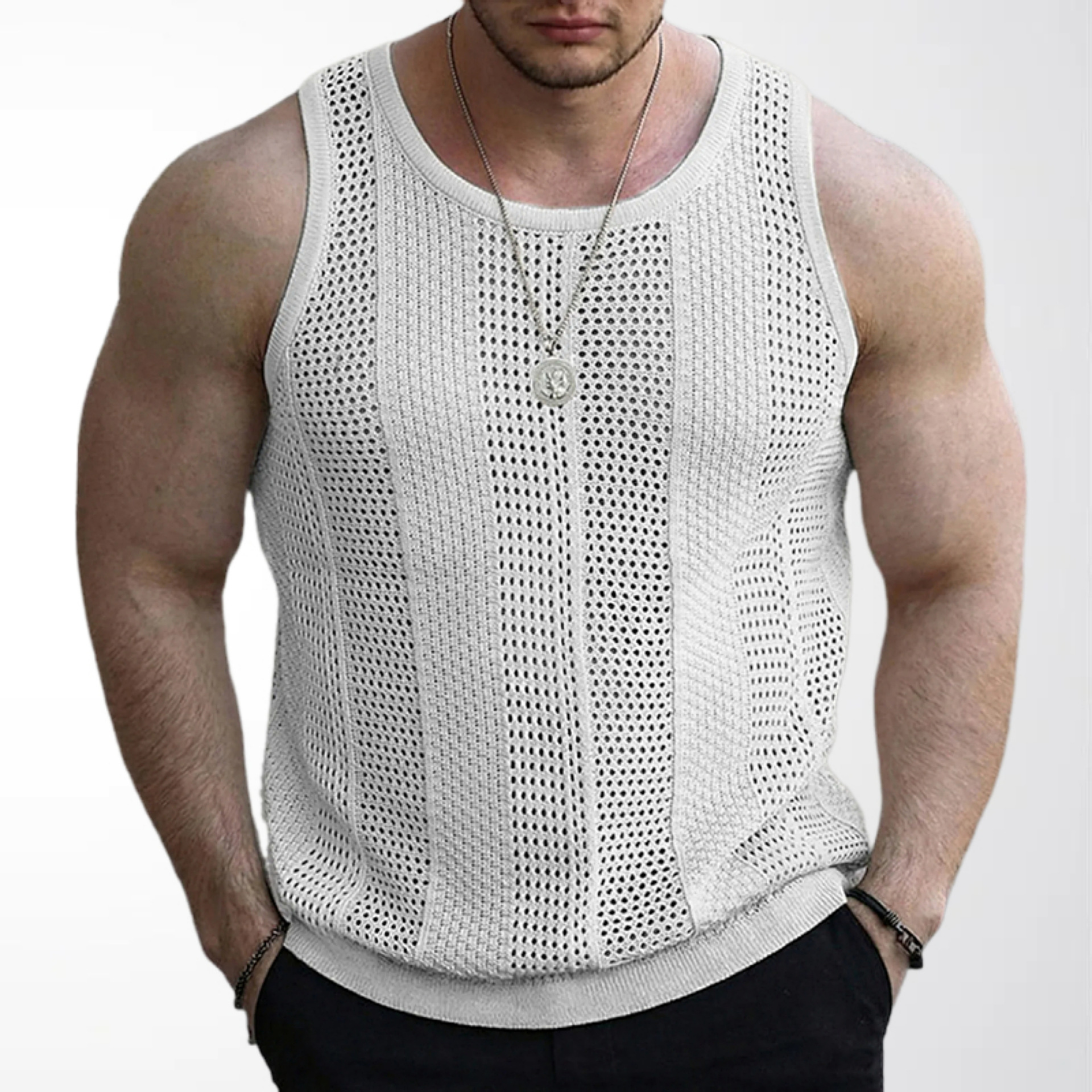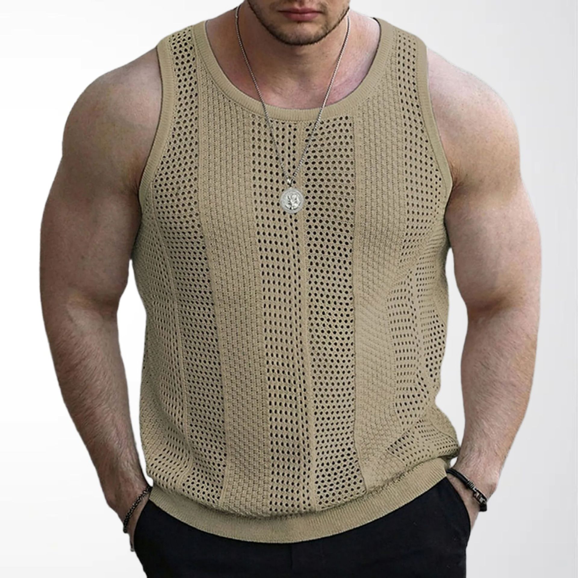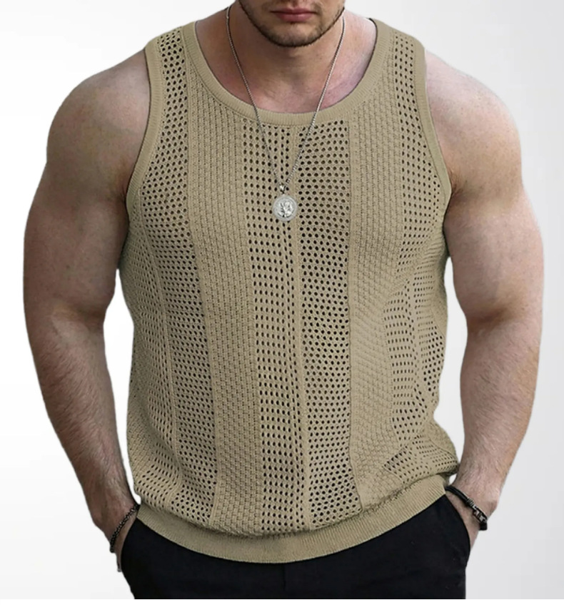 대외 무역 남자의 아마존 여름 새로운 중공 스웨터 남자의 민소매 슬림 핏 니트 조끼 SY0187
