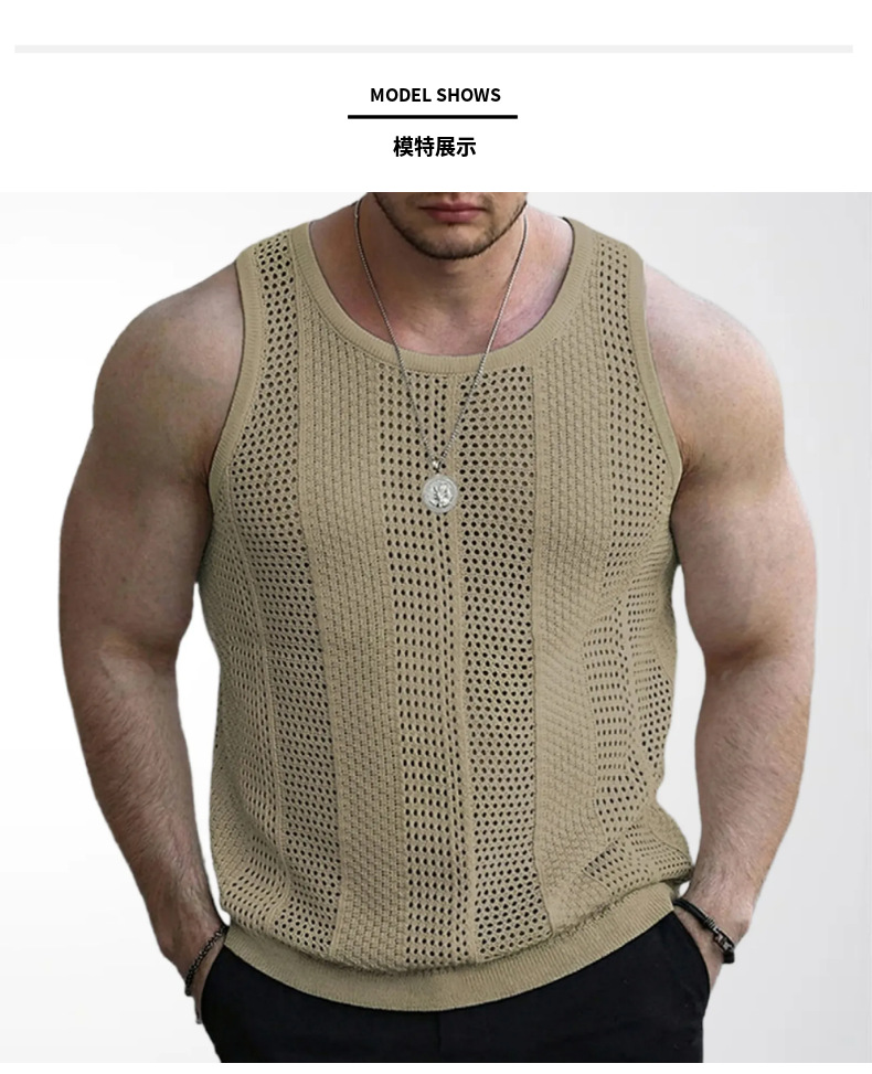 대외 무역 남자의 아마존 여름 새로운 중공 스웨터 남자의 민소매 슬림 핏 니트 조끼 SY0187스토어 가기
