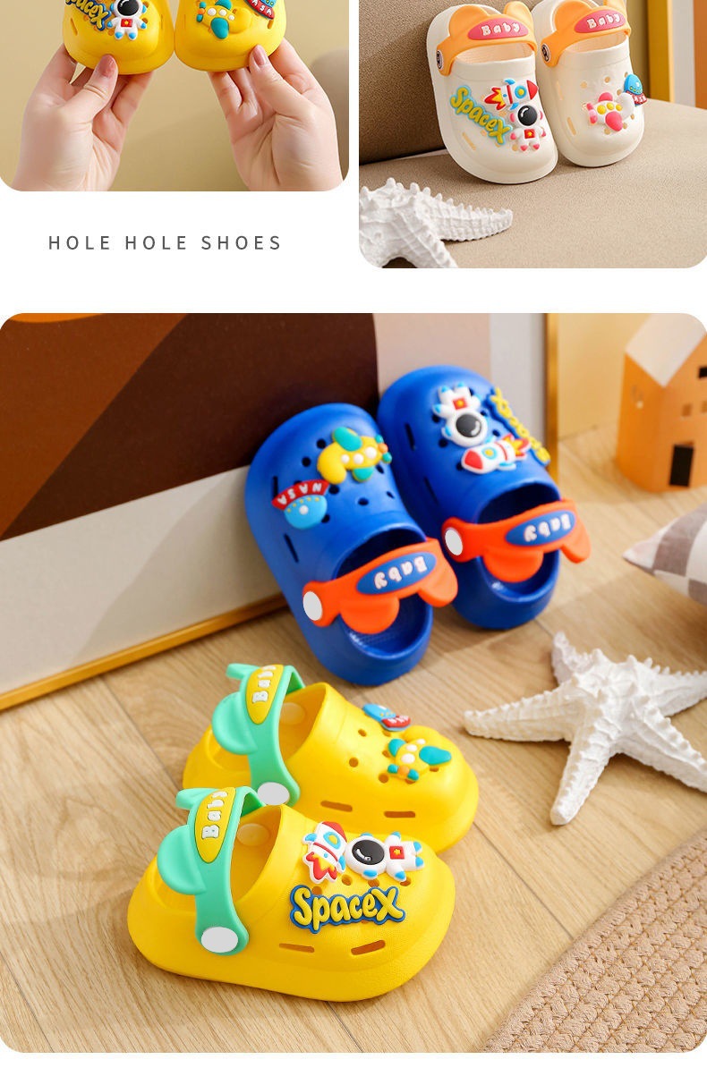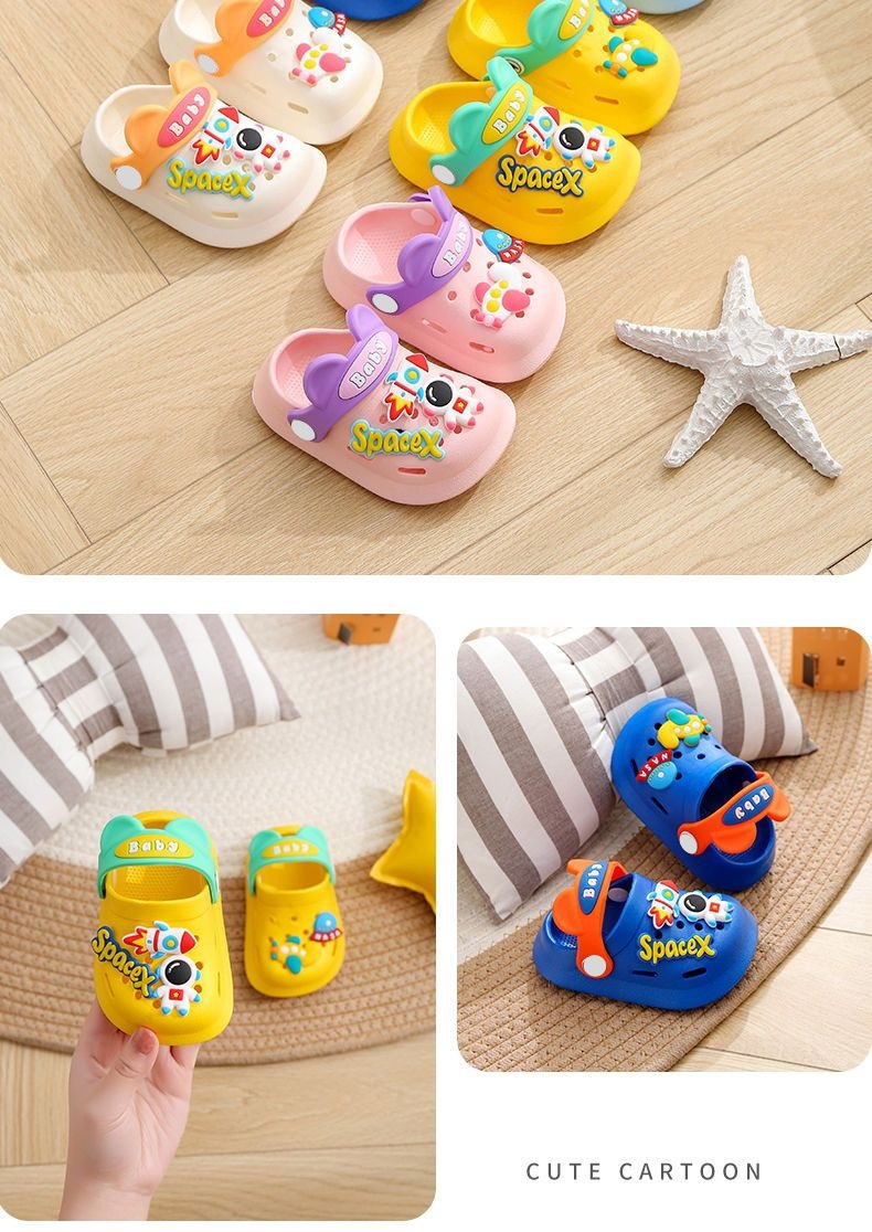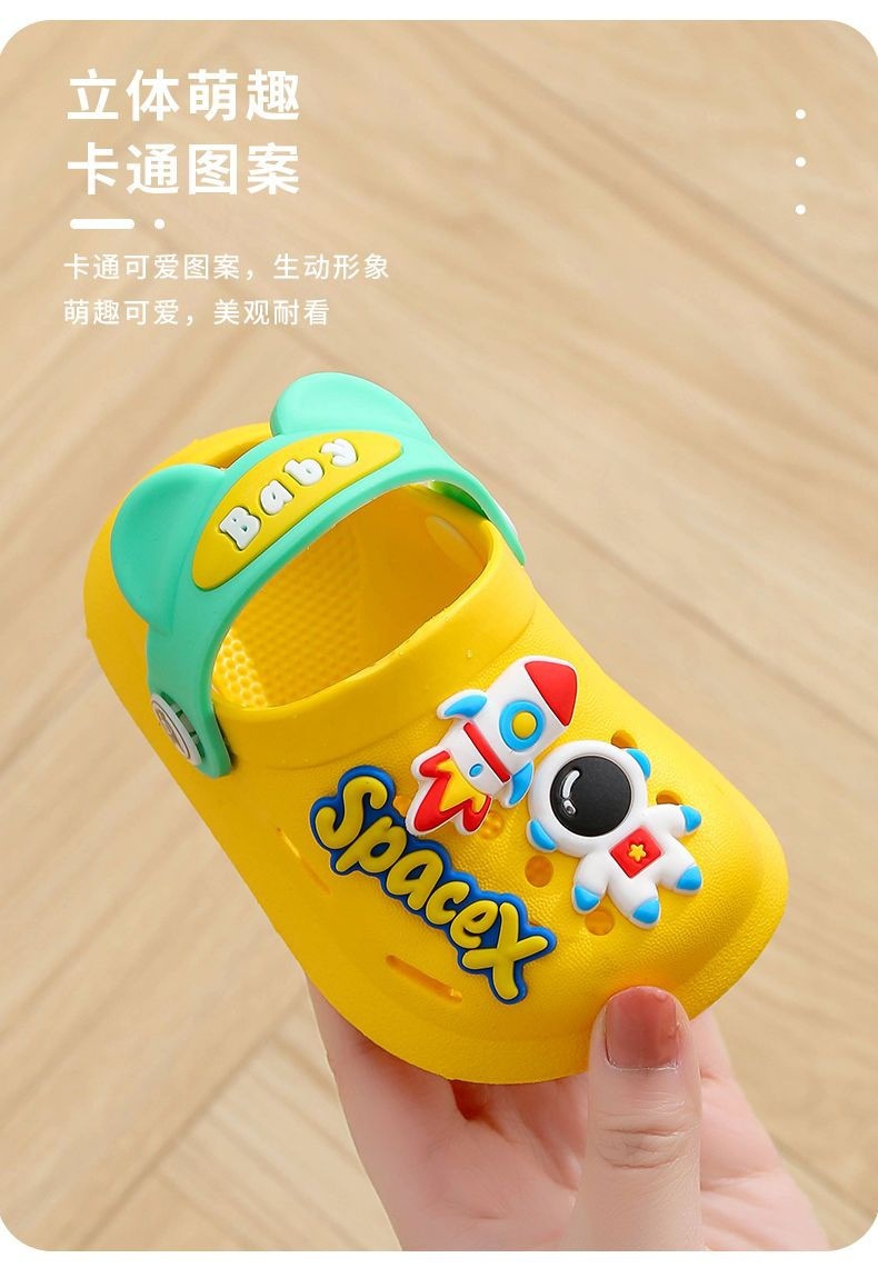 여름 어린이용 미끄럼 방지 샌들, 아기, 남아, 여아용 구멍 신발, 만화 캐릭터가 있는 앞코가 뚫린 슬리퍼, 유아 및 어린이용