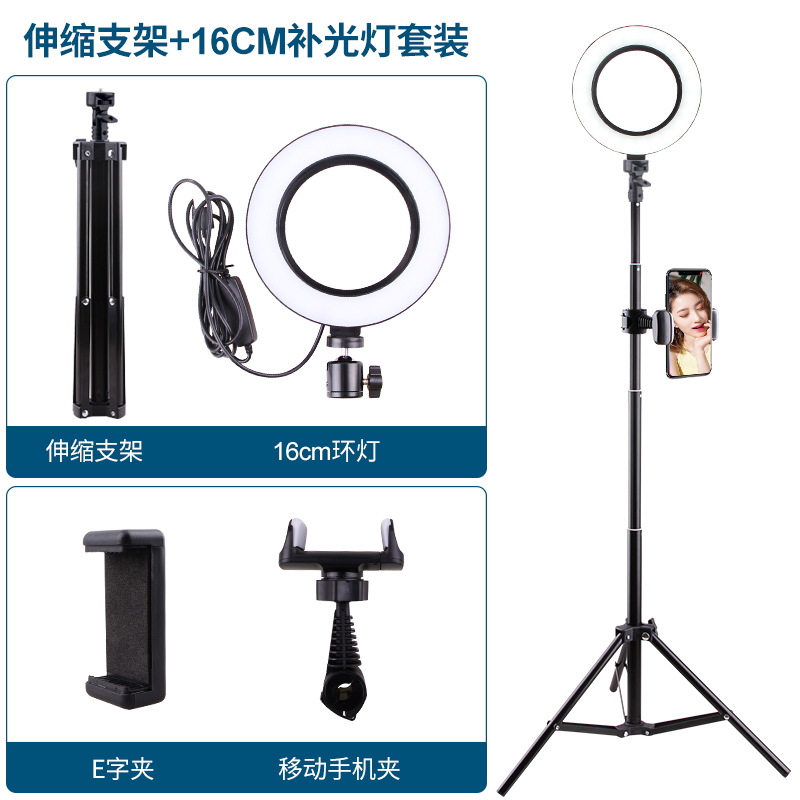 라이브 방송 브래킷 아름다움 램프 휴대용 휴대 전화 사진 핸드 헬드 셀카 스틱 삼각대 led 링 채우기 빛
