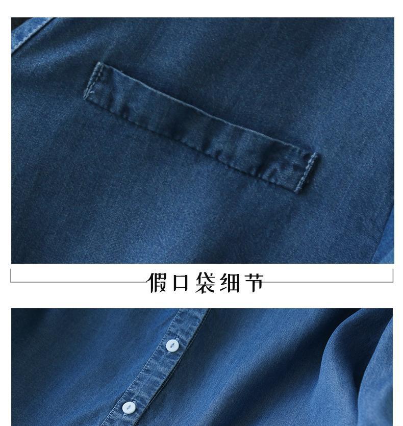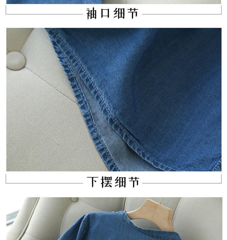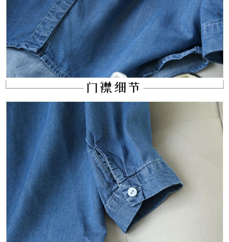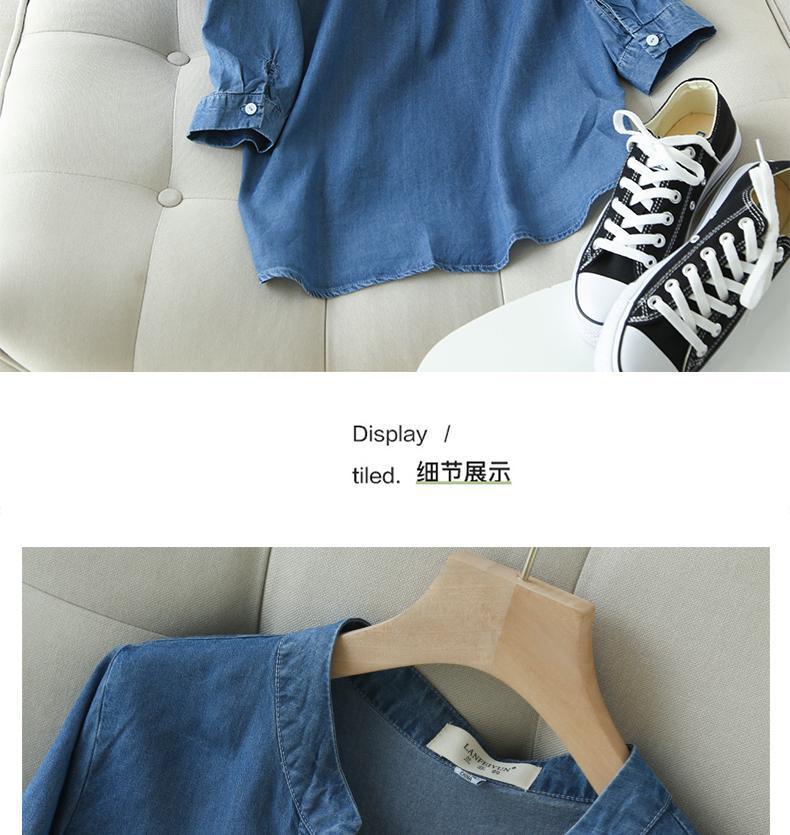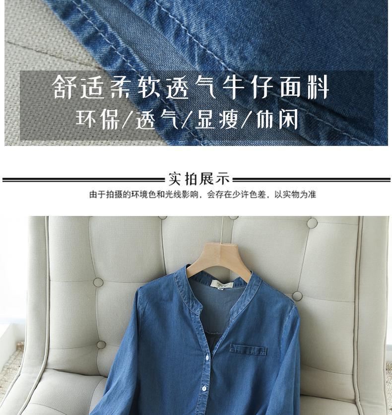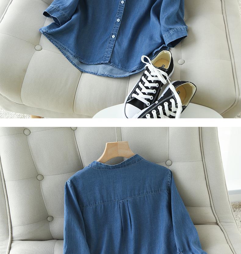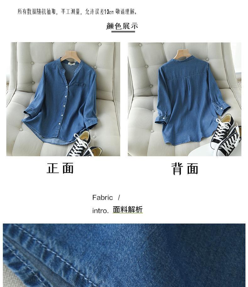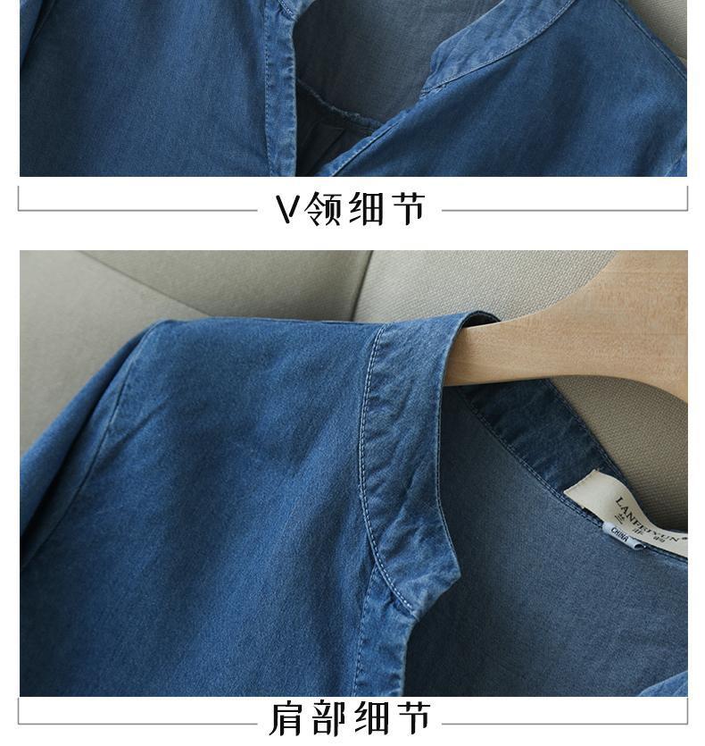봄과 여름 얇은 데님 V-넥 크롭 슬리브 셔츠 여성의 느슨한 한국 스타일 소프트 셔츠 기본 캐주얼 탑스토어 가기