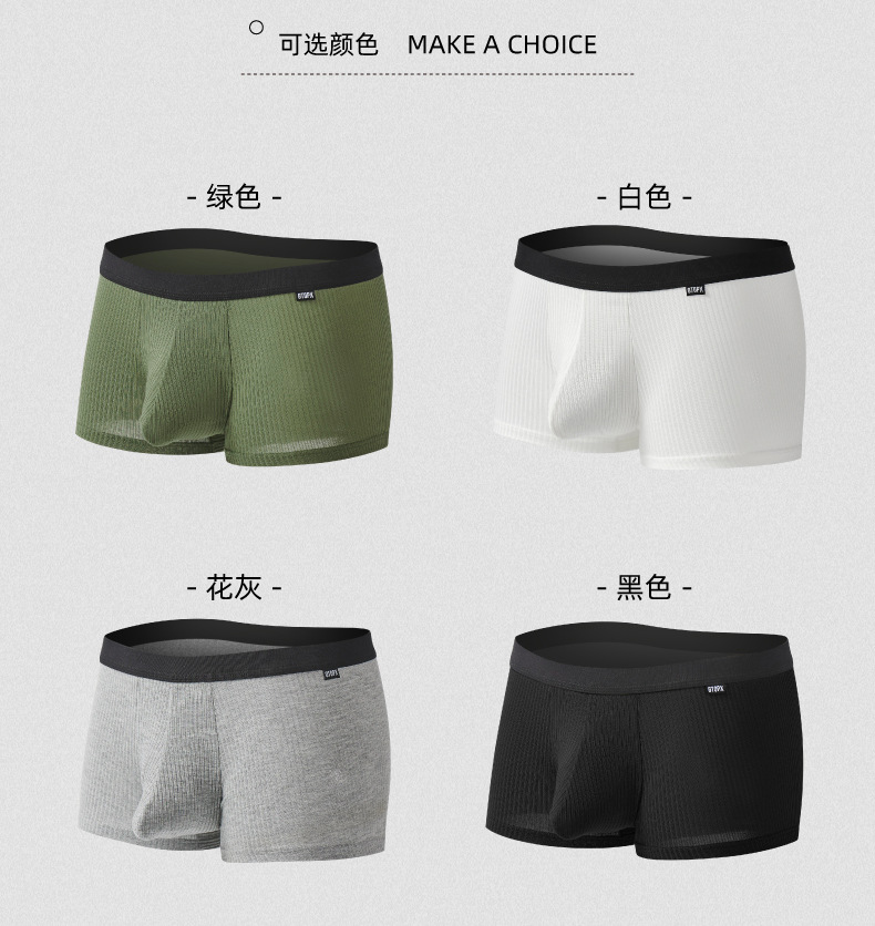 GTOPX男士加大囊袋U凸象鼻螺纹四角裤 代发透气吸汗薄款平角内裤