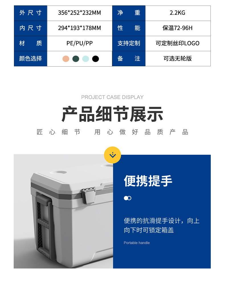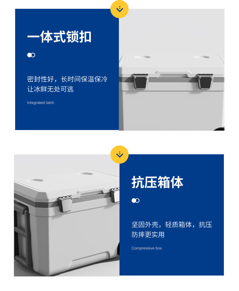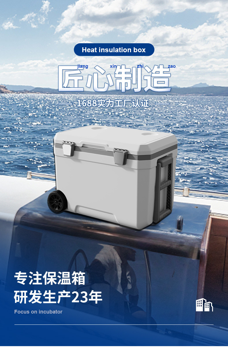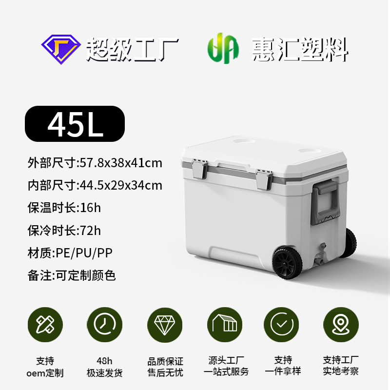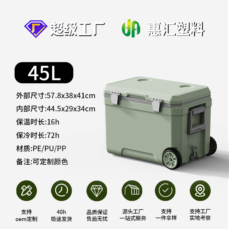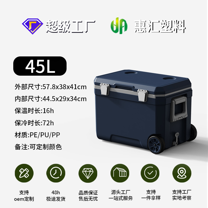 45L 야외 트롤리 휠 인큐베이터 자동차 낚시 대용량 식품 냉장고 신선한 캠핑 선물 상자