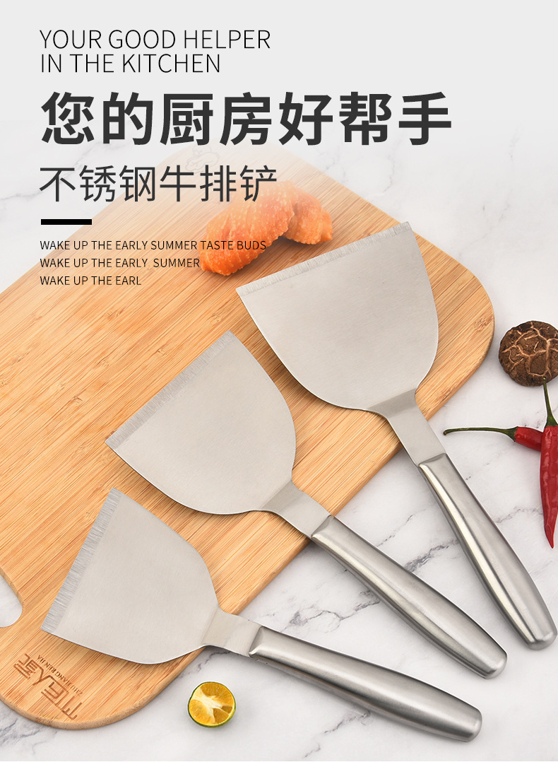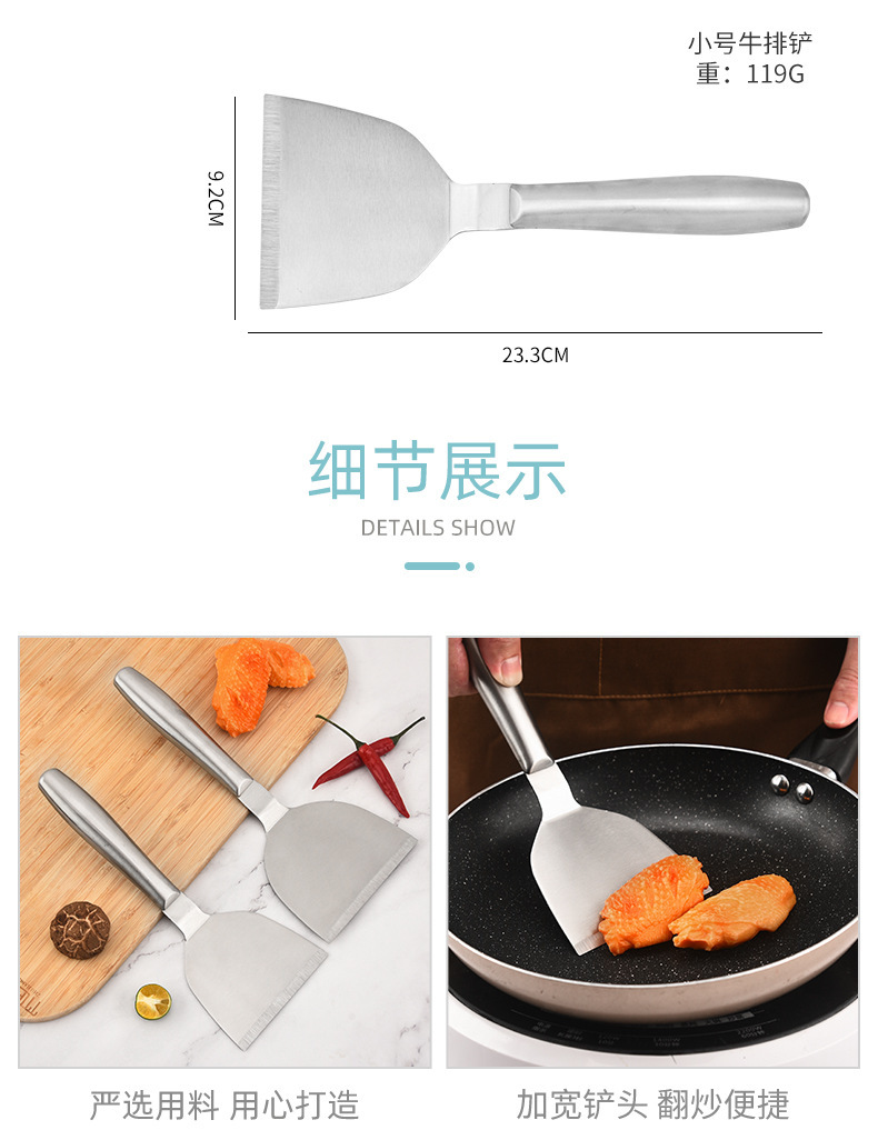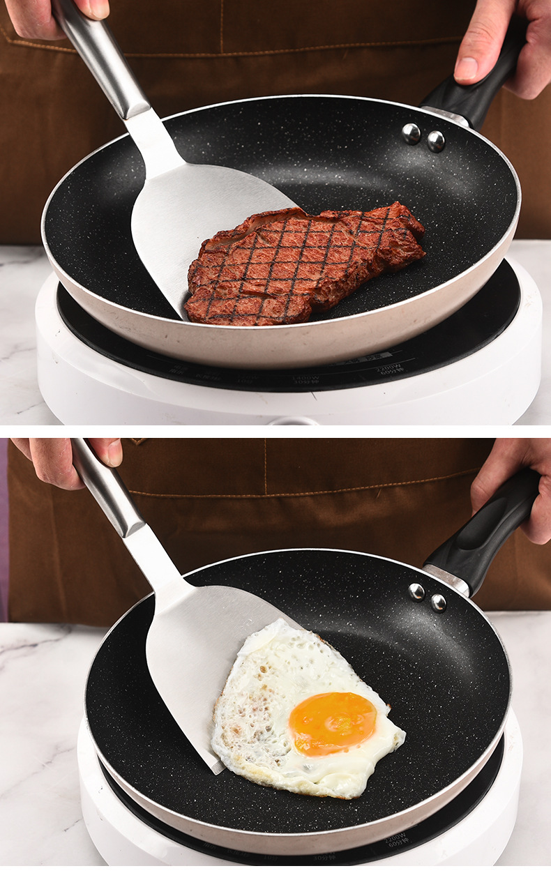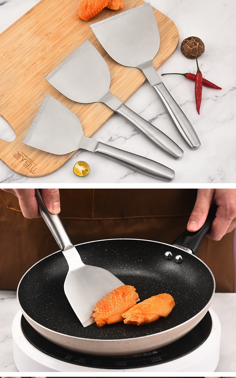 재고 도매 모든 강철 팬케이크 삽 주방 용품 튀김 스테이크 삽 손 잡아 케이크 압력 삽 요리 삽스토어 가기
