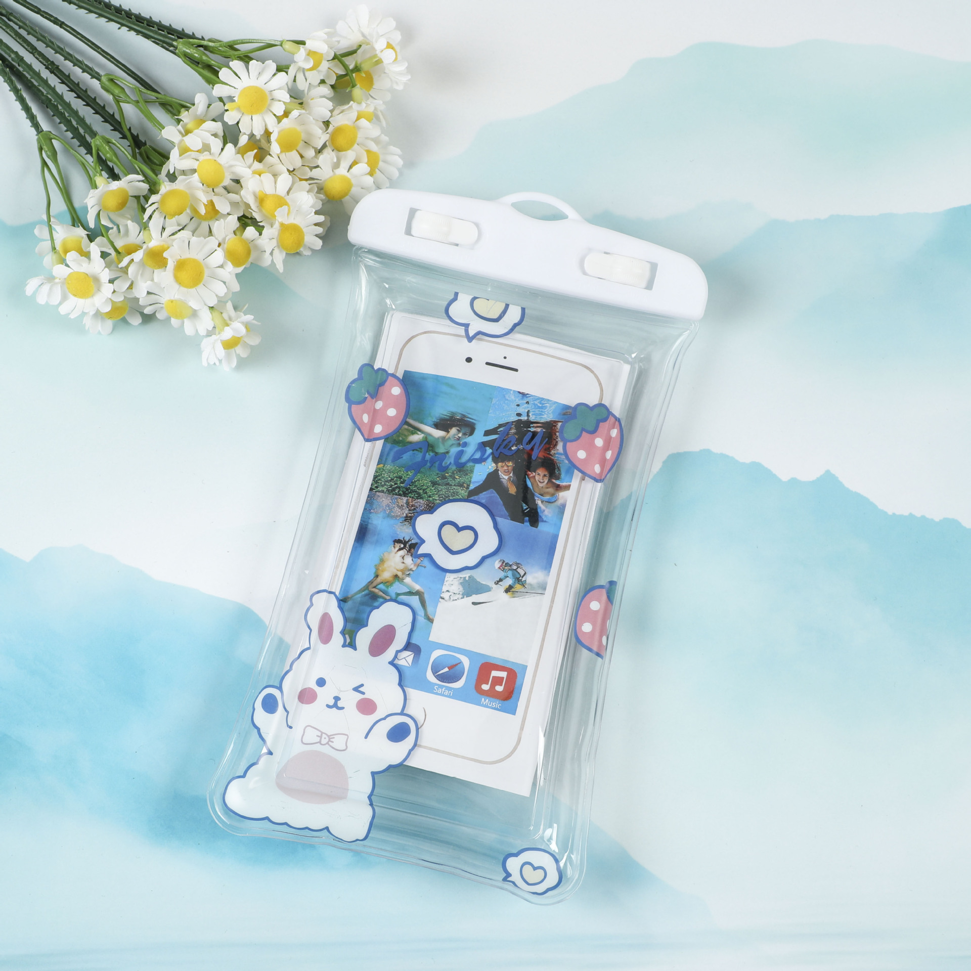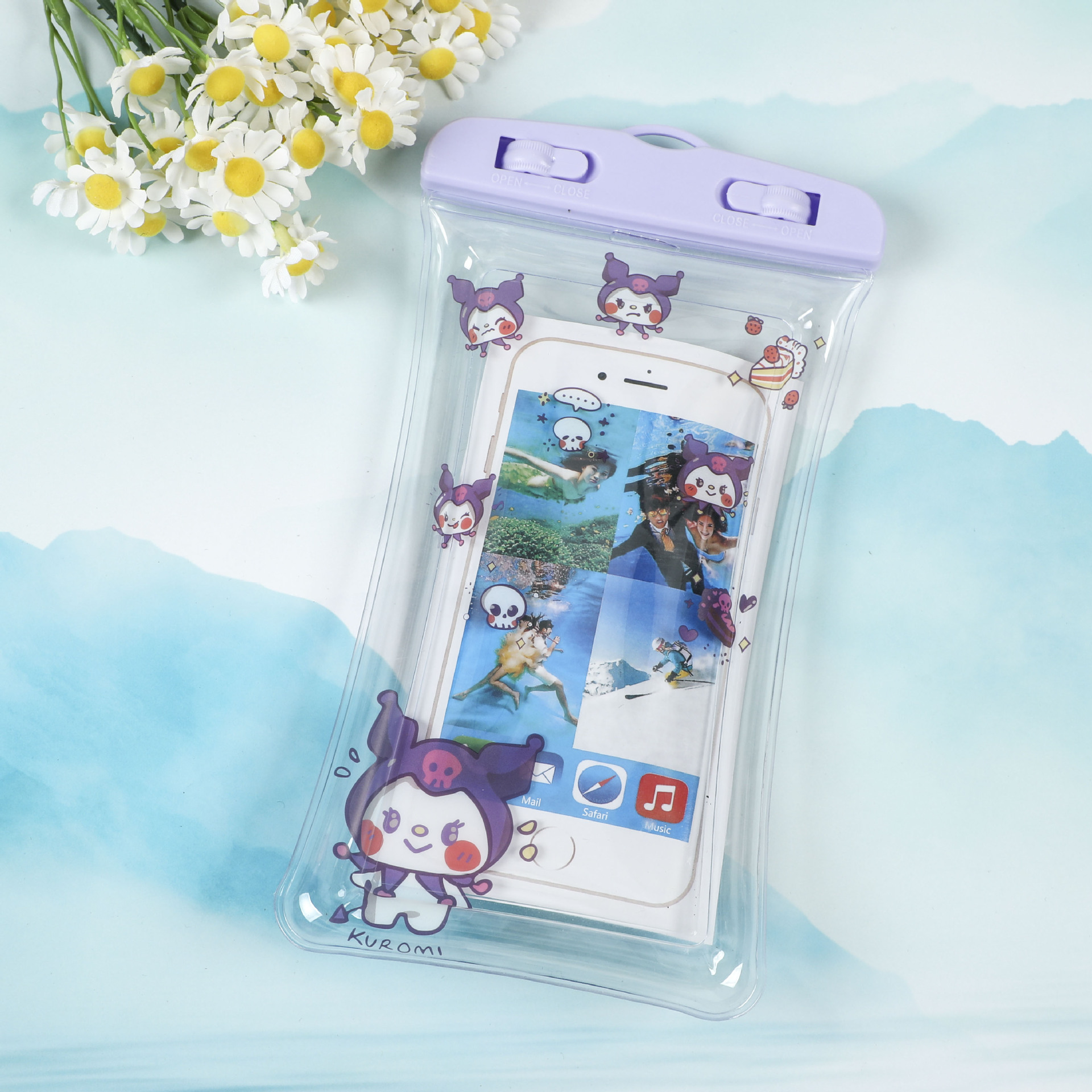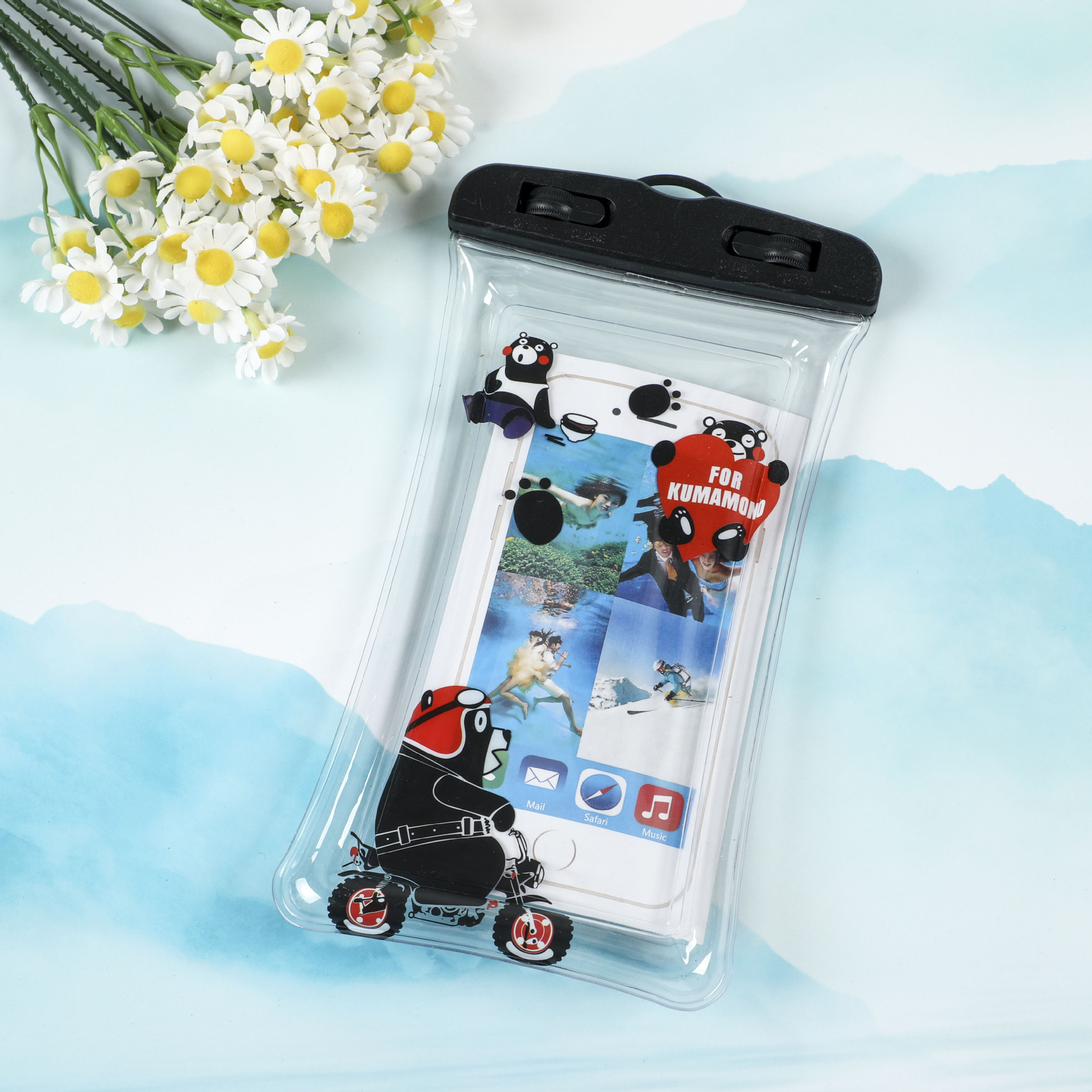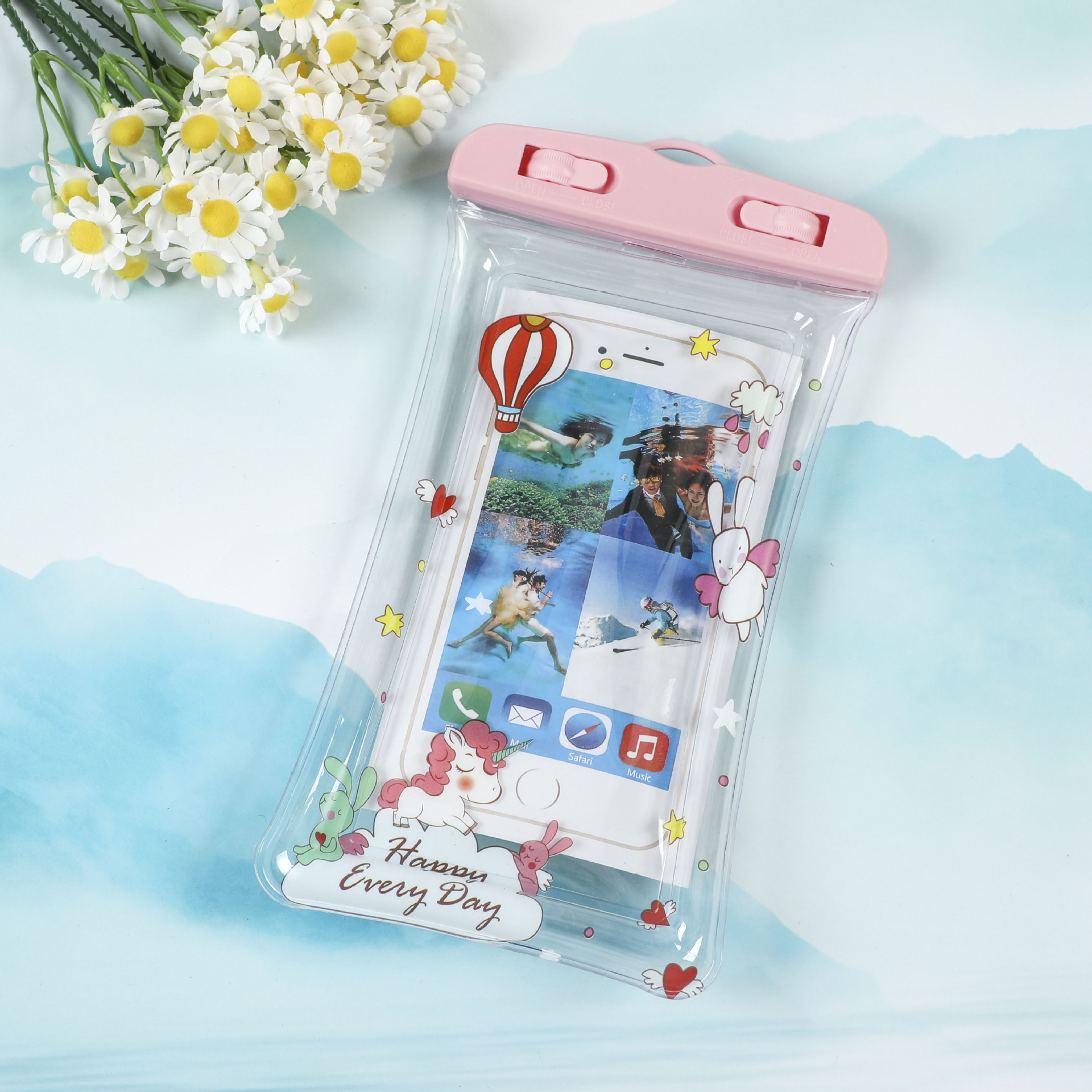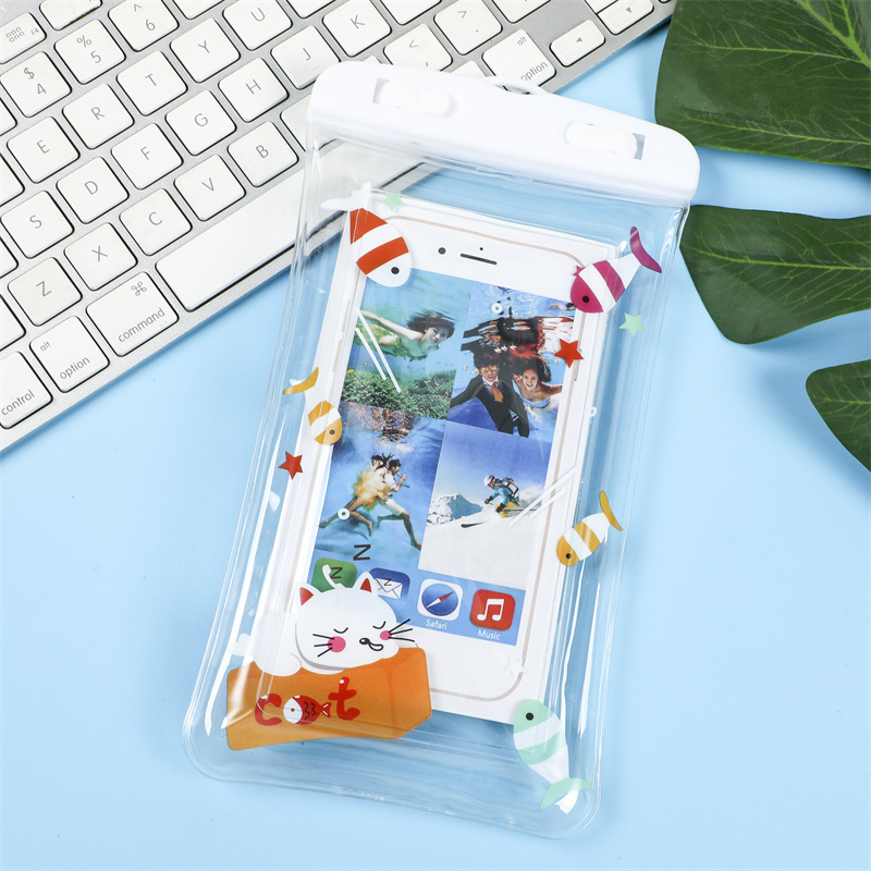 PVC 휴대폰 방수 가방, 투명 다이빙 터치스크린 밀봉 수영 방수 가방, 만화 캐릭터 목걸이형 카메라 보호 케이스스토어 가기