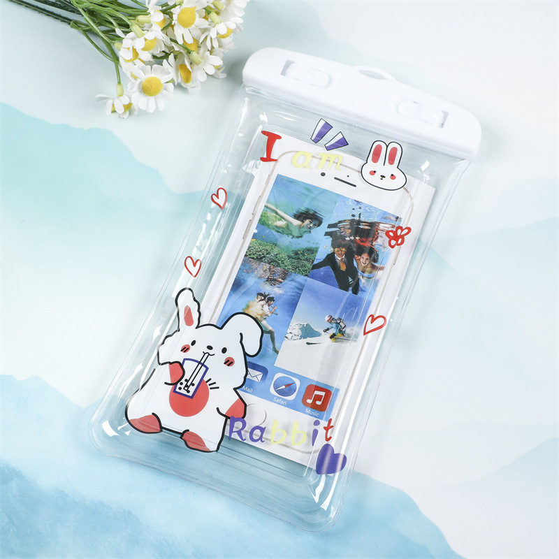 PVC 휴대폰 방수 가방, 투명 다이빙 터치스크린 밀봉 수영 방수 가방, 만화 캐릭터 목걸이형 카메라 보호 케이스