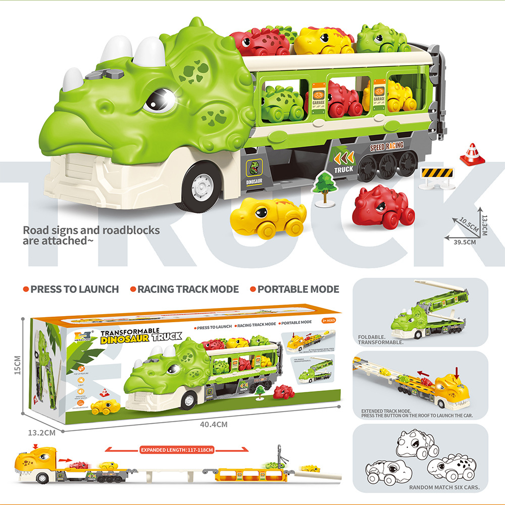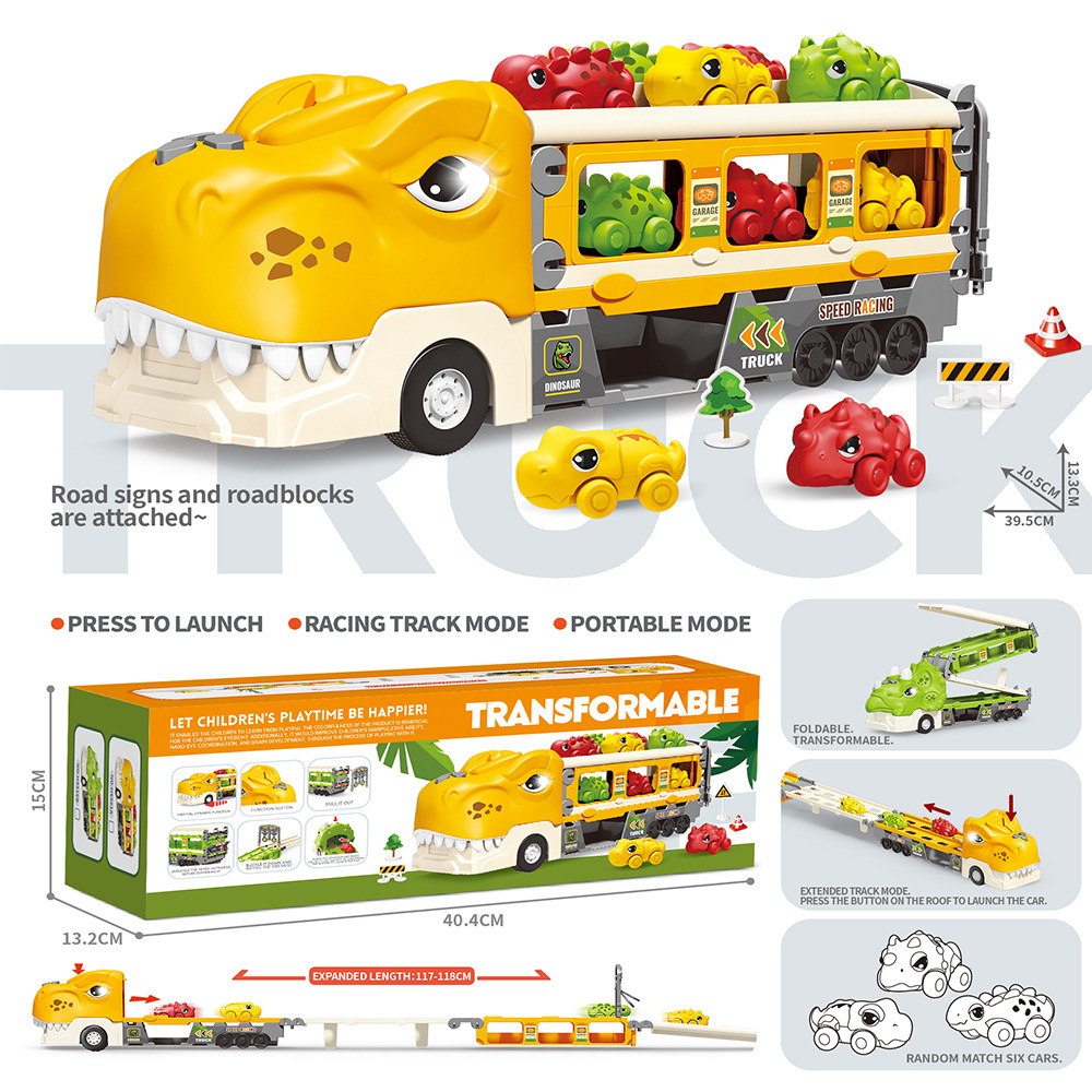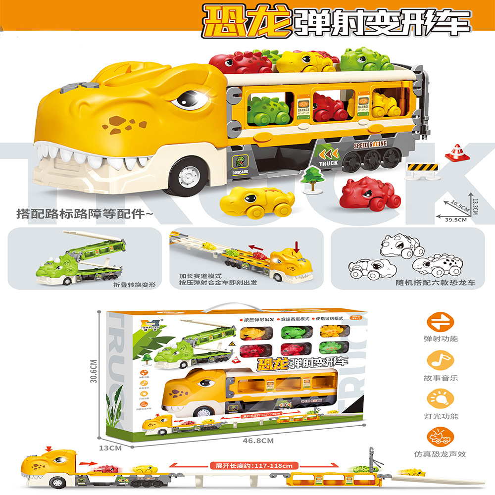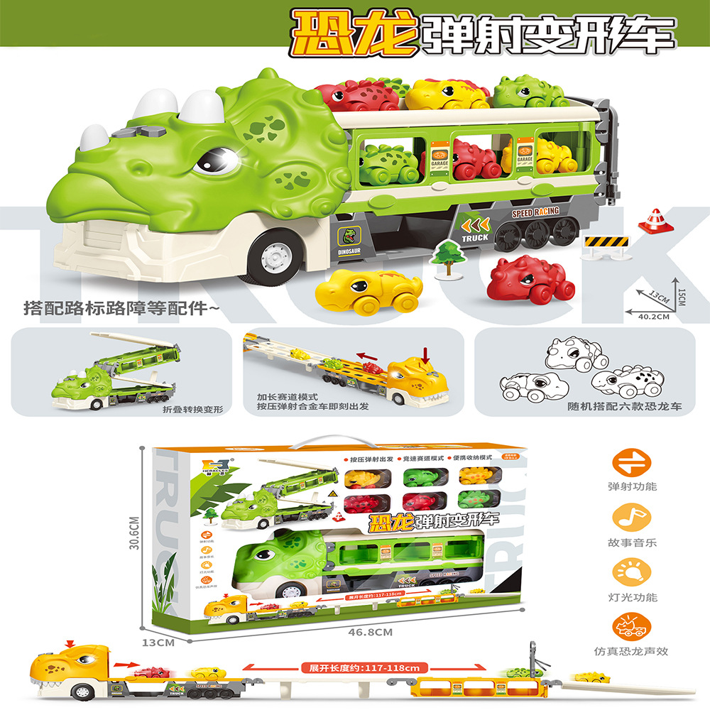 크로스 보더 공룡 배출 자동차 관성 변형 어린이 장난감 자동차 음악 라이트 폴딩 변형 프레스 배출 자동차스토어 가기