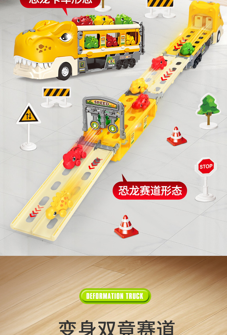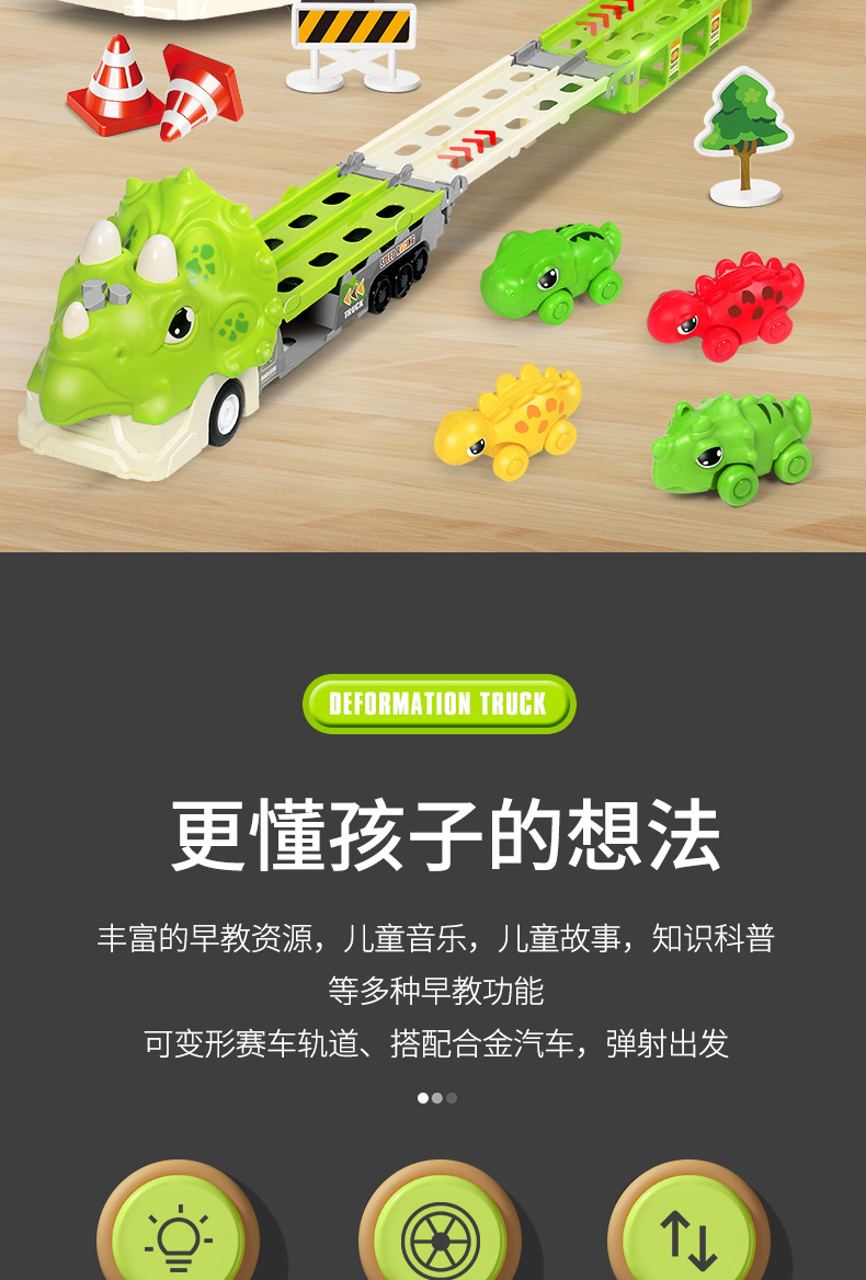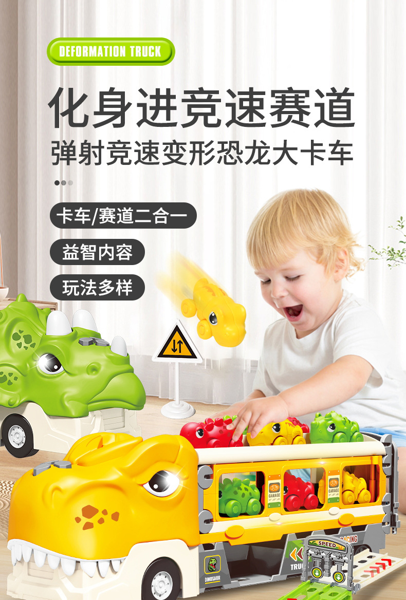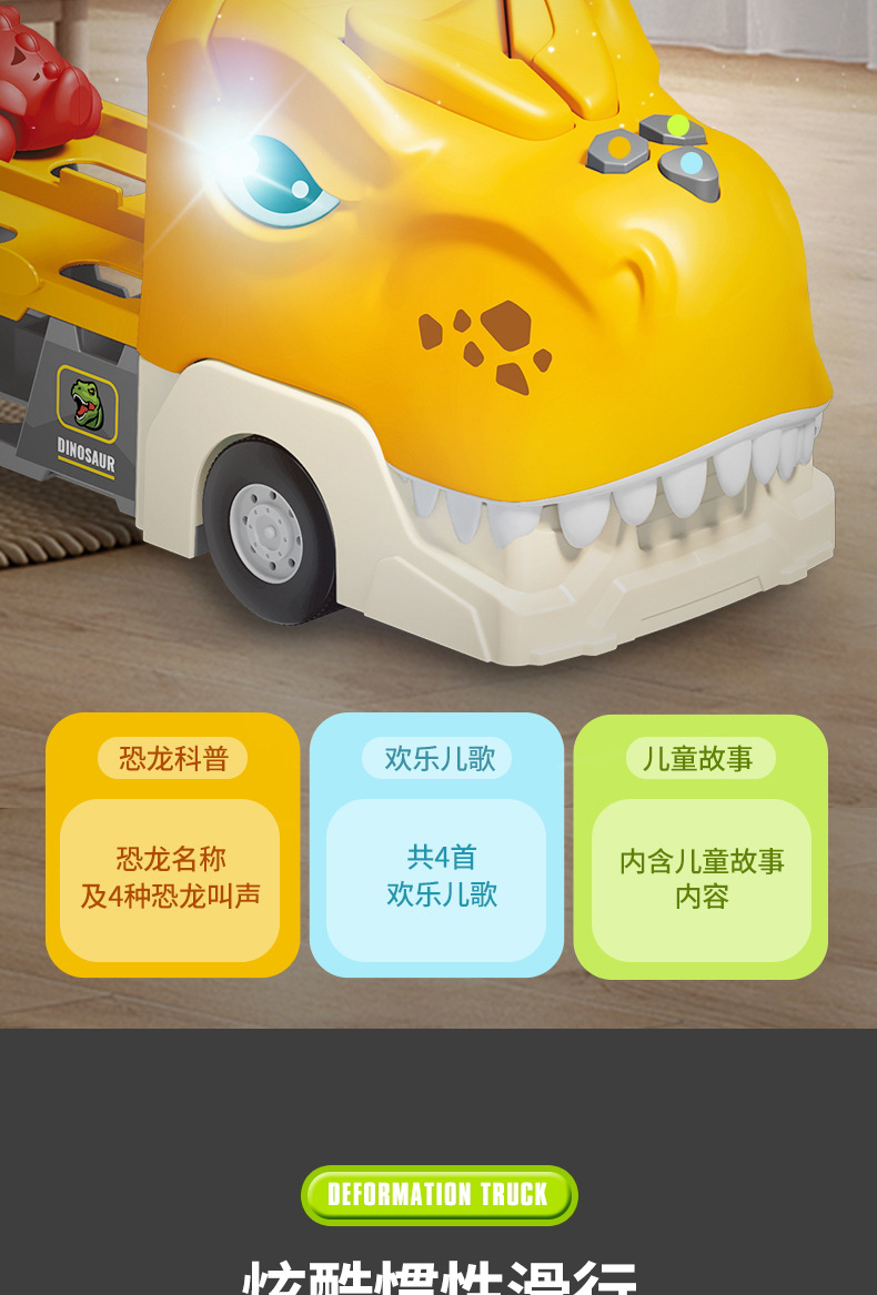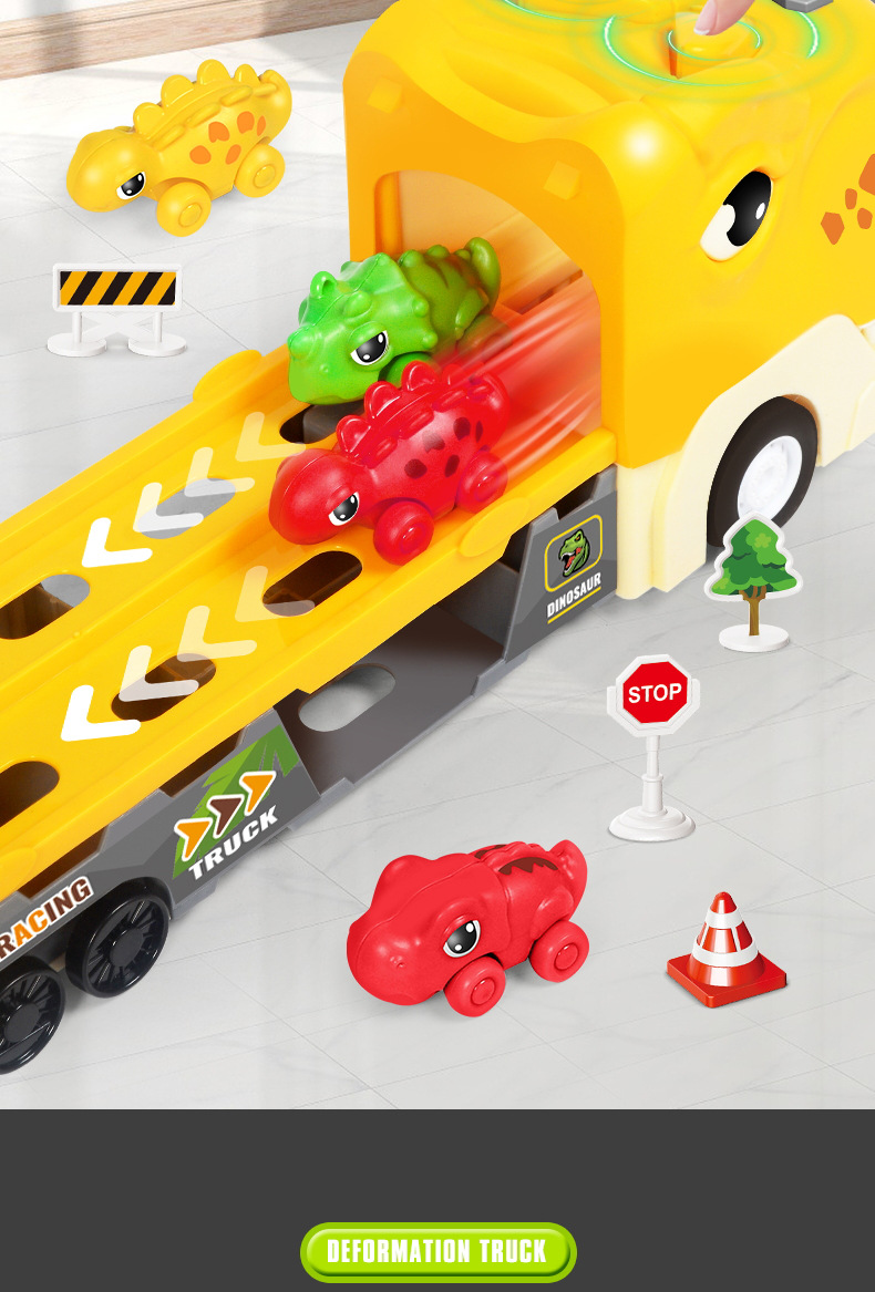 크로스 보더 공룡 배출 자동차 관성 변형 어린이 장난감 자동차 음악 라이트 폴딩 변형 프레스 배출 자동차스토어 가기