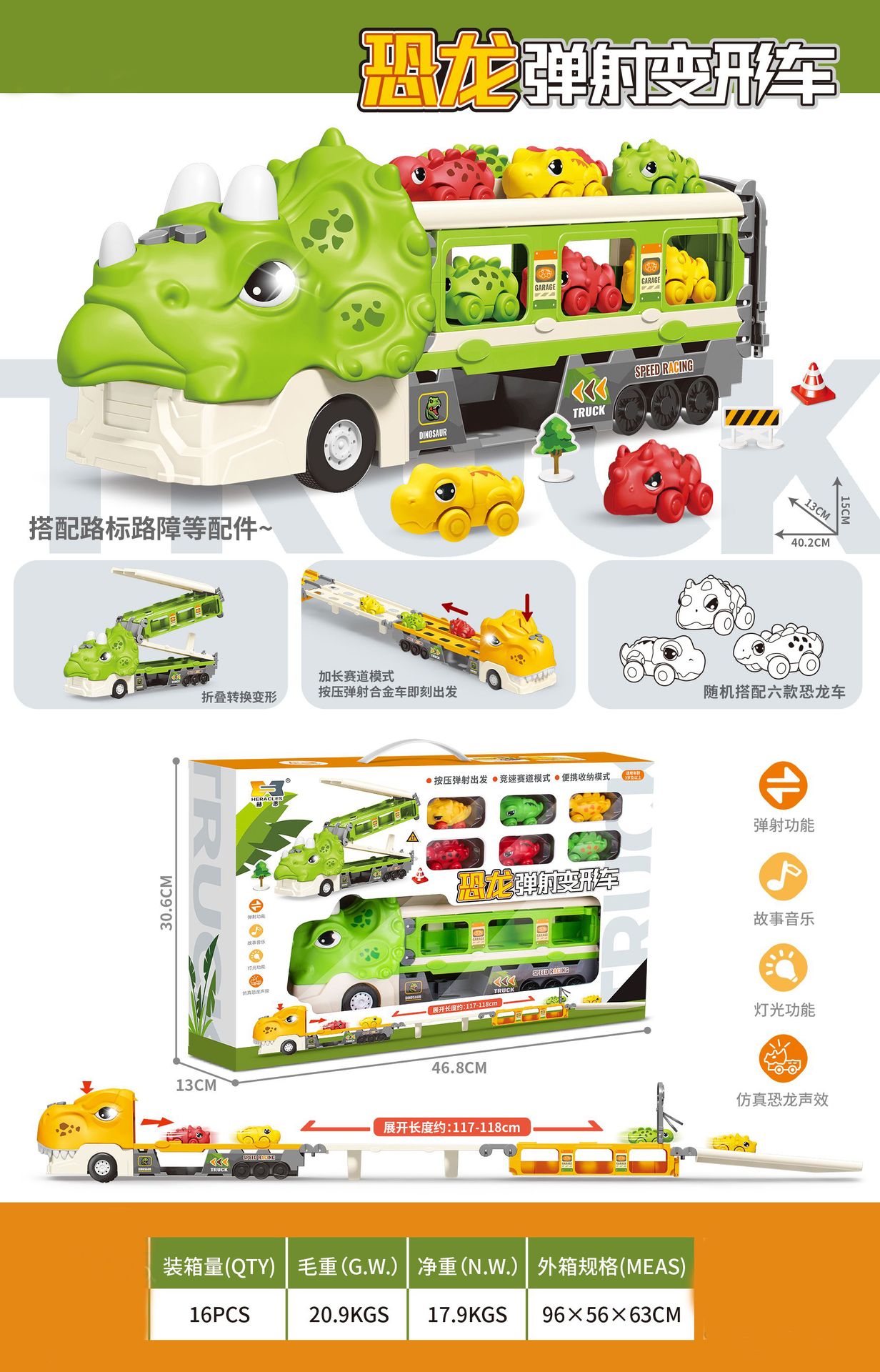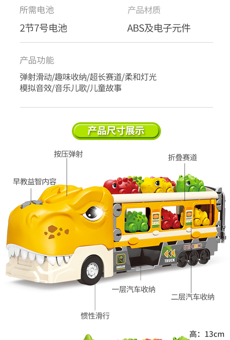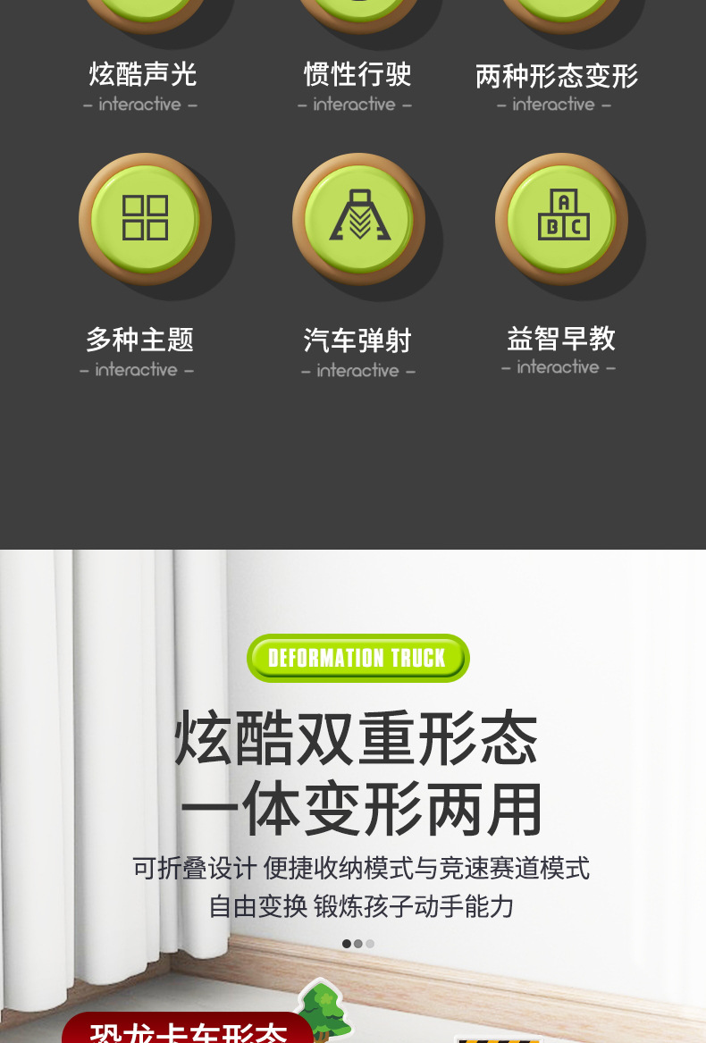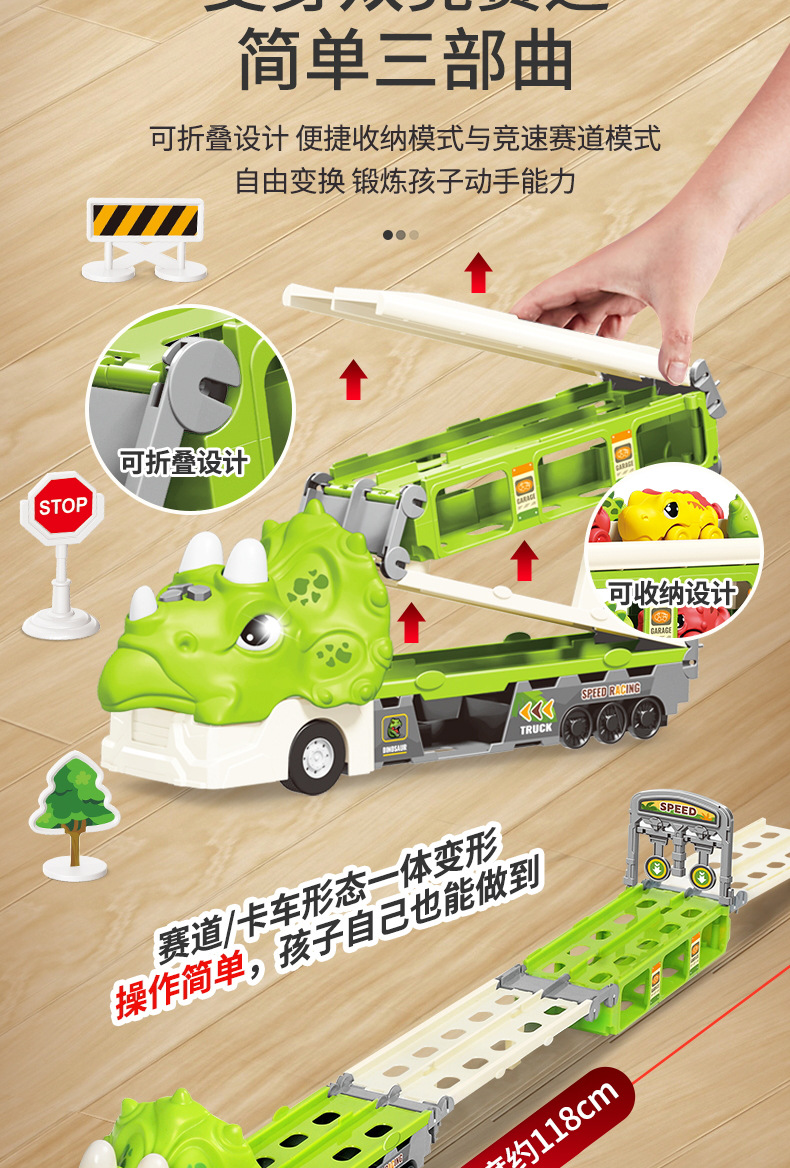 크로스 보더 공룡 배출 자동차 관성 변형 어린이 장난감 자동차 음악 라이트 폴딩 변형 프레스 배출 자동차스토어 가기