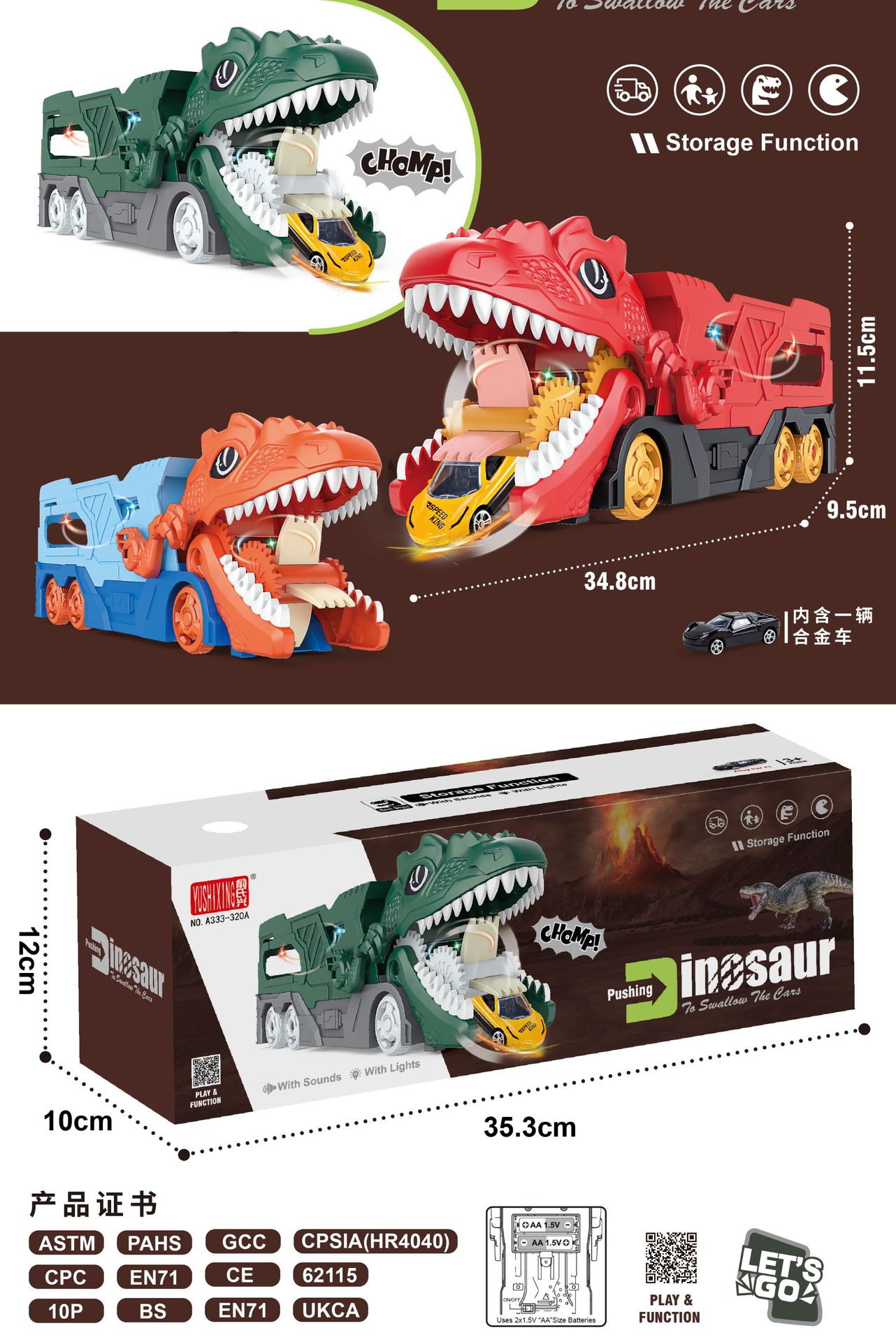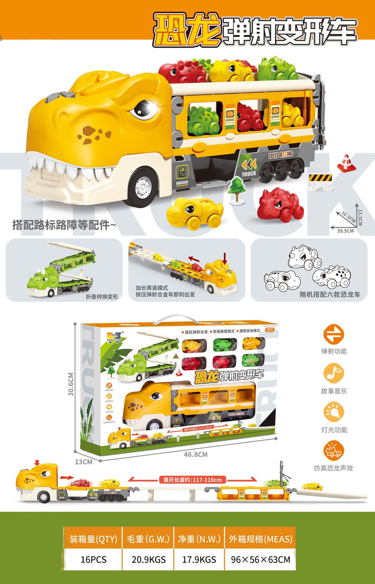 • 크로스 보더 영어 밀폐 상자 공룡 배출 변형 자동차 노란색 561A