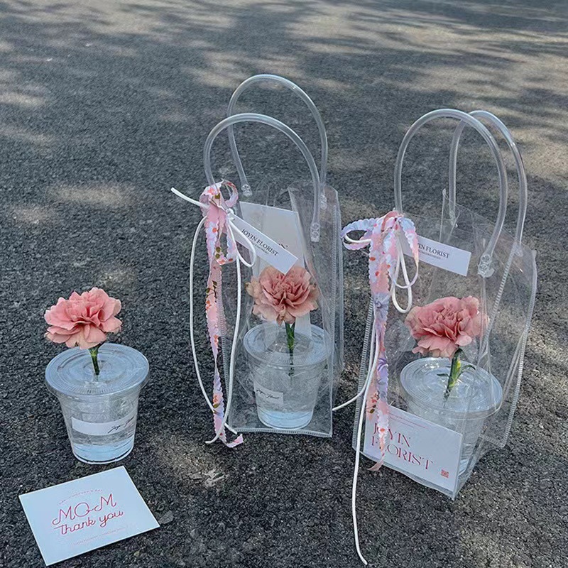 투명 핸드백 pvc 고급 선물 가방 플라스틱 우유 차 포장 가방 소형 그물 레드 핸드 백 도매스토어 가기