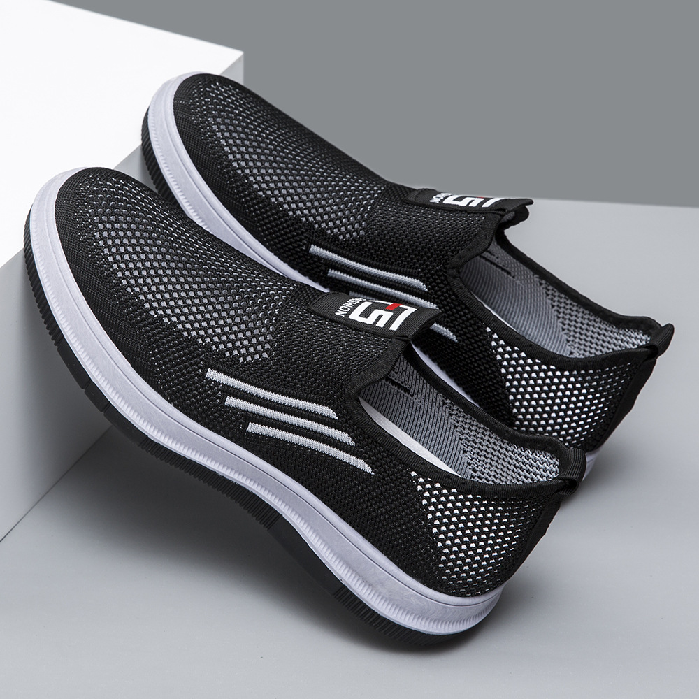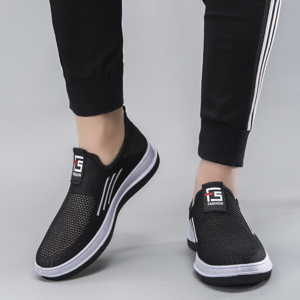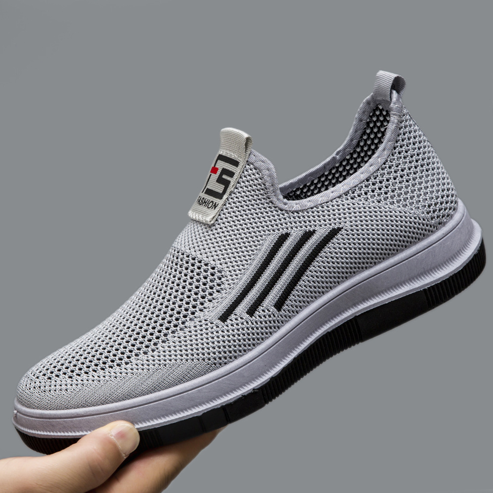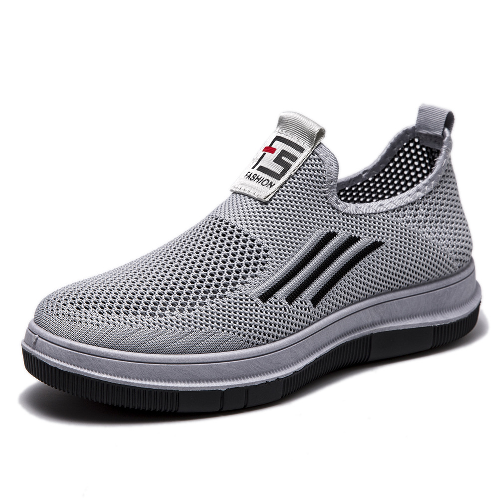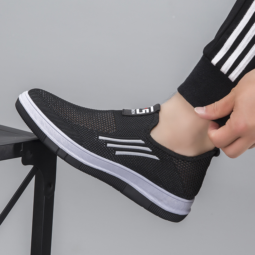 남자 신발 여름 새 메쉬 신발 얇은 중공 스포츠 캐주얼 신발 유행 모든 일치 통기성 슬립온 플라이 니트 신발스토어 가기