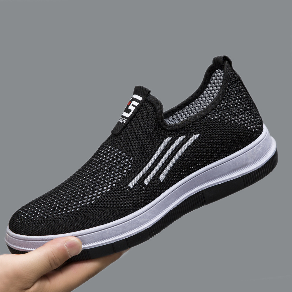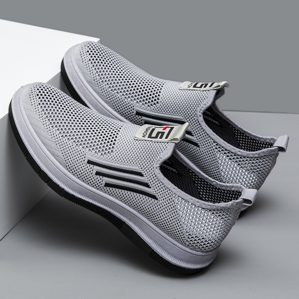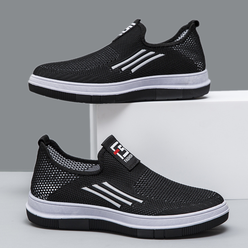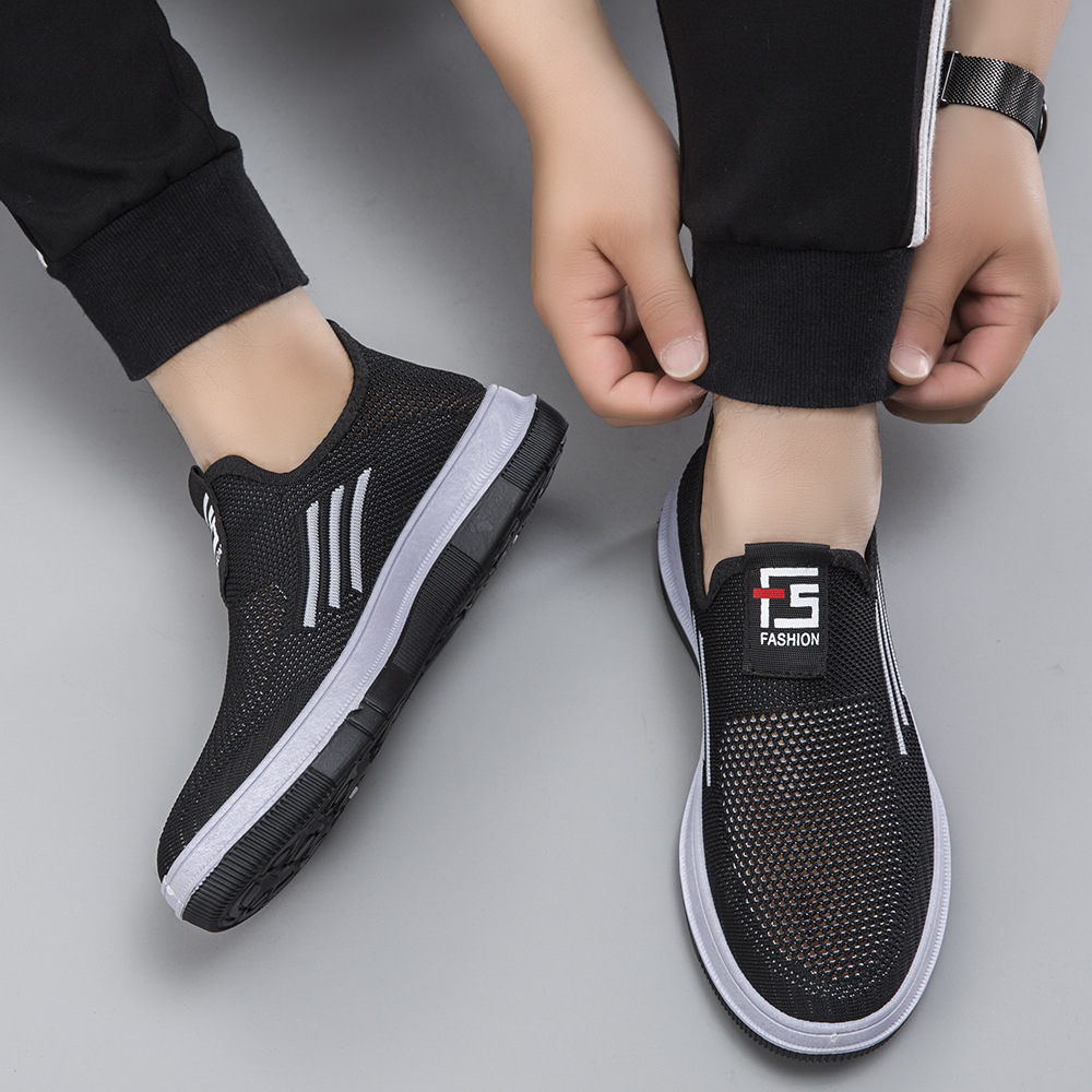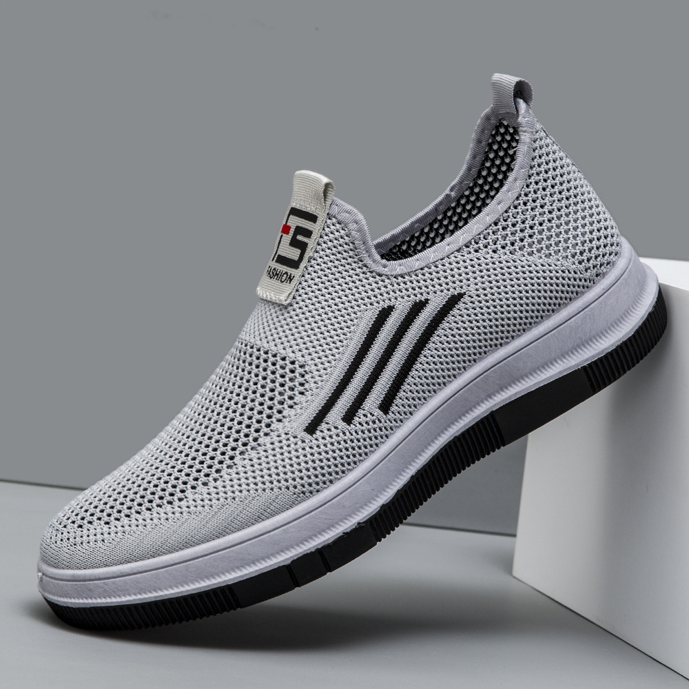 남자 신발 여름 새 메쉬 신발 얇은 중공 스포츠 캐주얼 신발 유행 모든 일치 통기성 슬립온 플라이 니트 신발스토어 가기