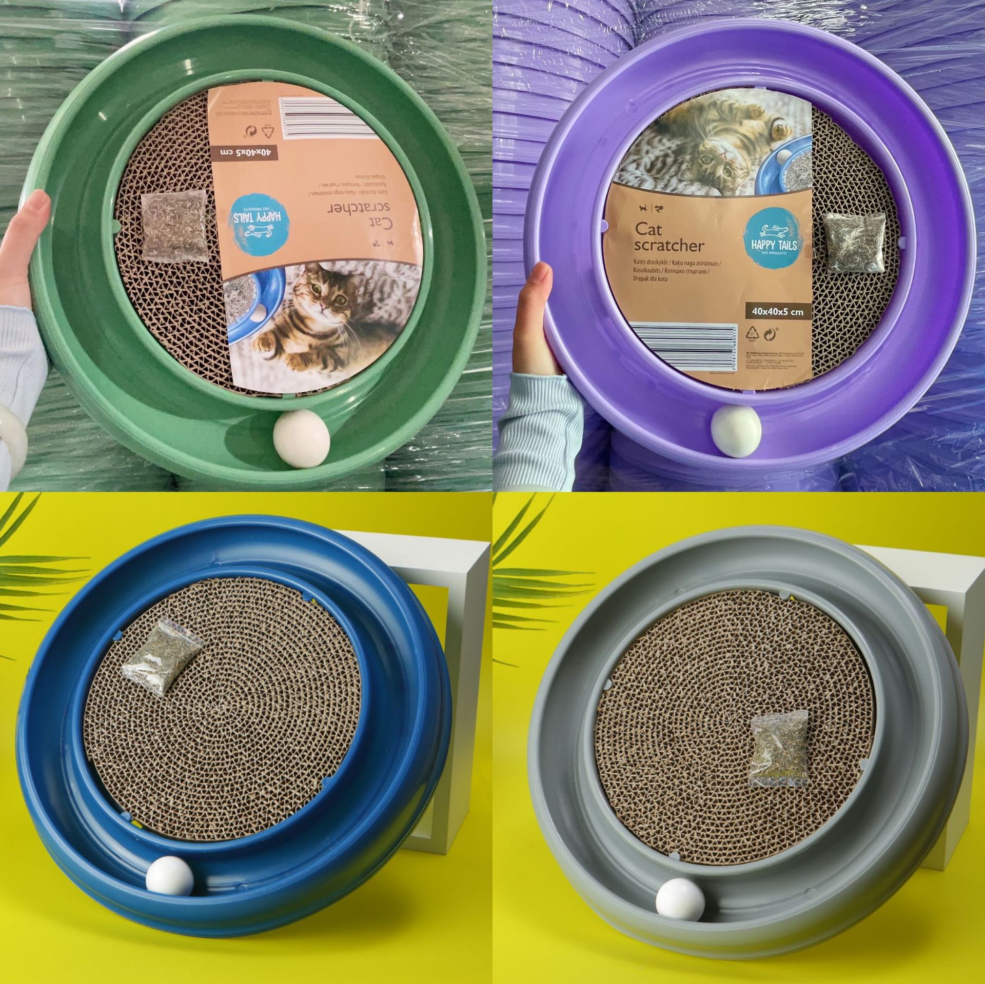 큰 애완 동물 용품 고양이 발톱 보드 라운드 고양이 긁는 보드 플라스틱 골판지 고양이 장난감 볼 마우스 재미있는 고양이 긁기 보드