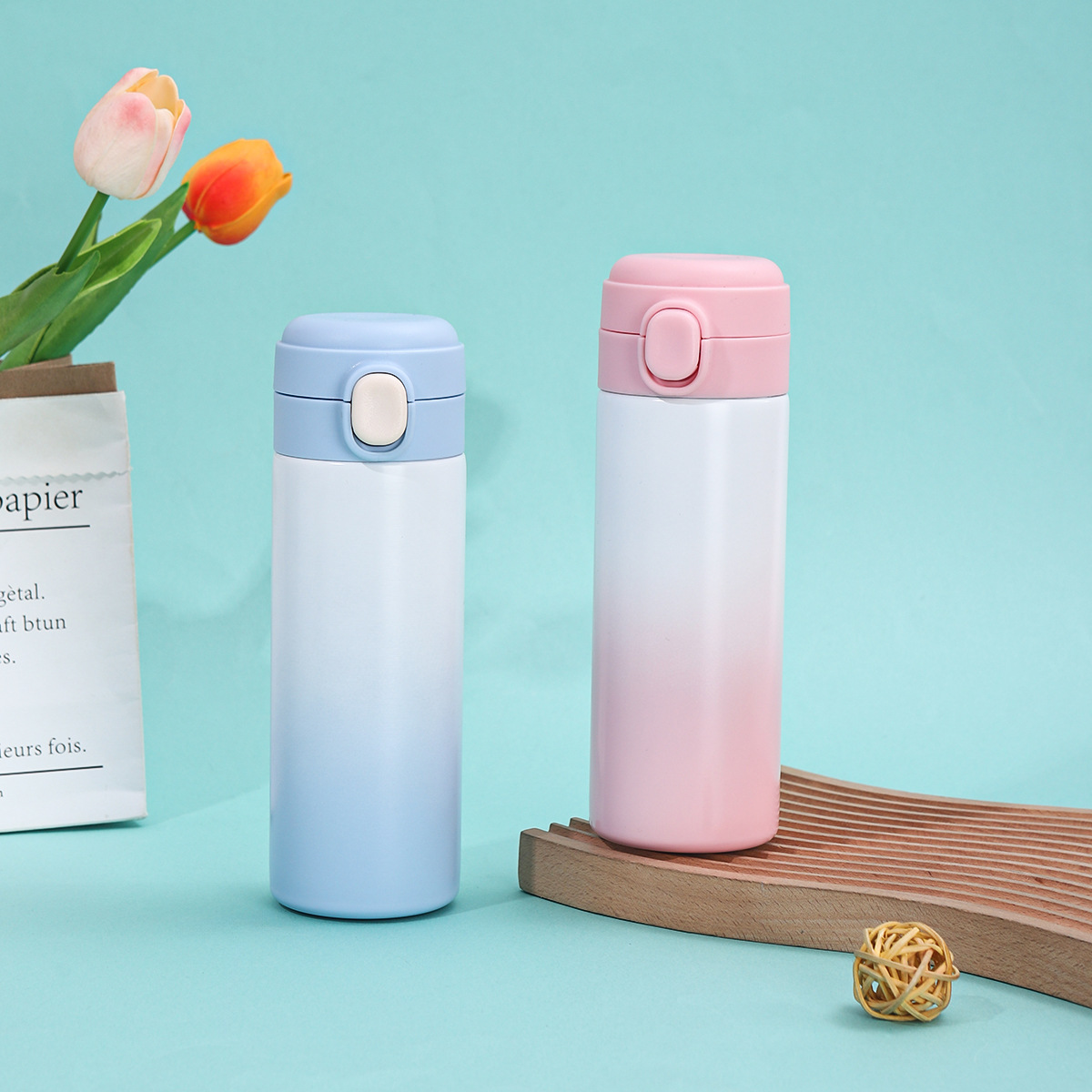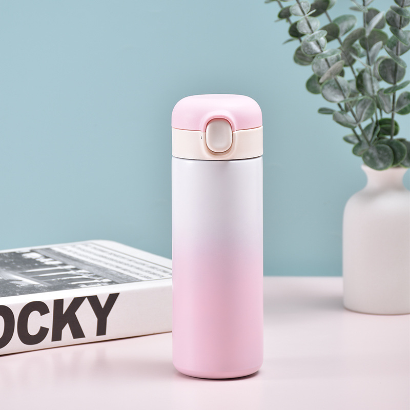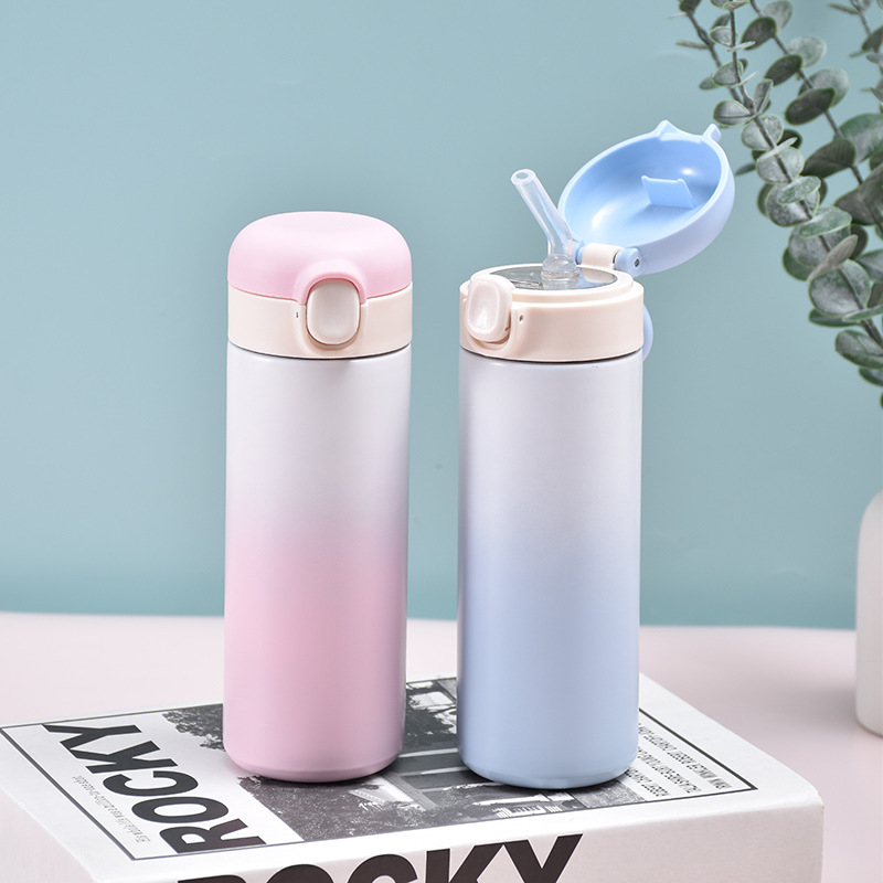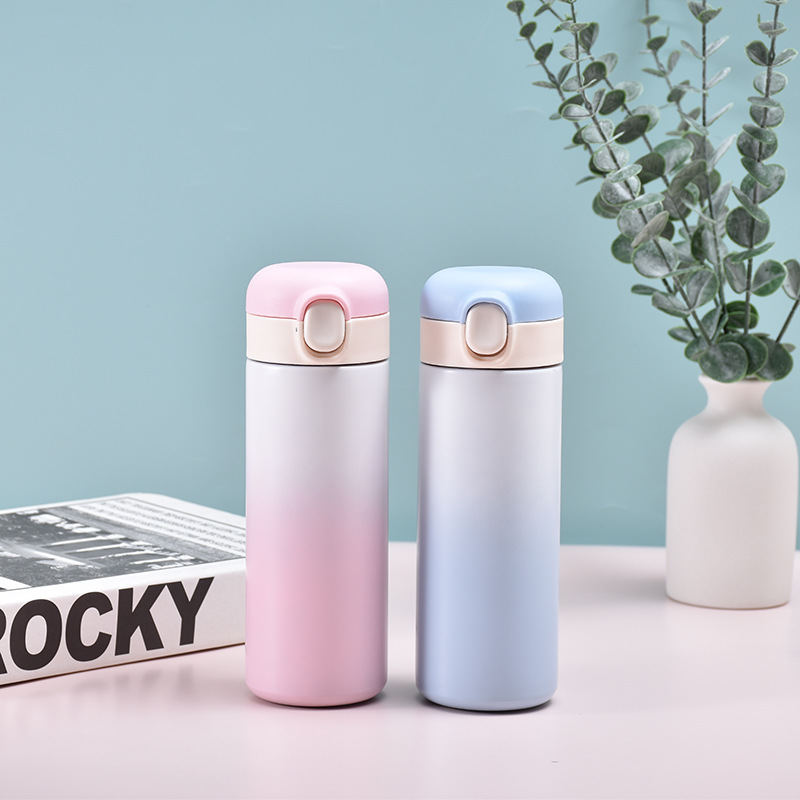 마카롱 304 스테인레스 스틸 보온병 컵 커플 소형 미니 포켓 컵 그라데이션 바운스 뚜껑 휴대용 완두콩 컵