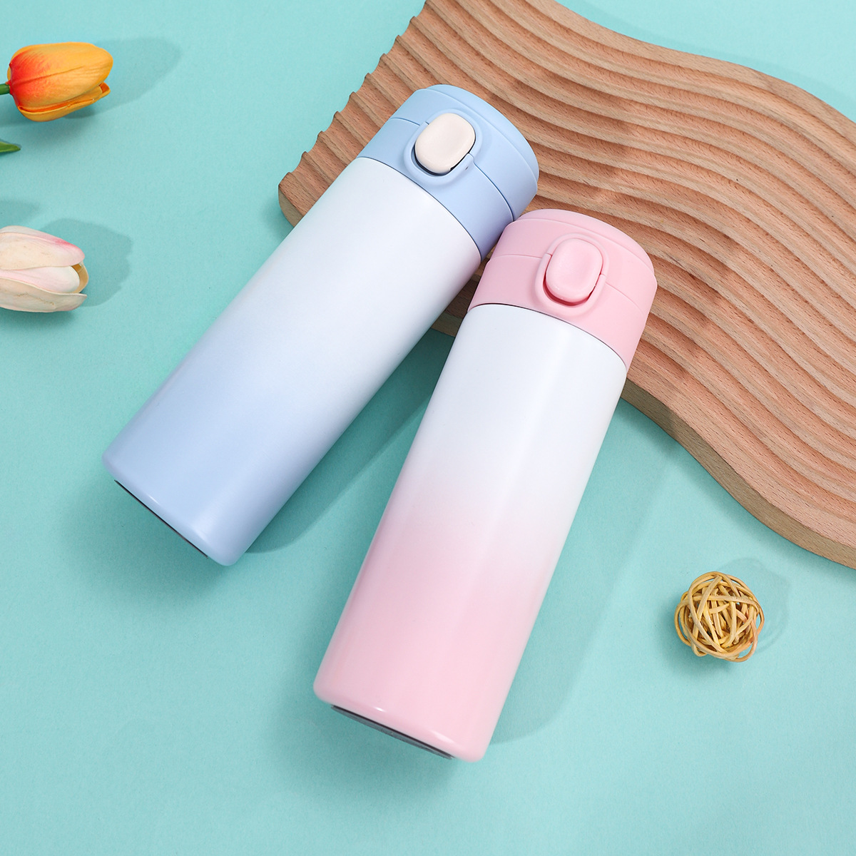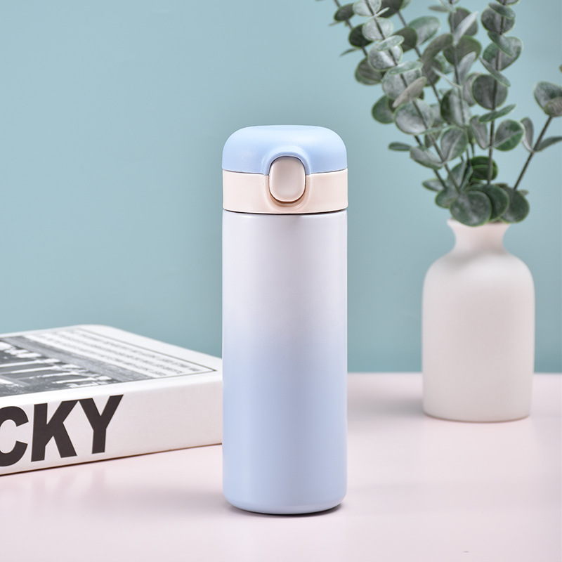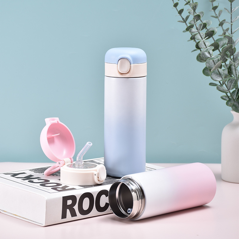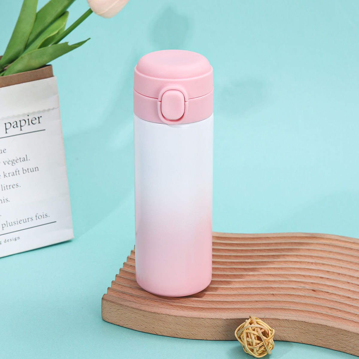 마카롱 304 스테인레스 스틸 보온병 컵 커플 소형 미니 포켓 컵 그라데이션 바운스 뚜껑 휴대용 완두콩 컵