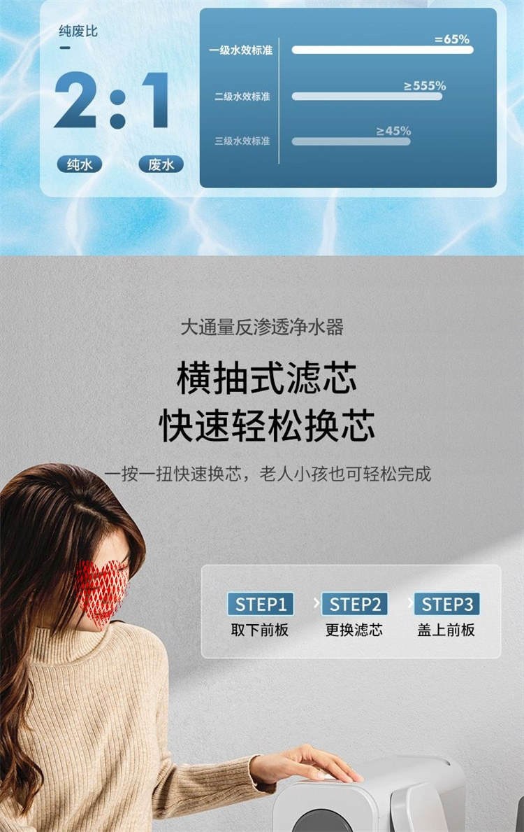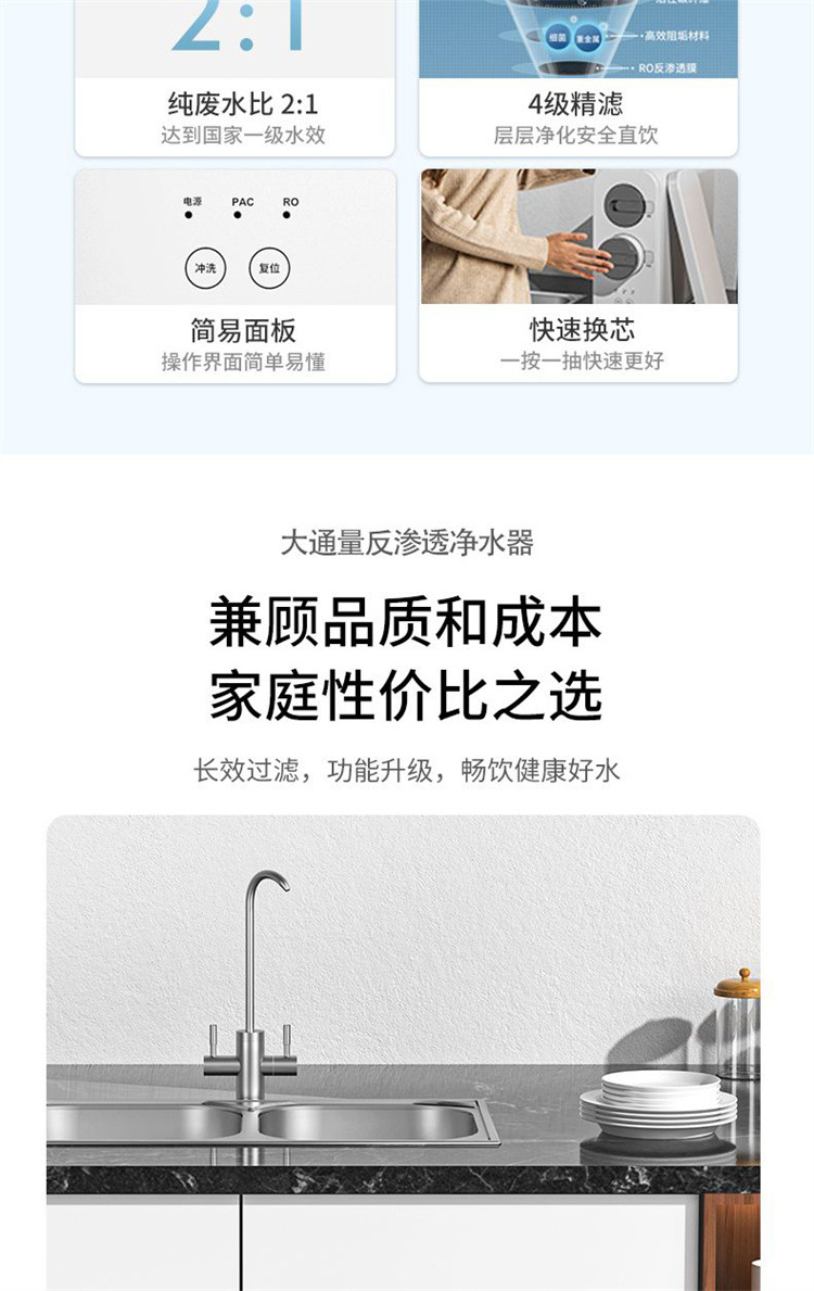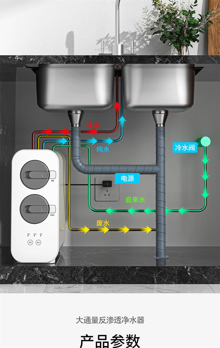 역삼투 정수기 배럴 프리 직접 음주 가정용 대형 유량 정수기 수돗물 필터 정수기 이중 배출구 물스토어 가기