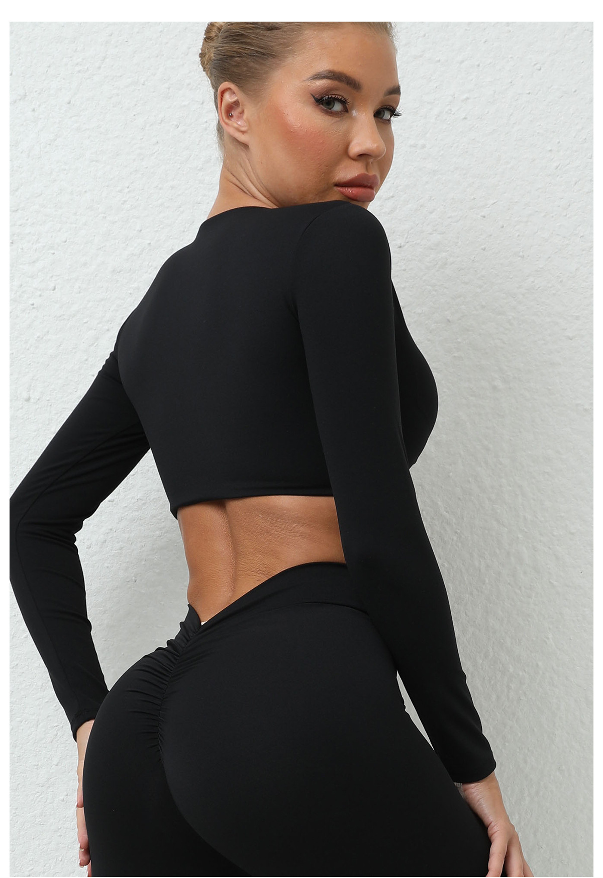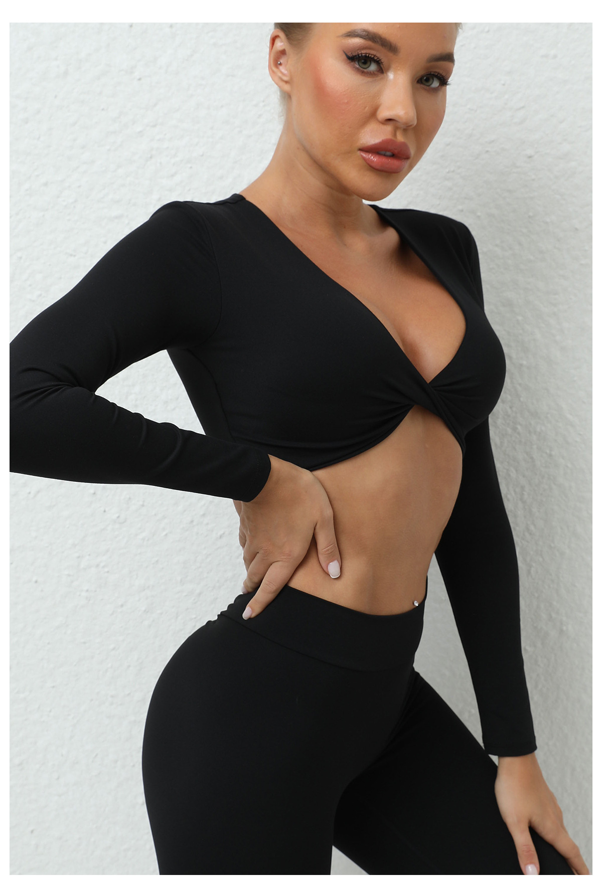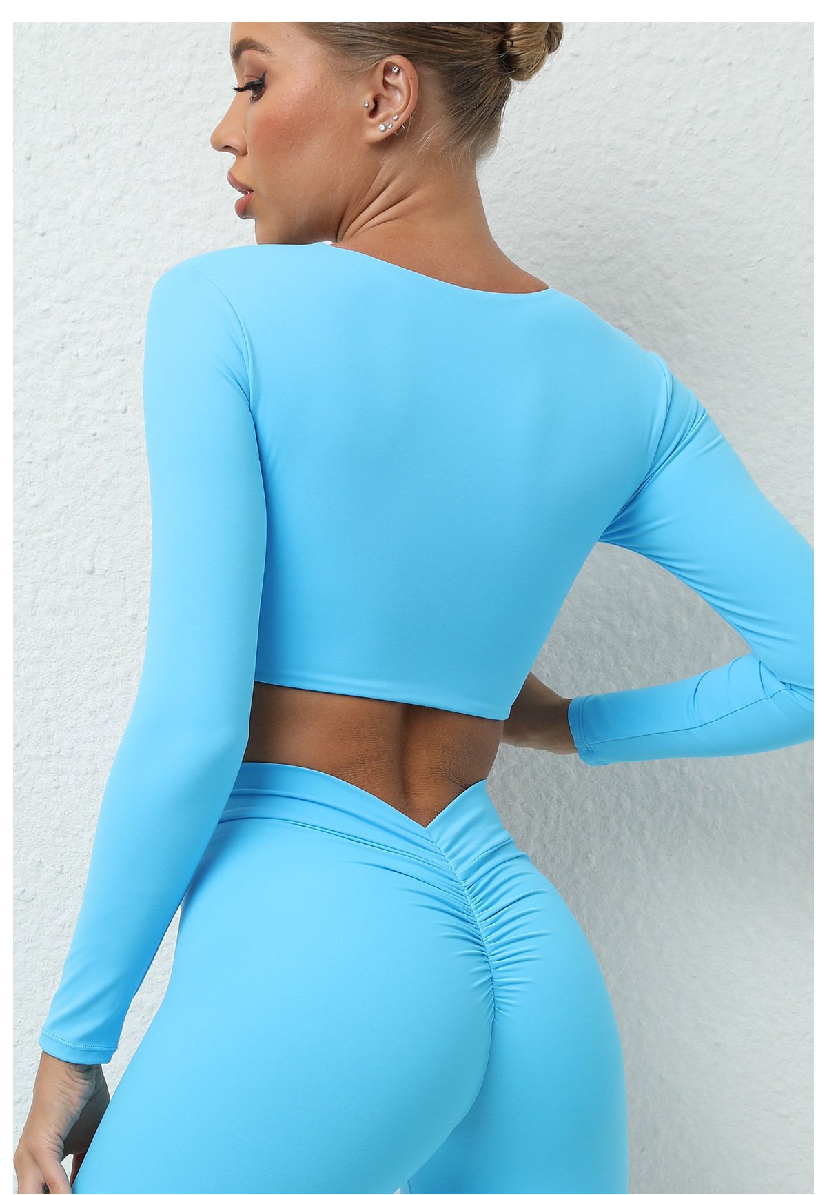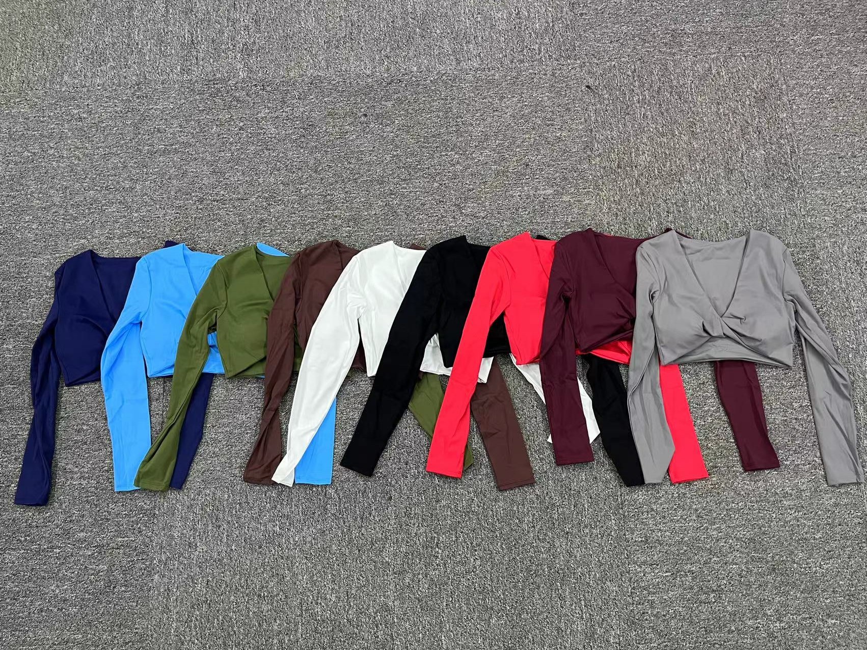 가을 겨울 트위스트 요가 긴팔 여성 운동복 유럽 및 미국 스타일 스포츠 요가 긴팔 티셔츠 여성용 피트니스 상의스토어 가기