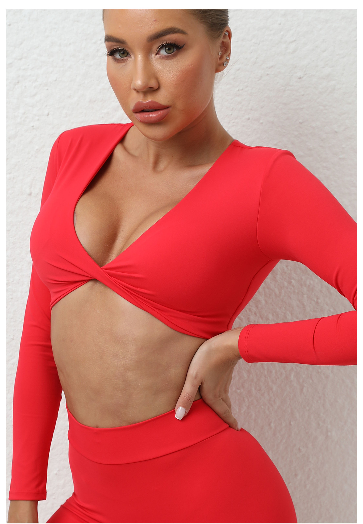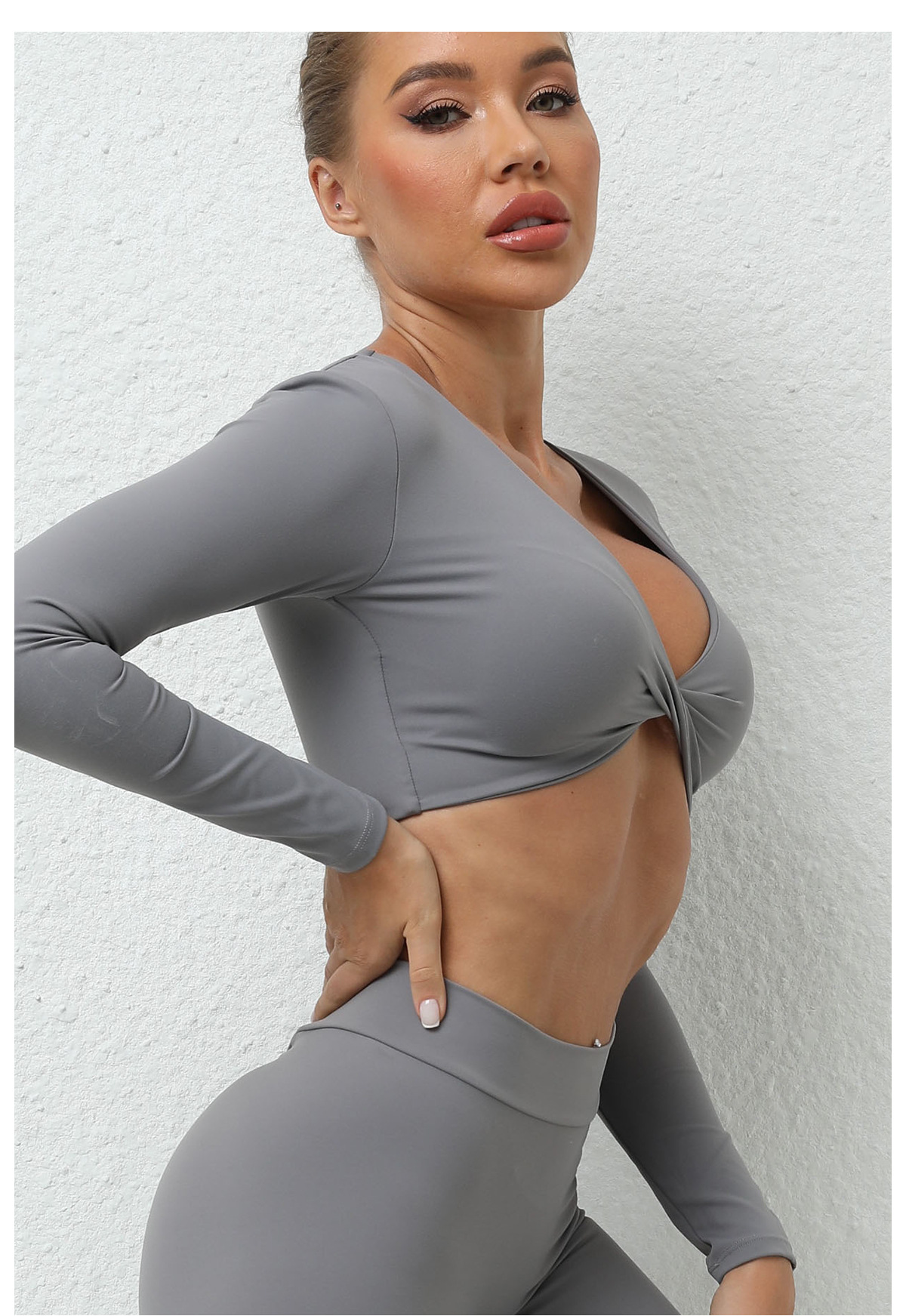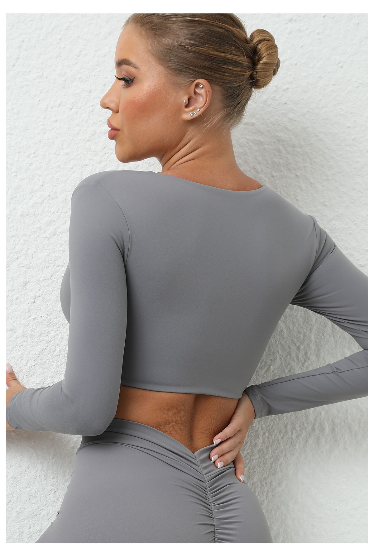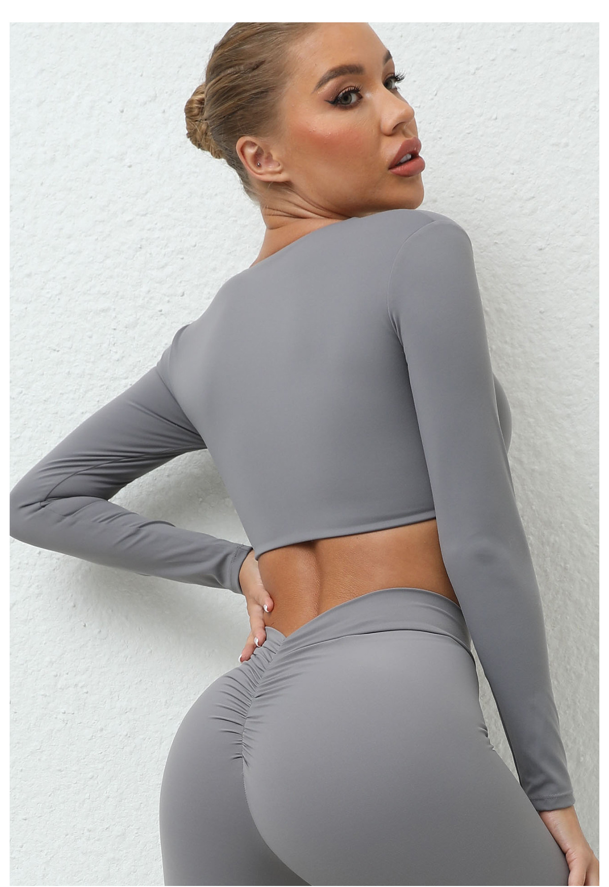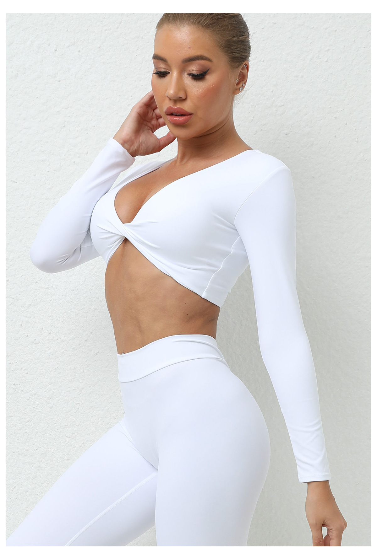 가을 겨울 트위스트 요가 긴팔 여성 운동복 유럽 및 미국 스타일 스포츠 요가 긴팔 티셔츠 여성용 피트니스 상의스토어 가기