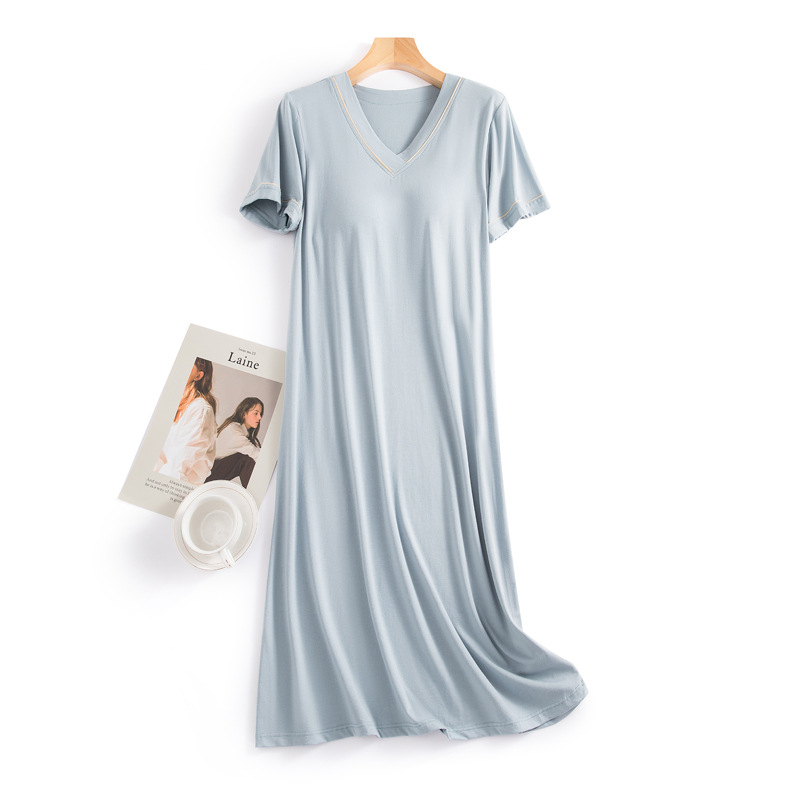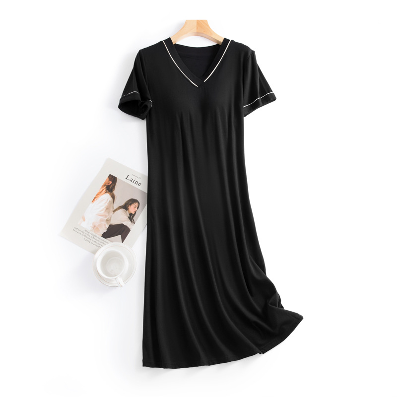 여자 여름 혼합 짧은 소매 치킨 칼라 원피스 가슴 패드 느슨한 플러스 사이즈 홈 원피스 잠옷스토어 가기