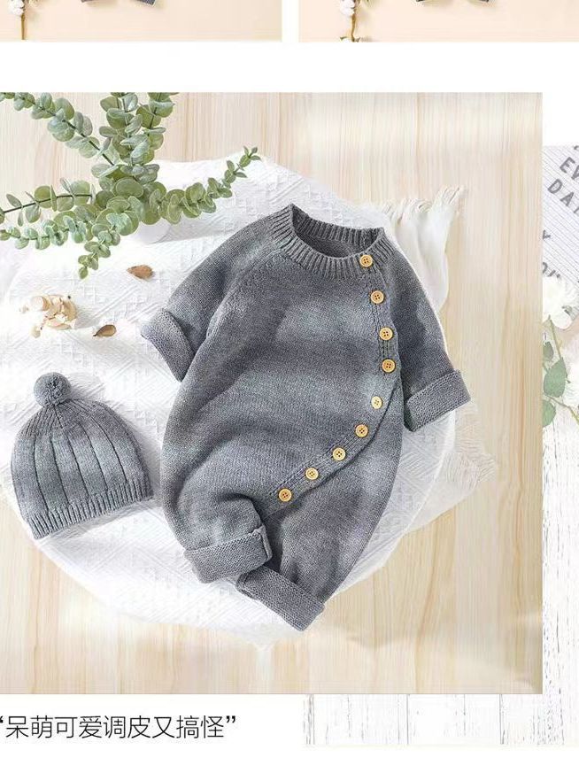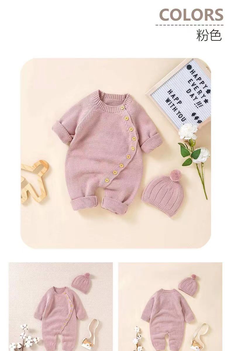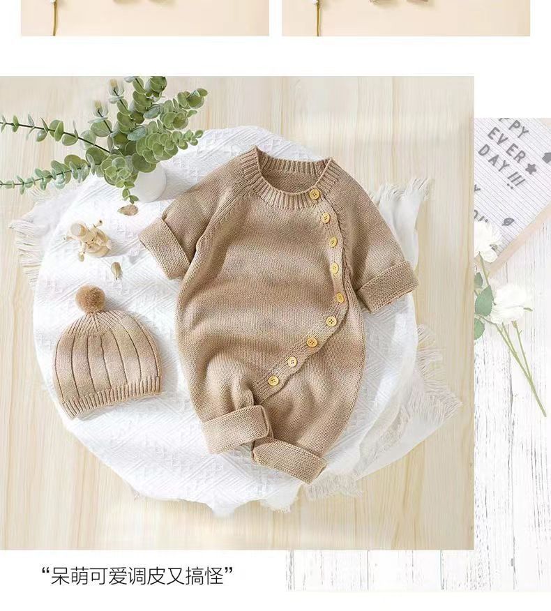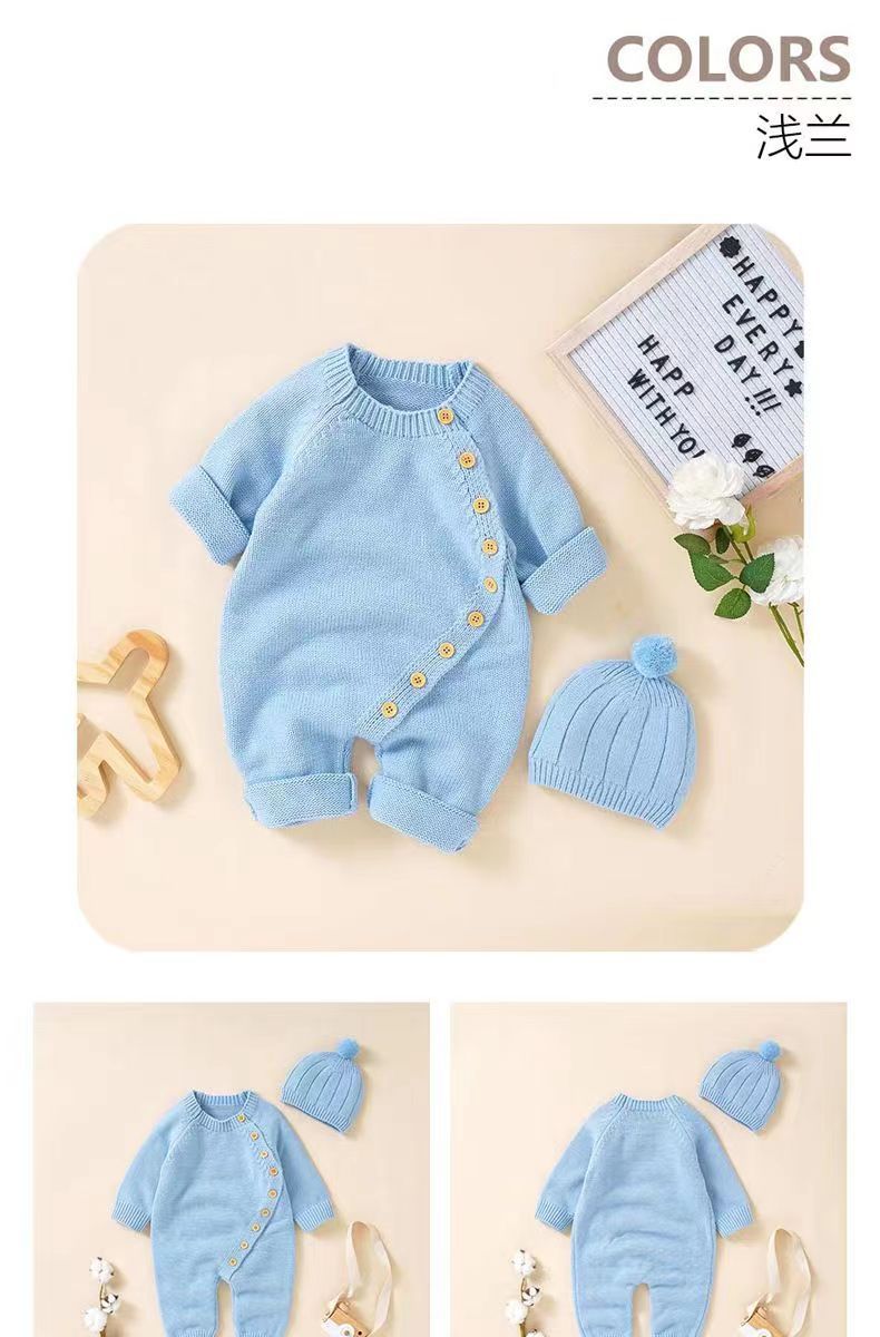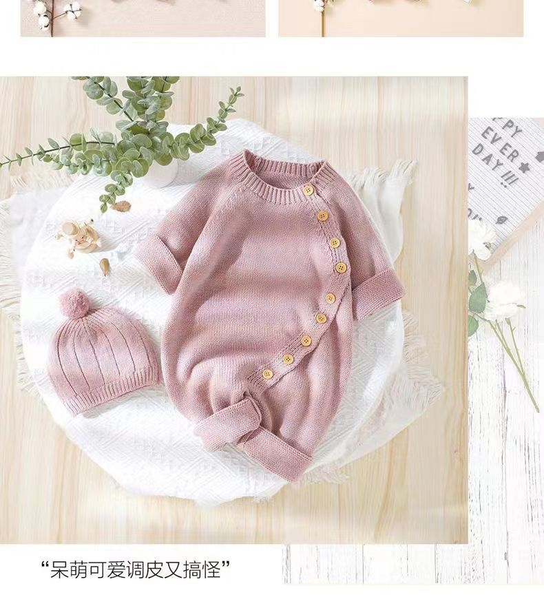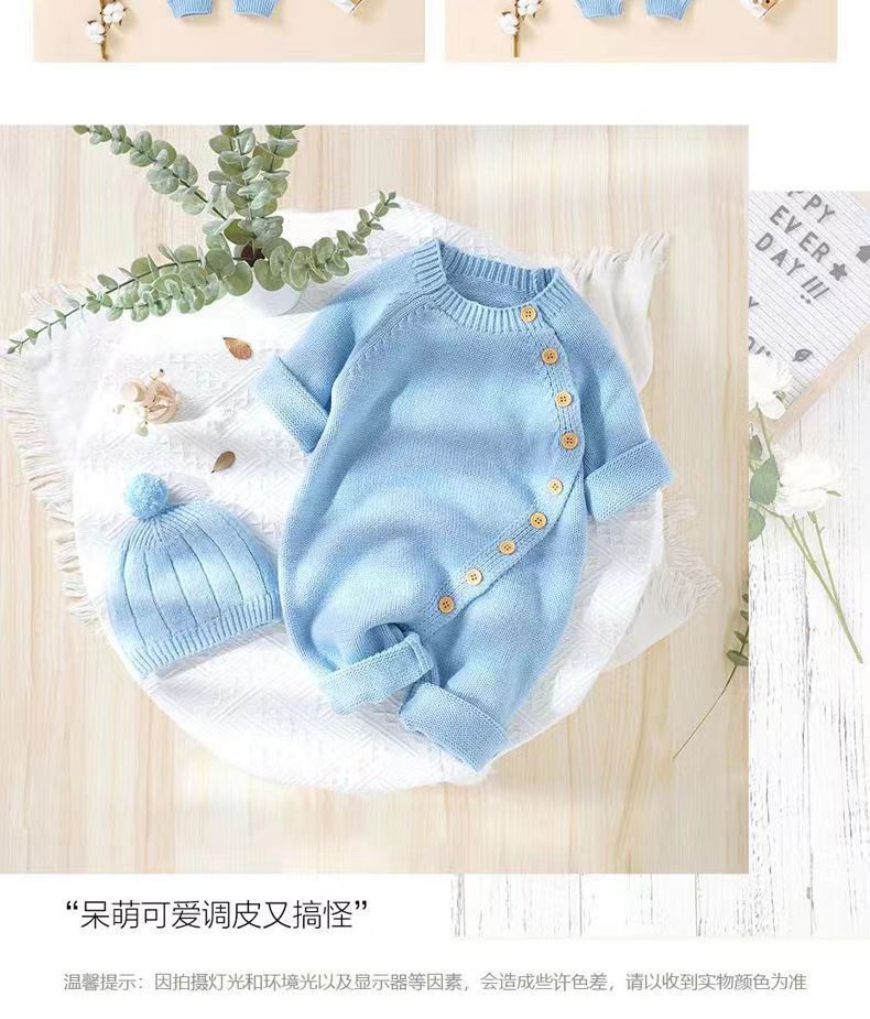 아기 니트 점프수트 가을 겨울 신생아 남녀 아기용 니트웨어 귀엽고 따뜻한 크롤링복 016