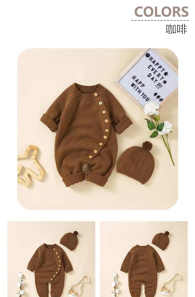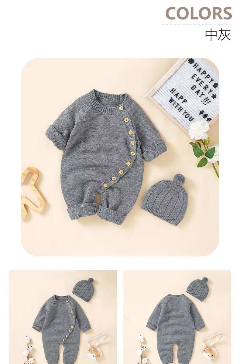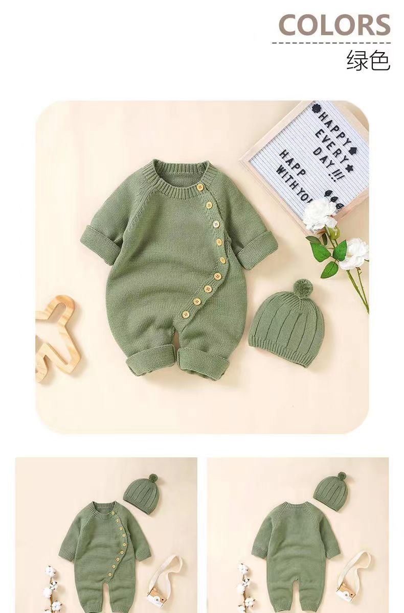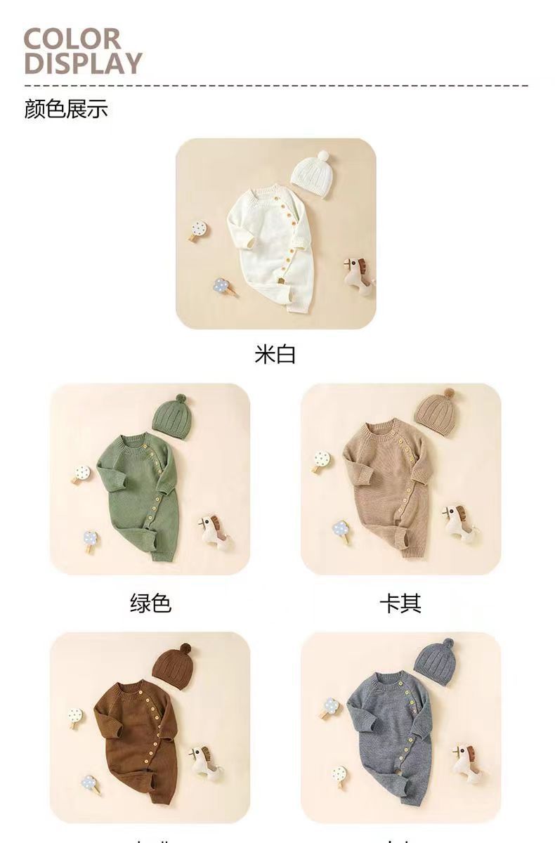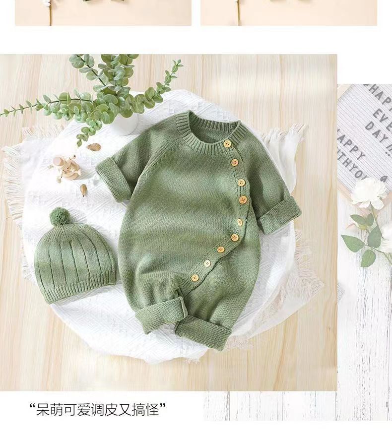 아기 니트 점프수트 가을 겨울 신생아 남녀 아기용 니트웨어 귀엽고 따뜻한 크롤링복 016