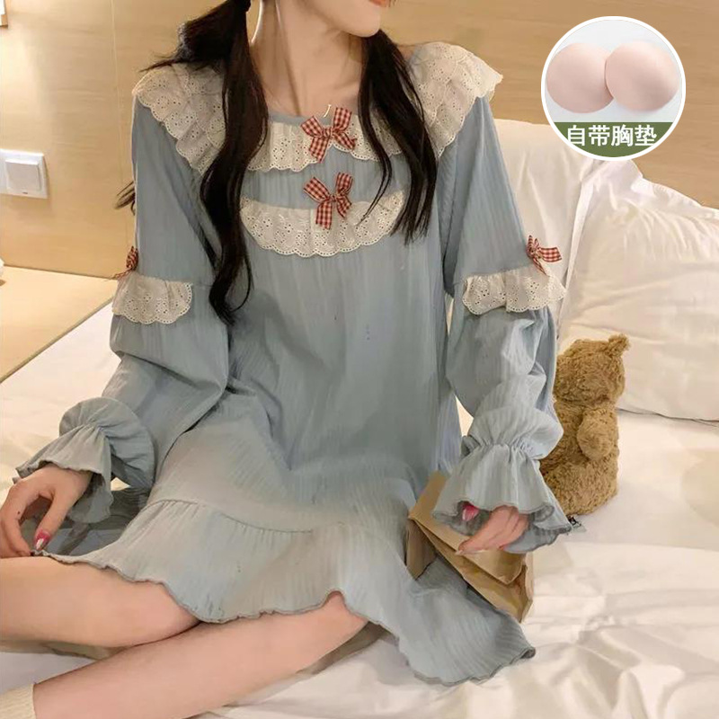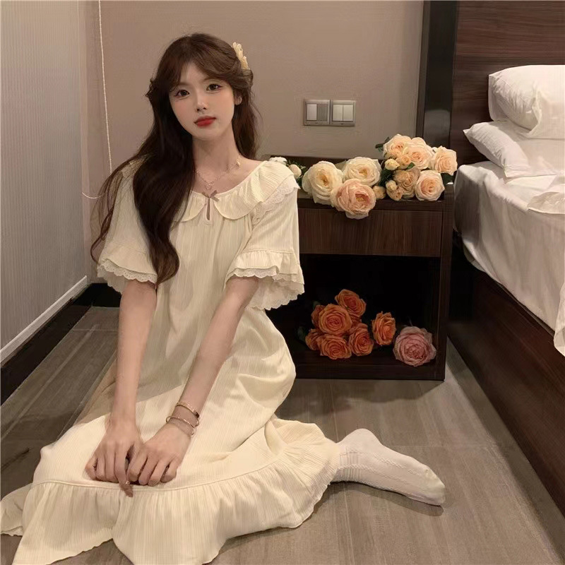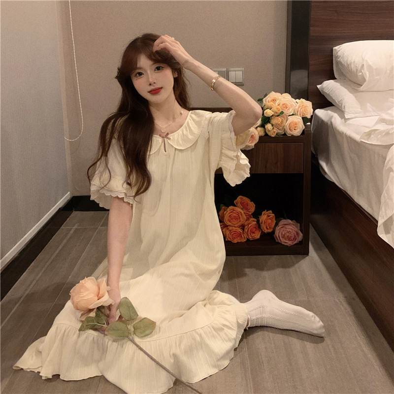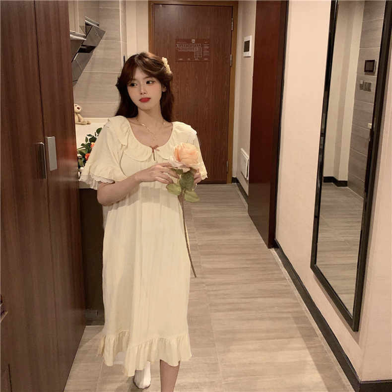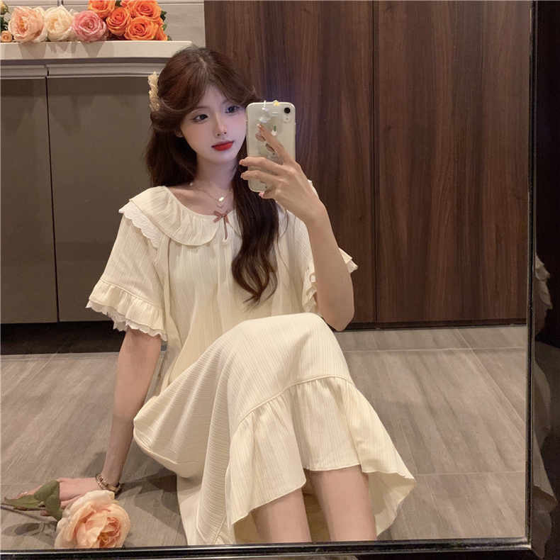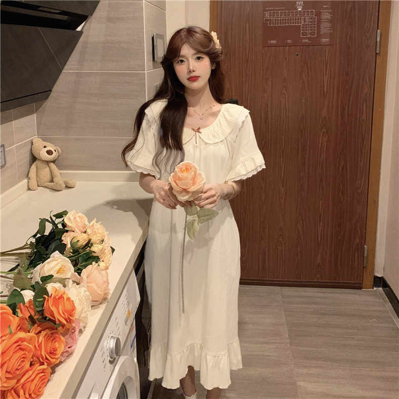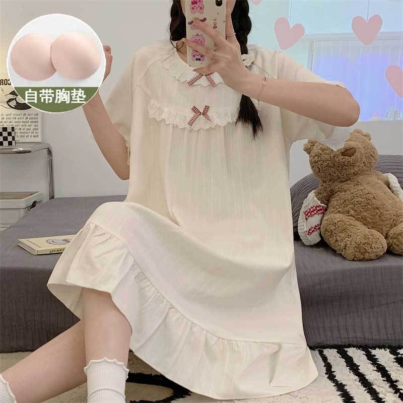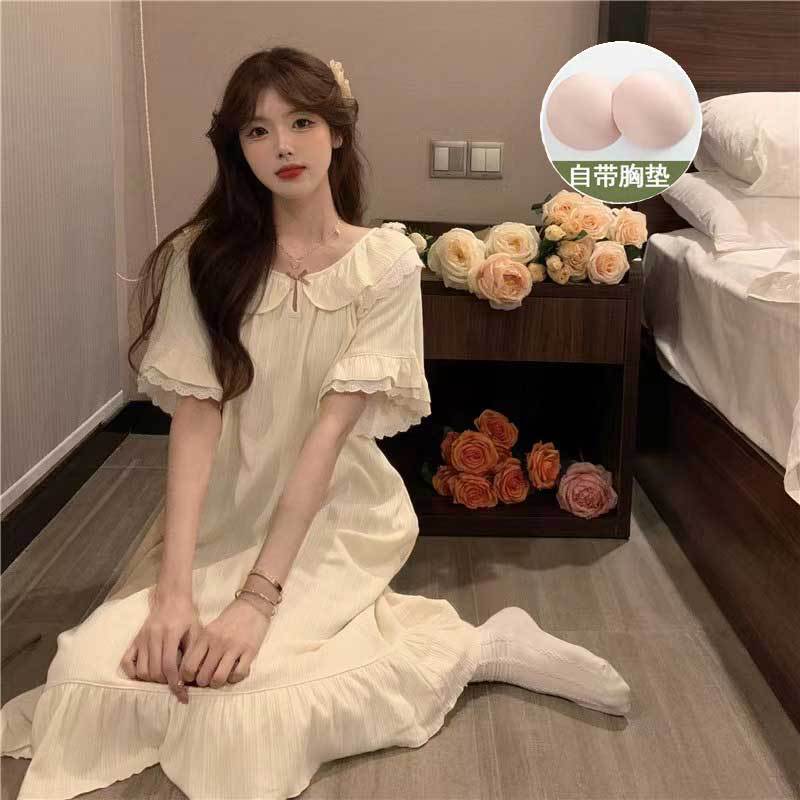 여성용 여름 잠옷, 가슴 패드가 있는 고급스럽고 예술적이고 귀엽고 달콤한 얇은 홈웨어, 라이브 방송 인기 상품스토어 가기