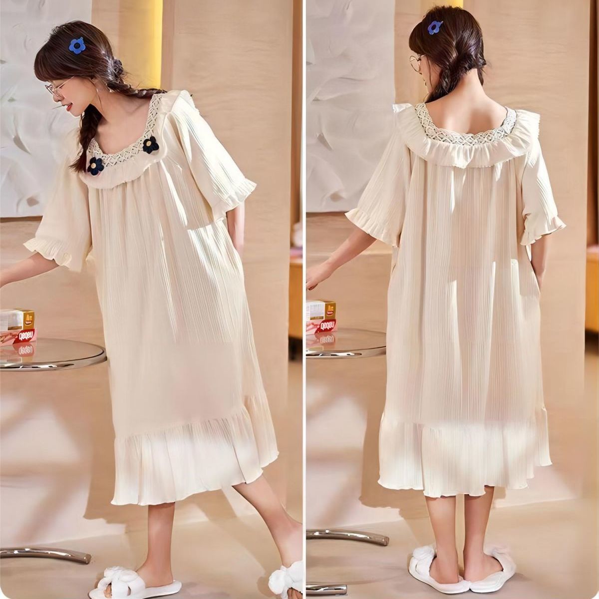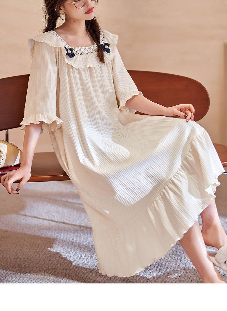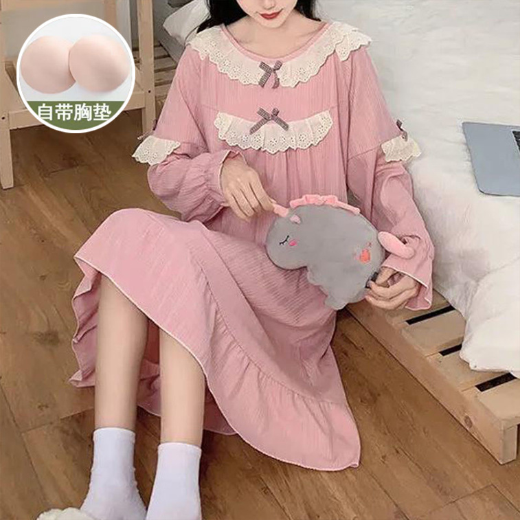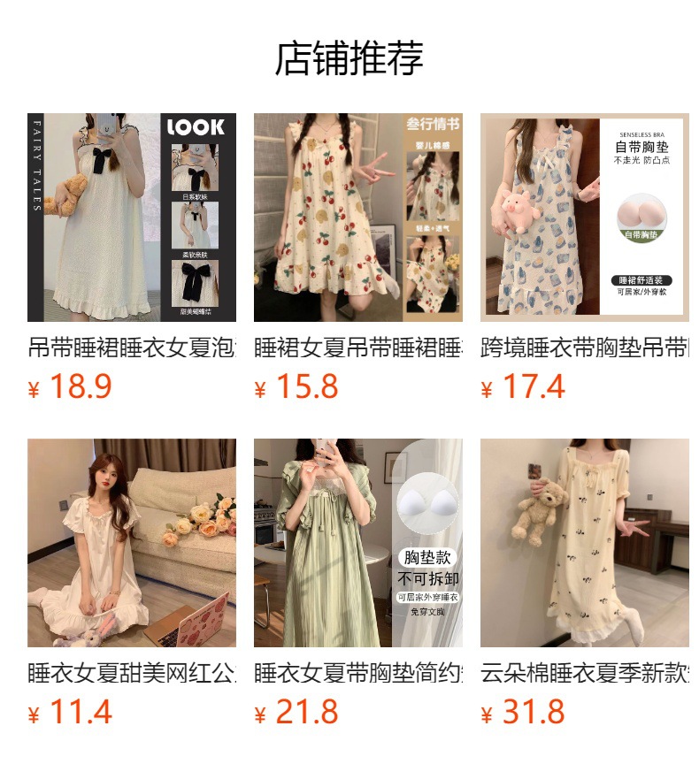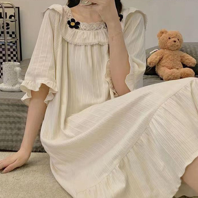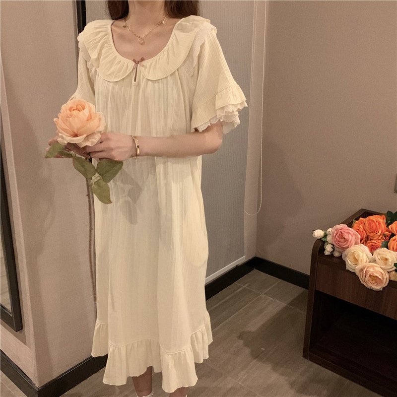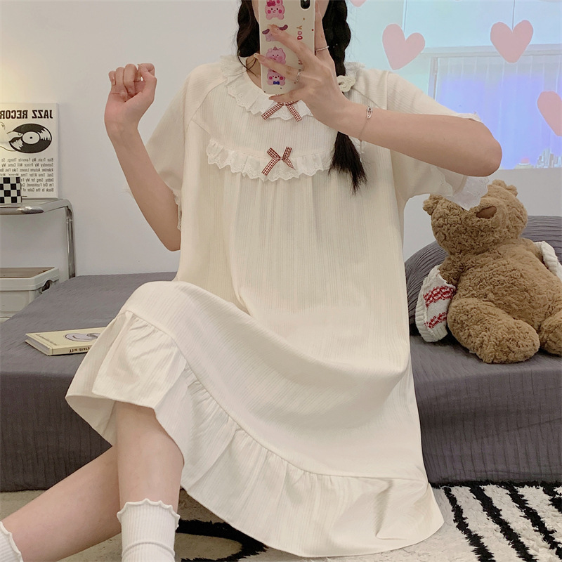 여성용 여름 잠옷, 가슴 패드가 있는 고급스럽고 예술적이고 귀엽고 달콤한 얇은 홈웨어, 라이브 방송 인기 상품스토어 가기
