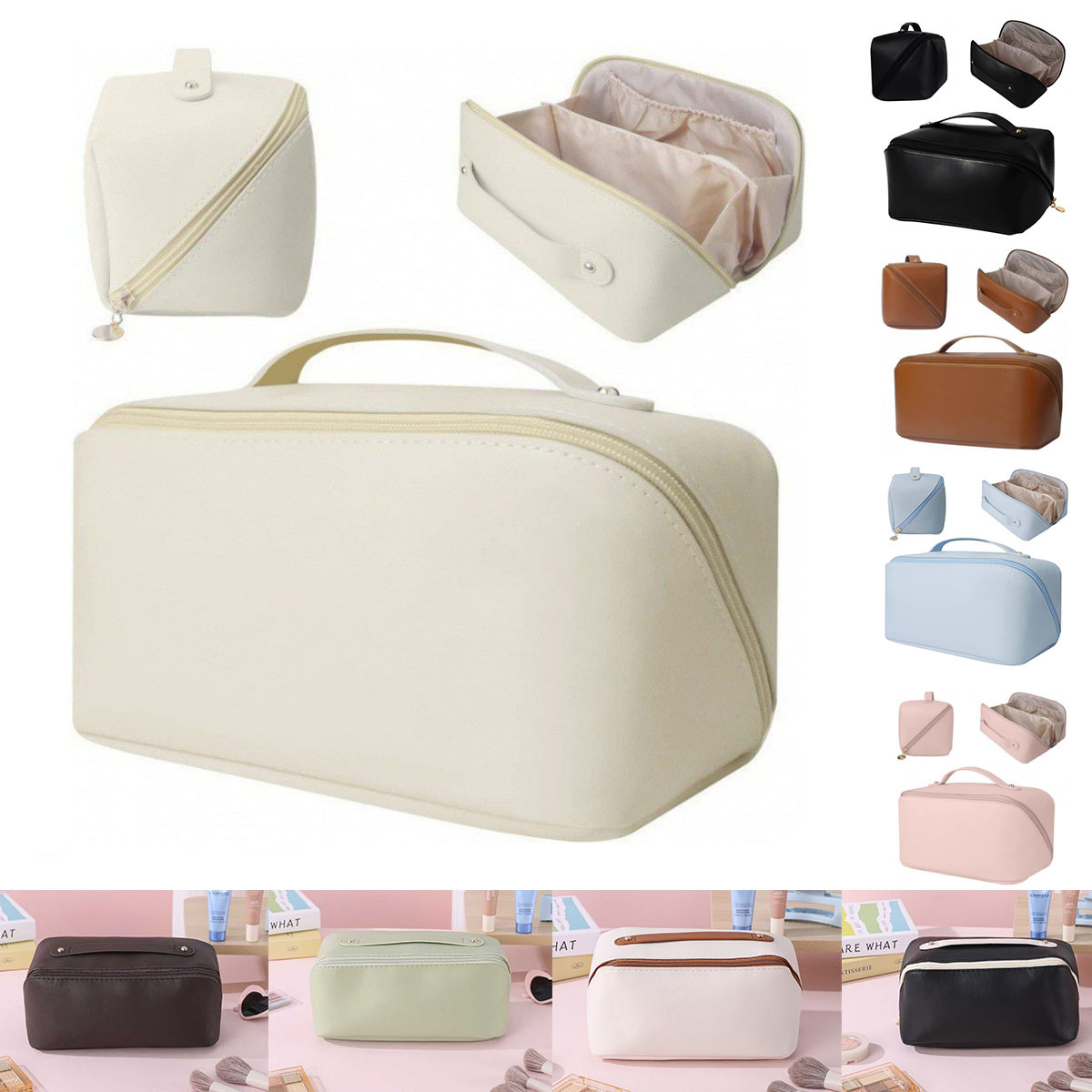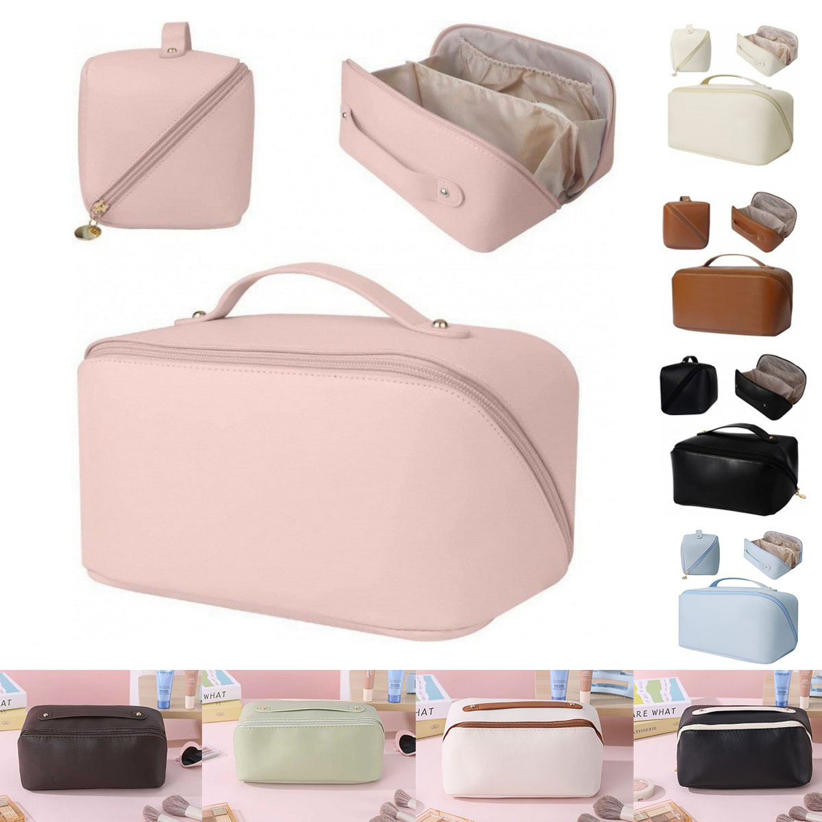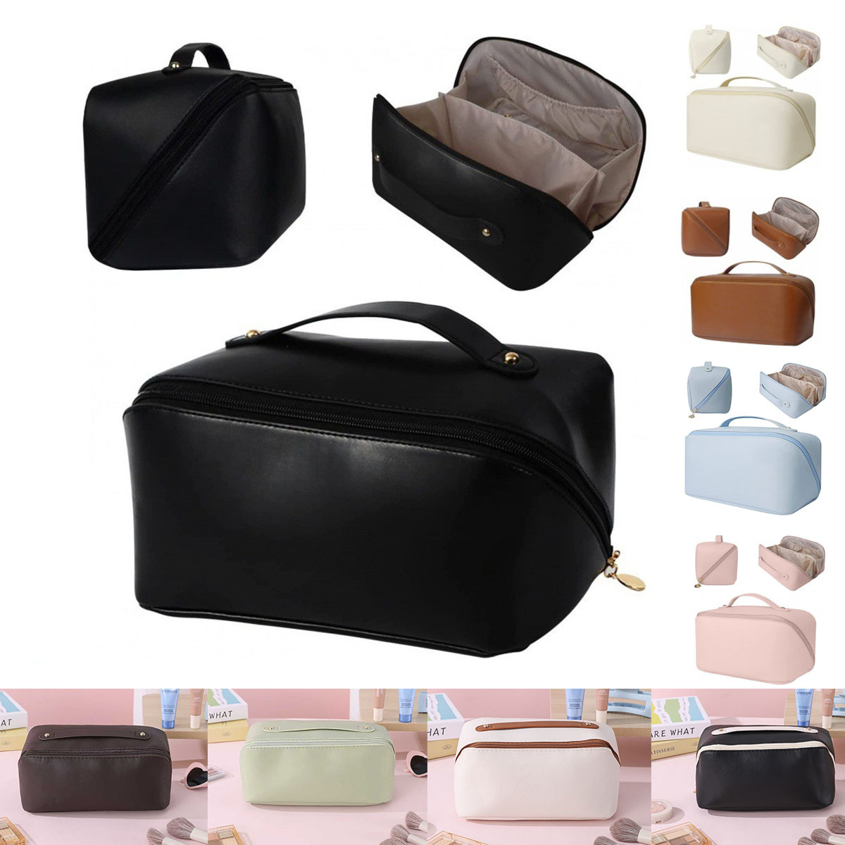 패셔너블한 고급 화장품 가방, 휴대용 여행용 수납 가방, 대용량 세면도구 가방, 손잡이가 달린 고급스러운 PU 가죽 가방
